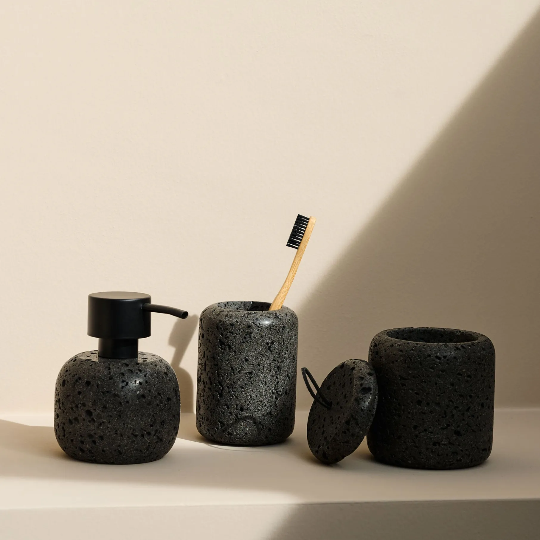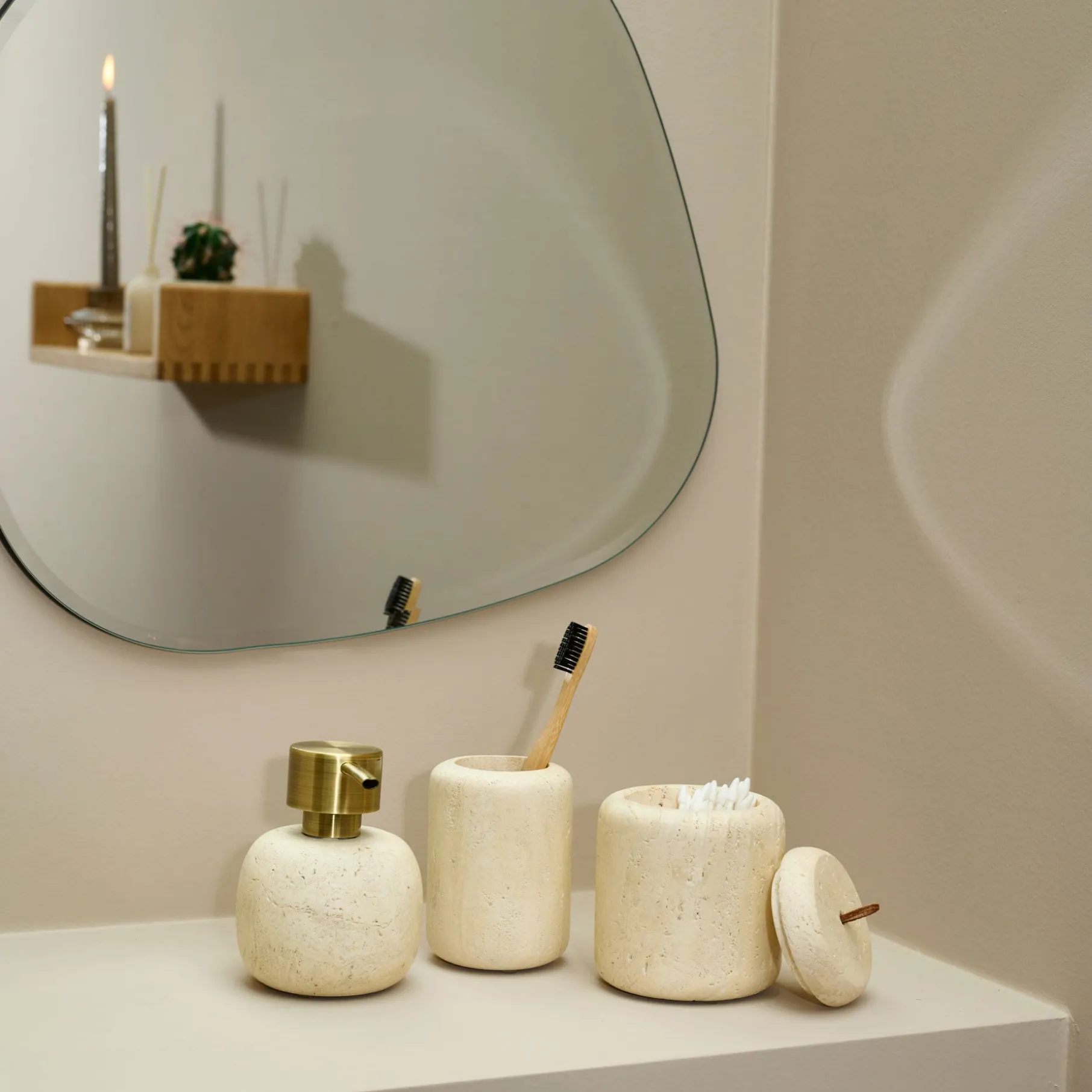 Bemærk at travertin er et naturprodukt og tandbørstekrusene vil derfor variere lidt i udseende.