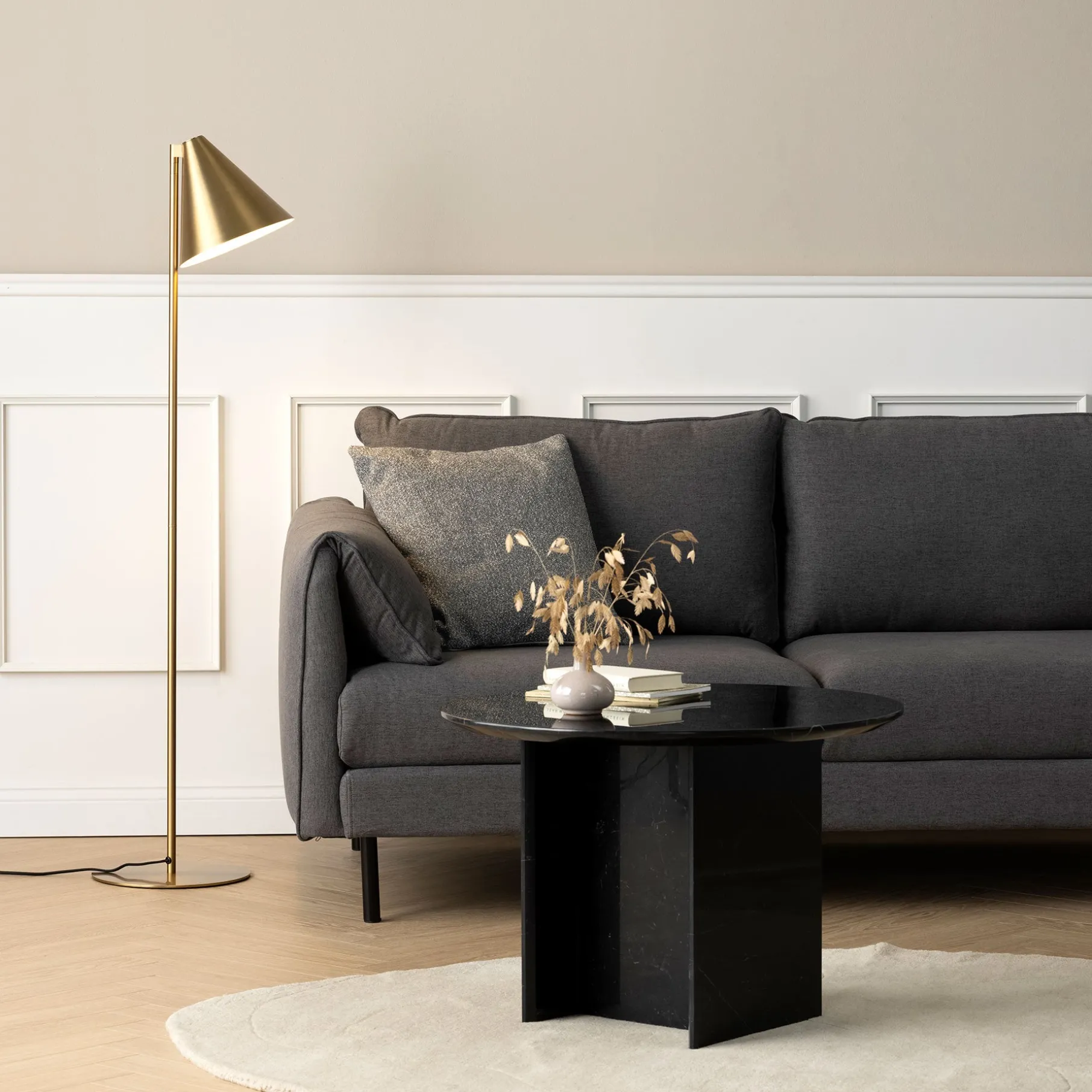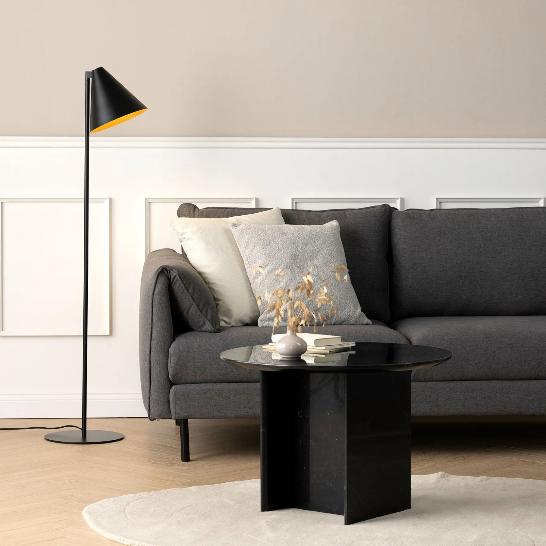 Gulvlampen er ideel at bruge som læselampe eller til pynt og god belysning.