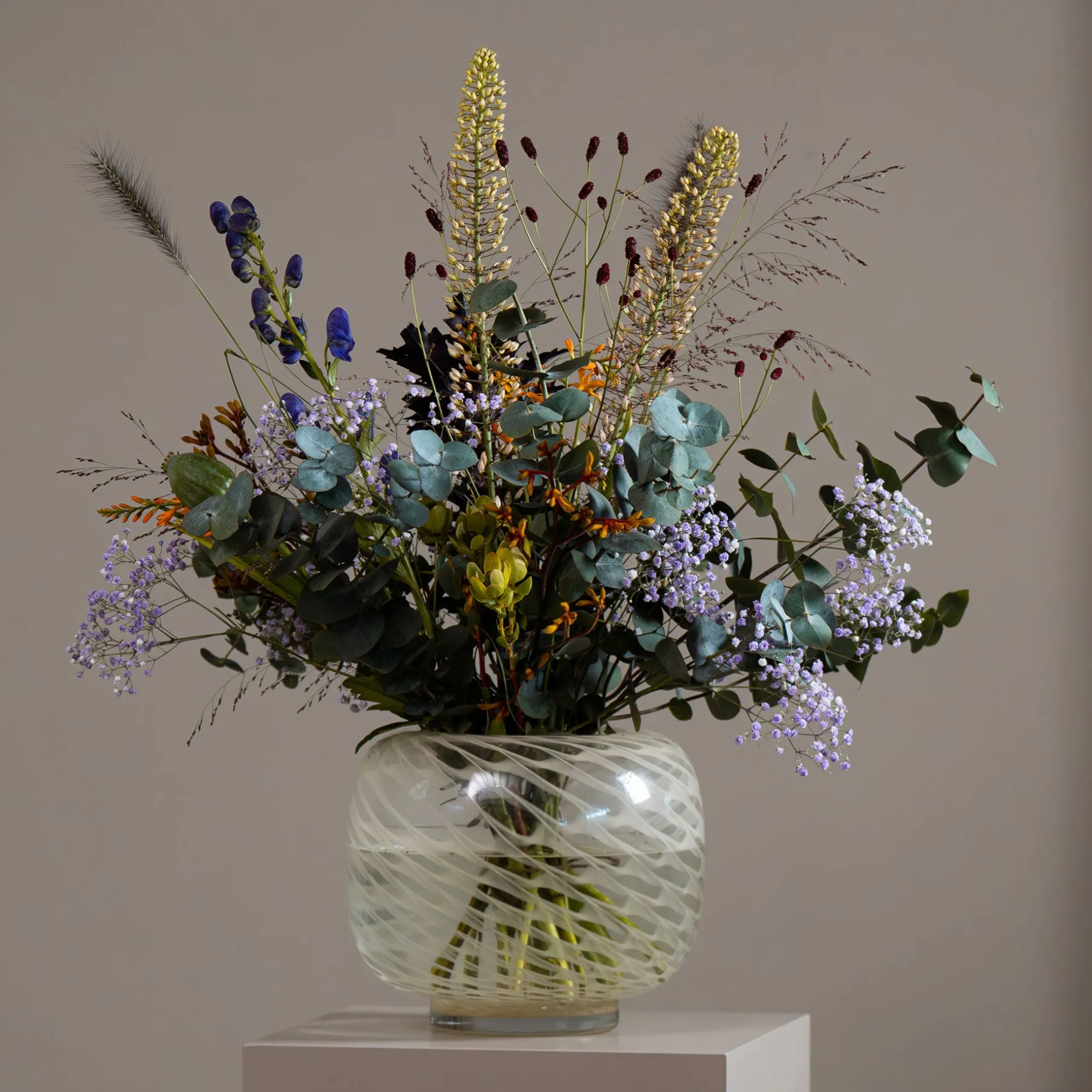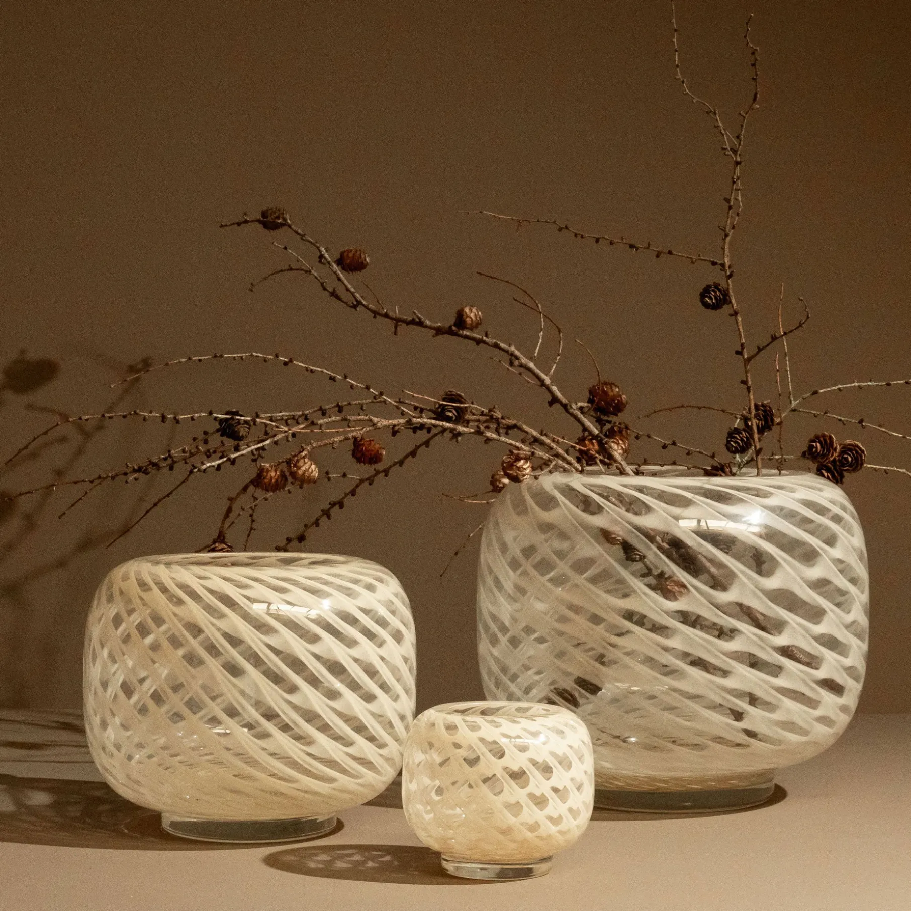 Vasen er kendetegnet for sin tvistede struktur, som på elegant vis følger vasens runde form.