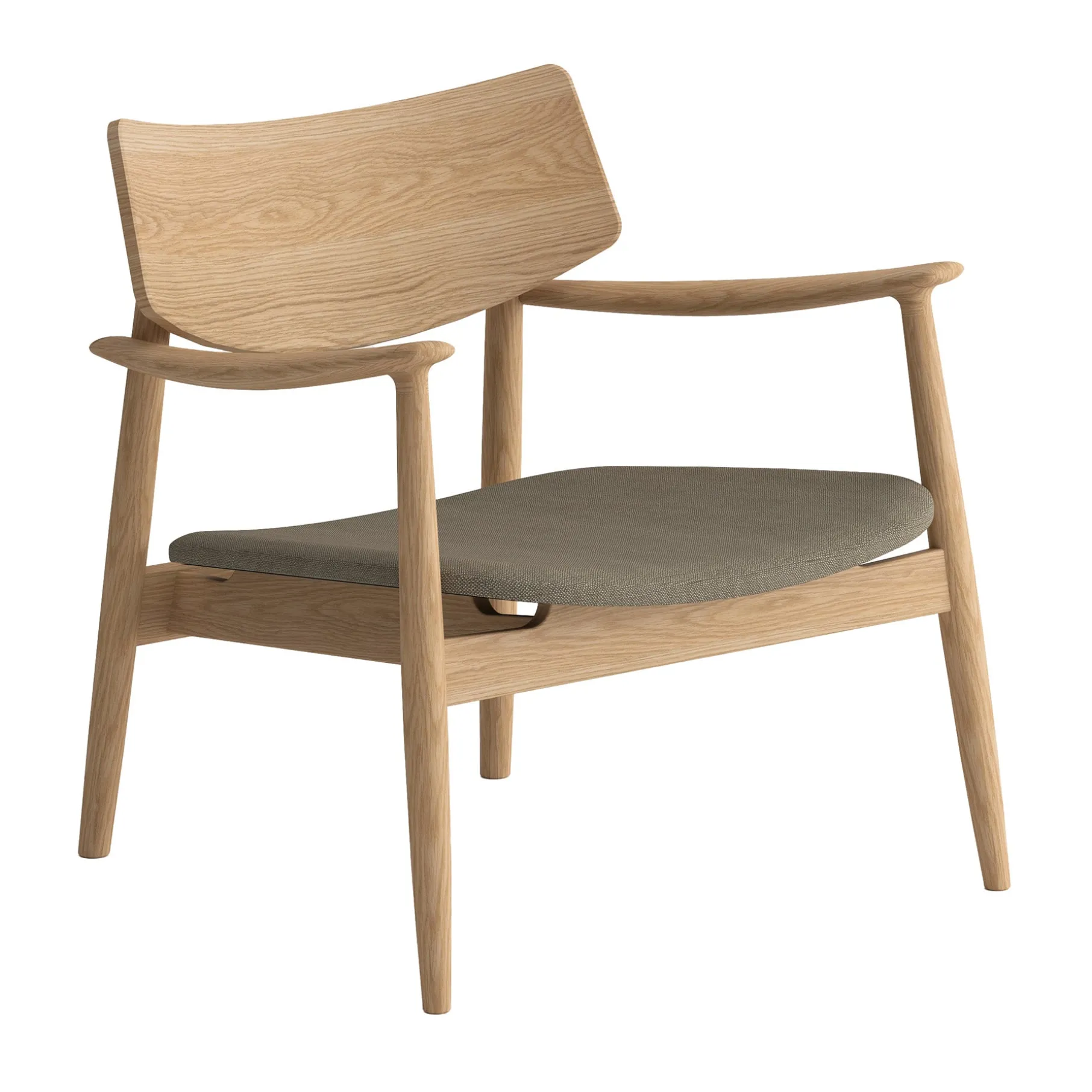 Stolens massive egetræ giver en naturlig varme og skaber et møbel, der holder i mange år. Det lyse, teksturerede stof tilføjer et tidløst udtryk, som gør, at Vedersø vil tilføre varme og karakter til din indretning.