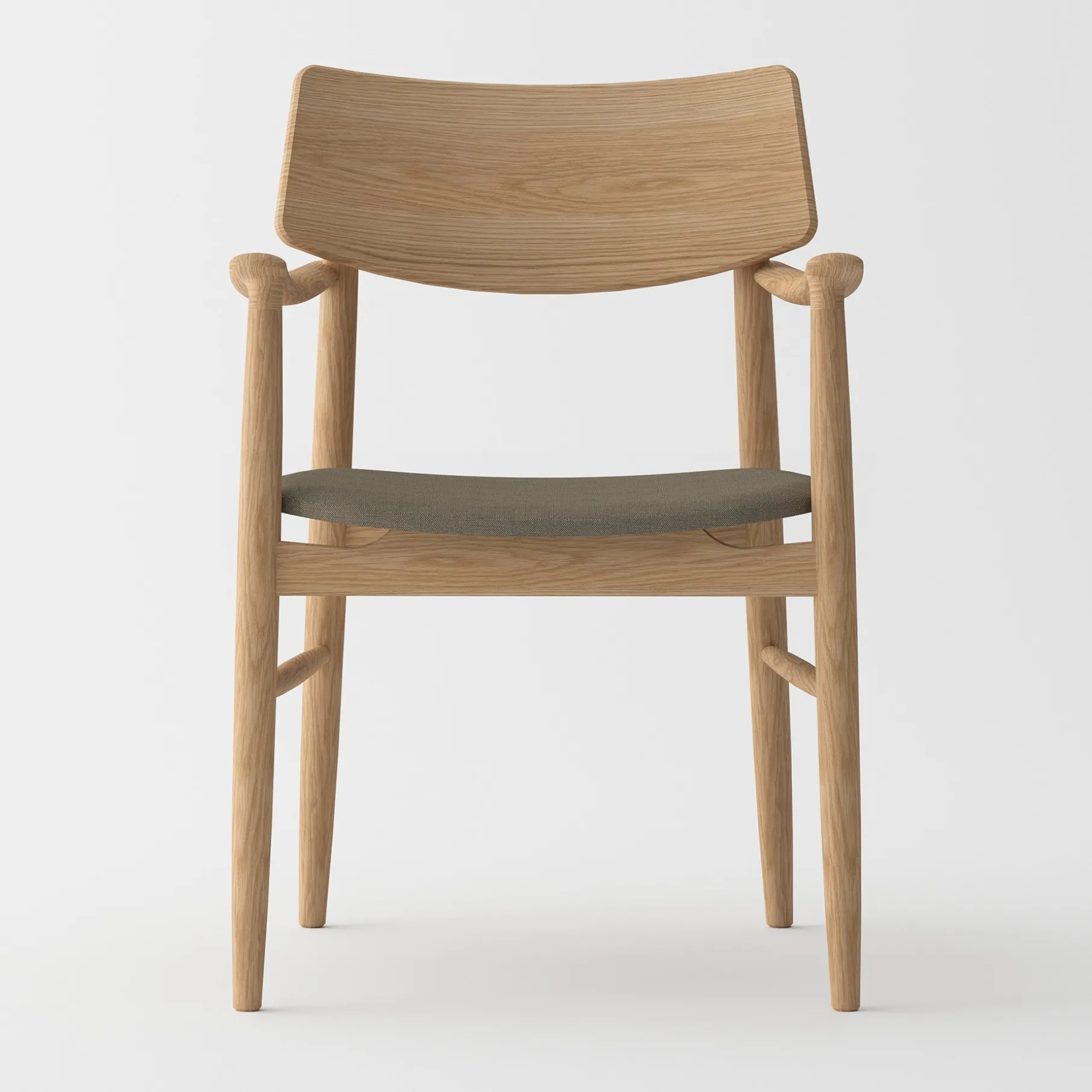 Stolen er fremstillet i massivt egetræ, som bringer varme og karakter ind i hjemmet. Det lyse, let strukturerede betræk giver et tidløst udtryk, der spiller smukt sammen med både moderne og klassisk indretning.