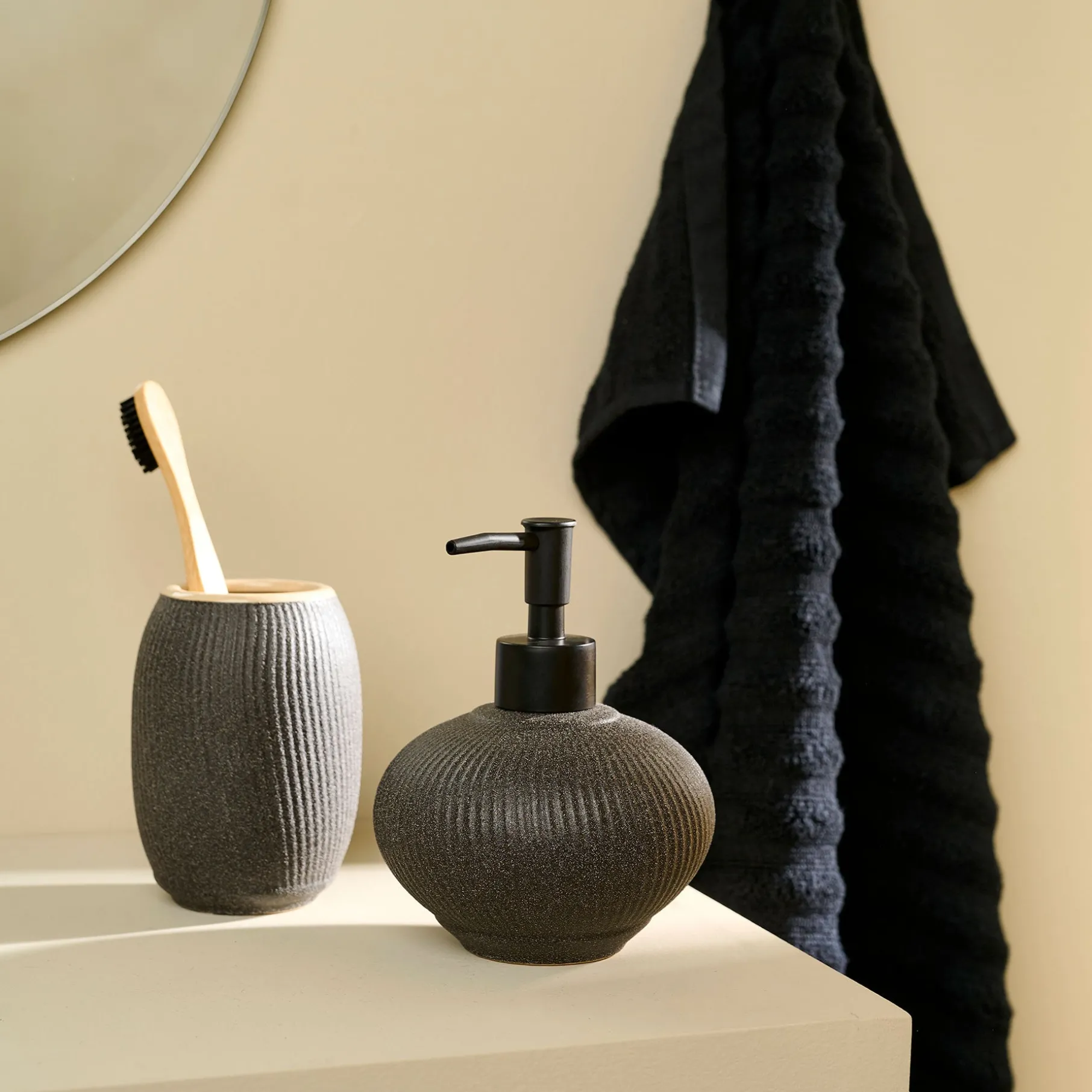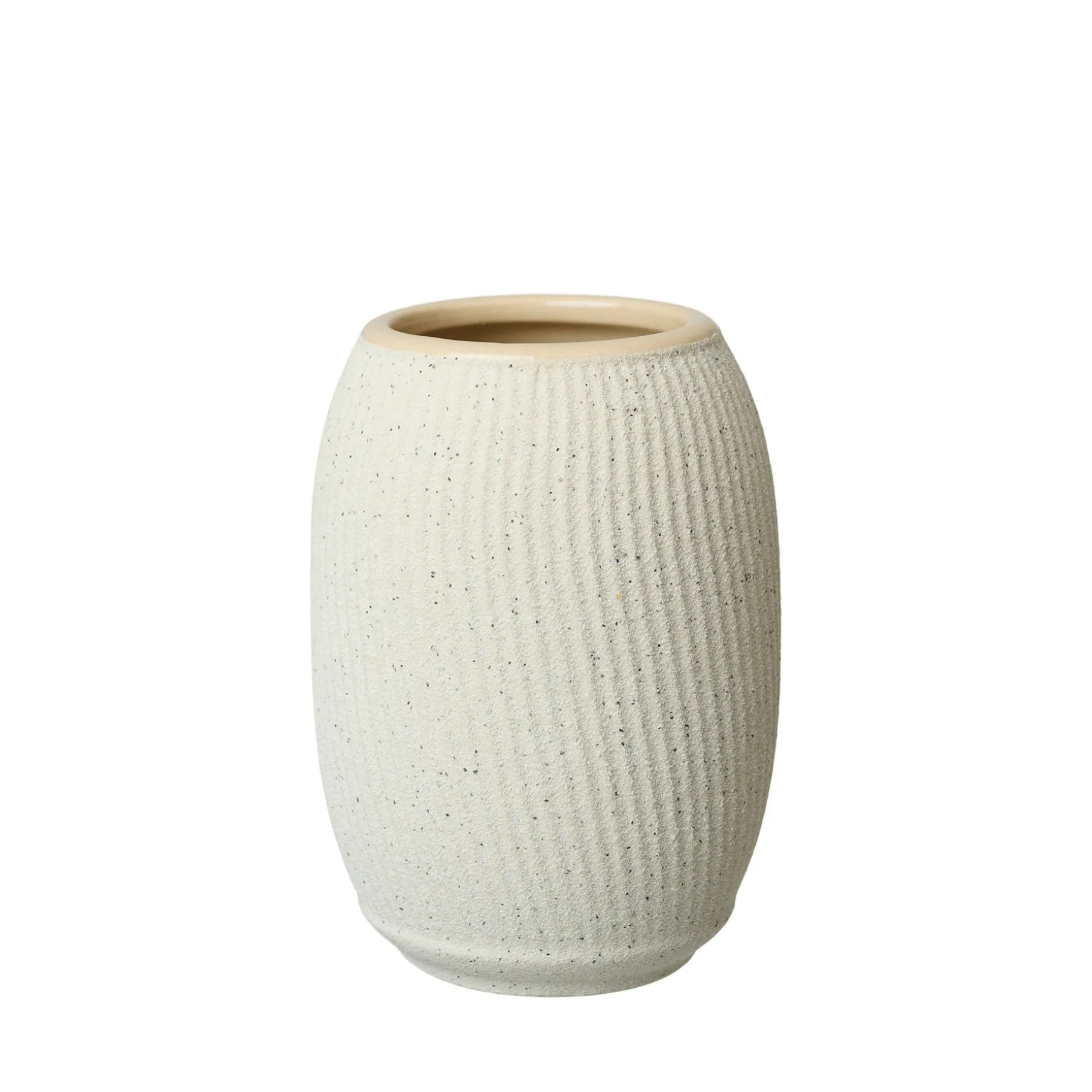 Tandbørstekrus i keramik med rillet struktur. Materialet har en lækker sandblæst overflade.