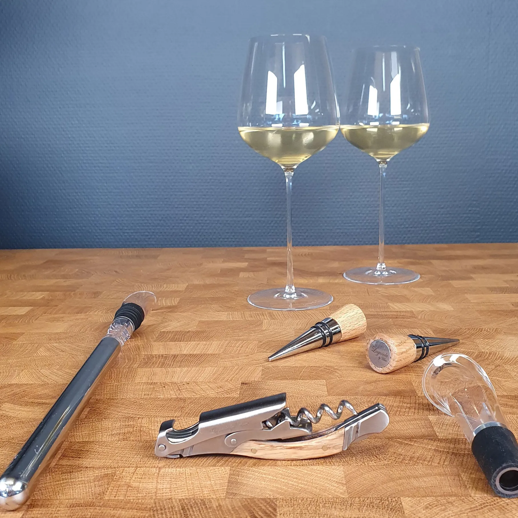Komplet og imponerende sæt, der er skabt til at glæde vinentusiaster. Fra den flotte trægaveæske til de nøje udvalgte komponenter, udstråler dette vinsæt stil og kvalitet. Uanset om det er til personlig brug eller som en gave, vil dette vinsæt tilfredsstille selv den mest kræsne vinelsker.