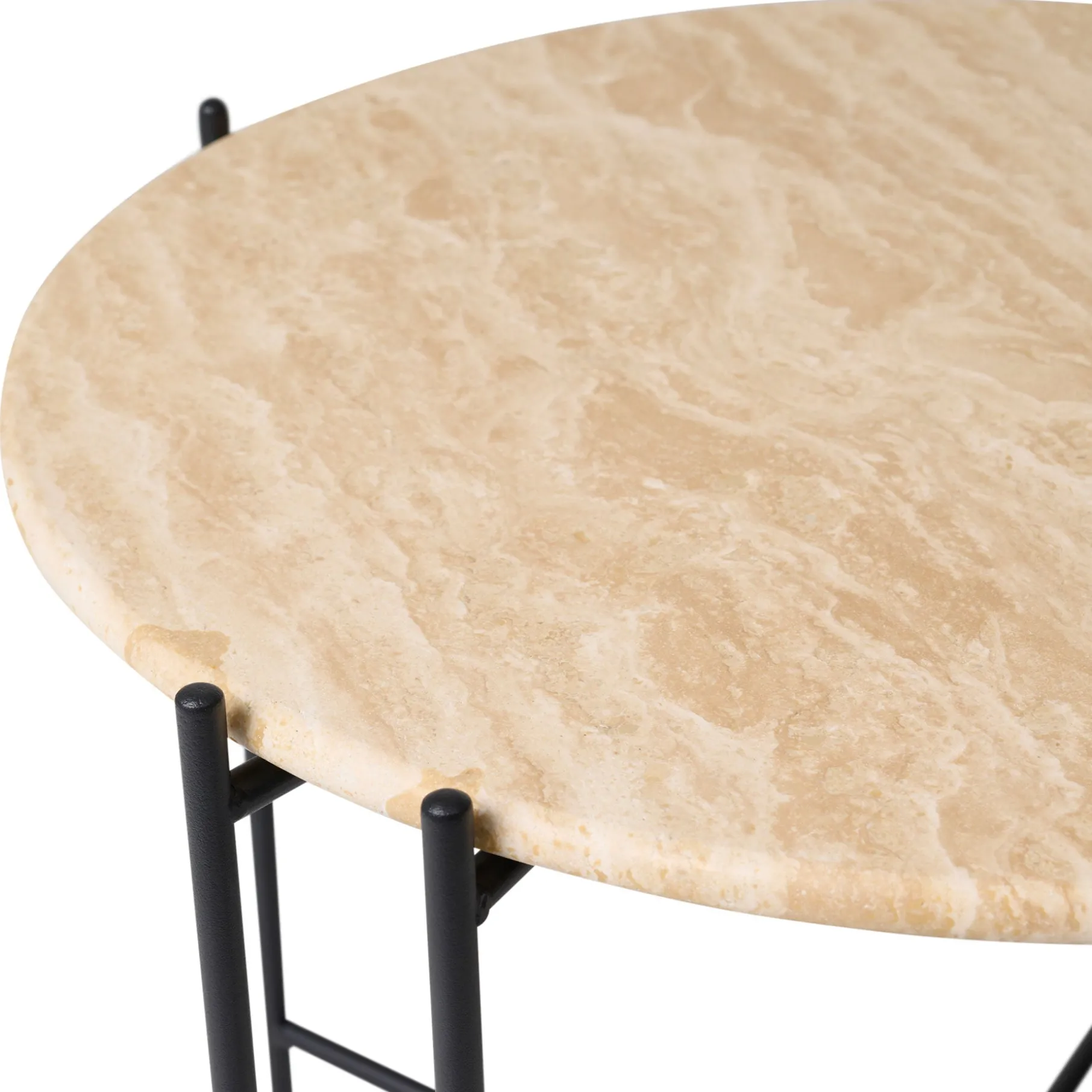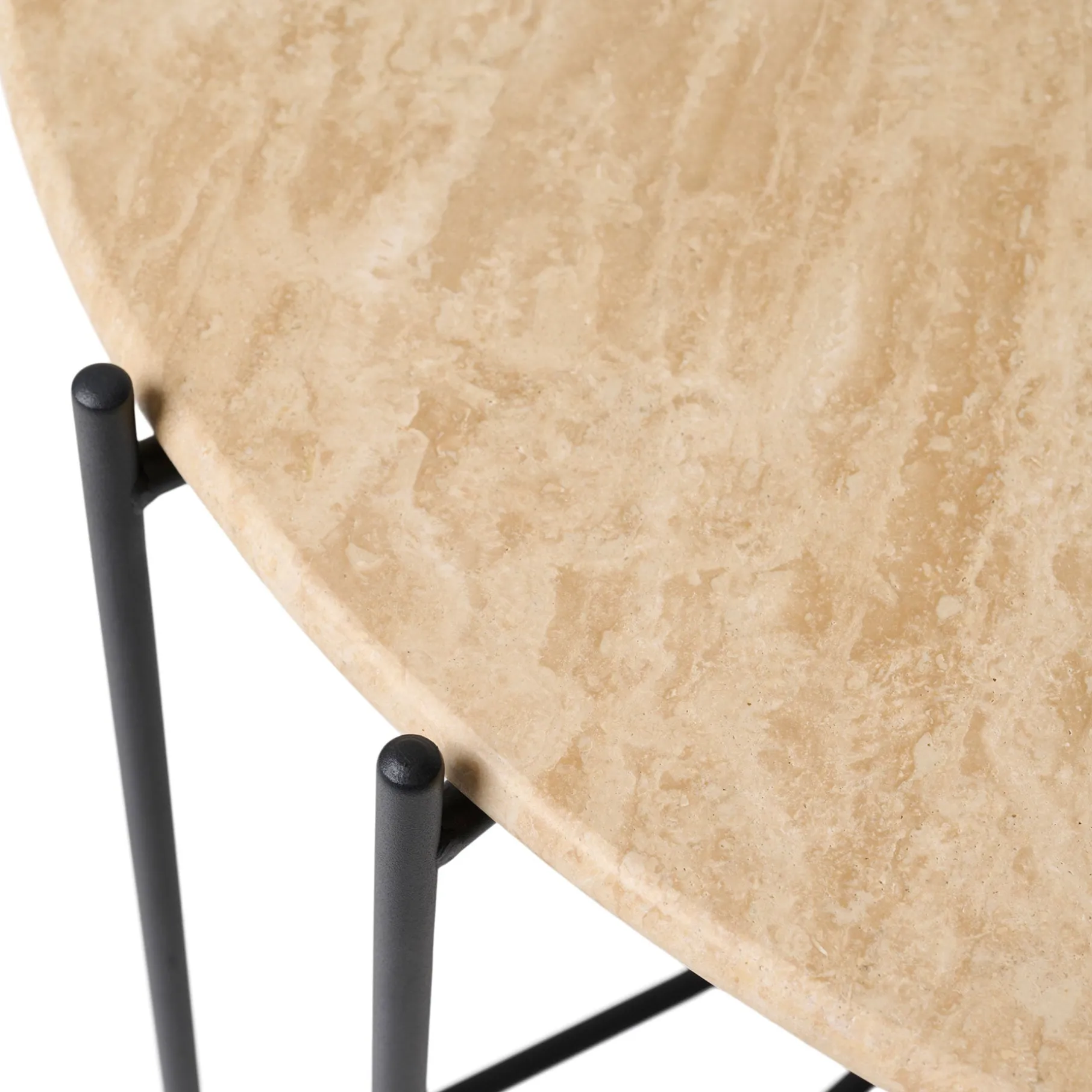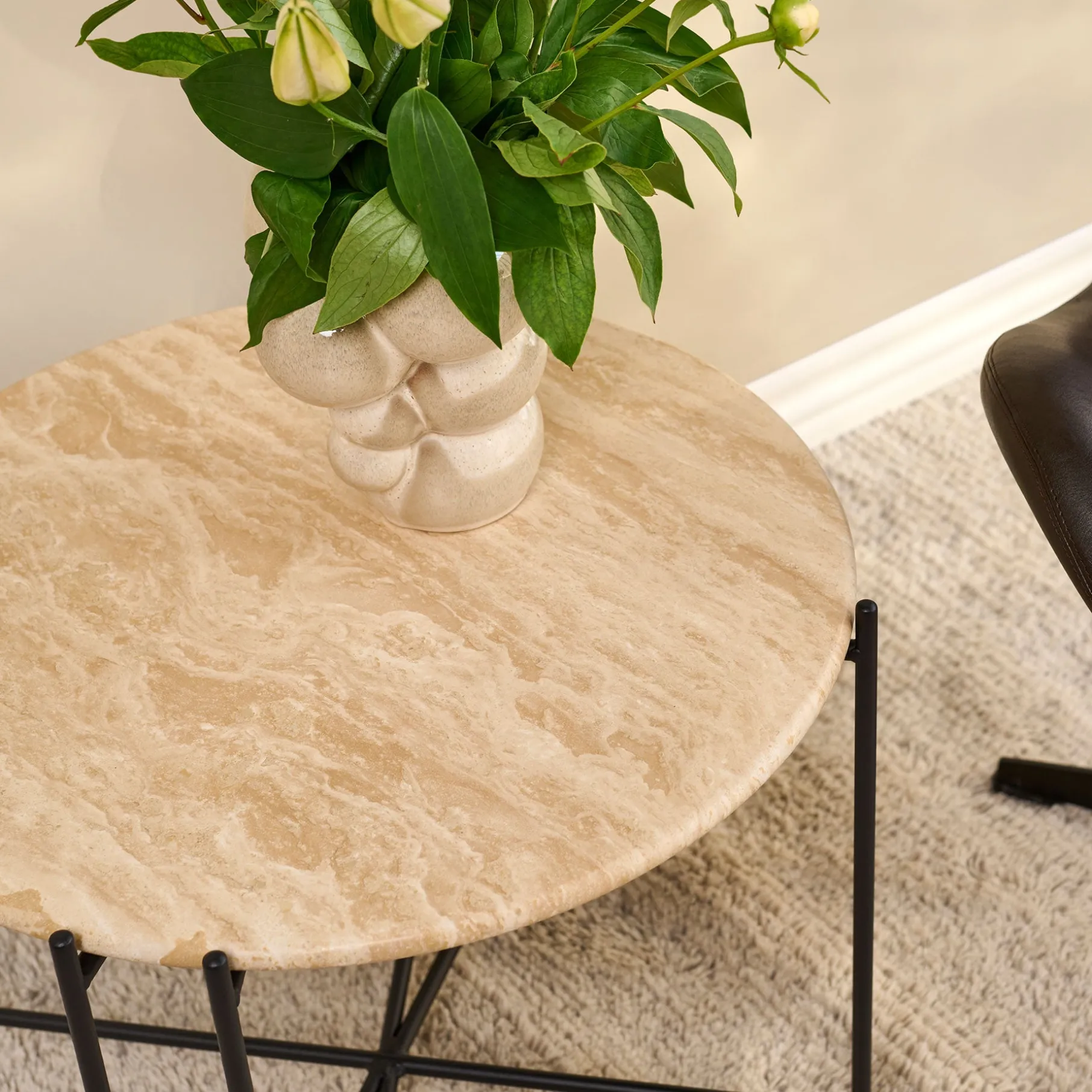 Travertin er et eksklusivt naturmateriale kendt for sin holdbarhed og karakteristiske, porøse overflade, der skaber en uovertruffen visuel dybde. Hver bordplade er unik med sine subtile farvevariationer og naturlige mønstre, hvilket gør Viola sofabordet til mere end bare et møbel – det er et kunstværk i sig selv.