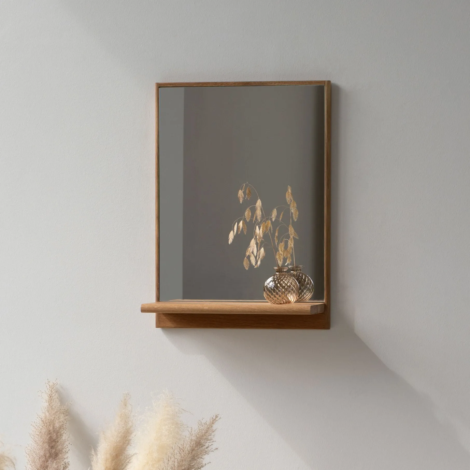 Spejl med hylde i FSC certificeret egetræ.