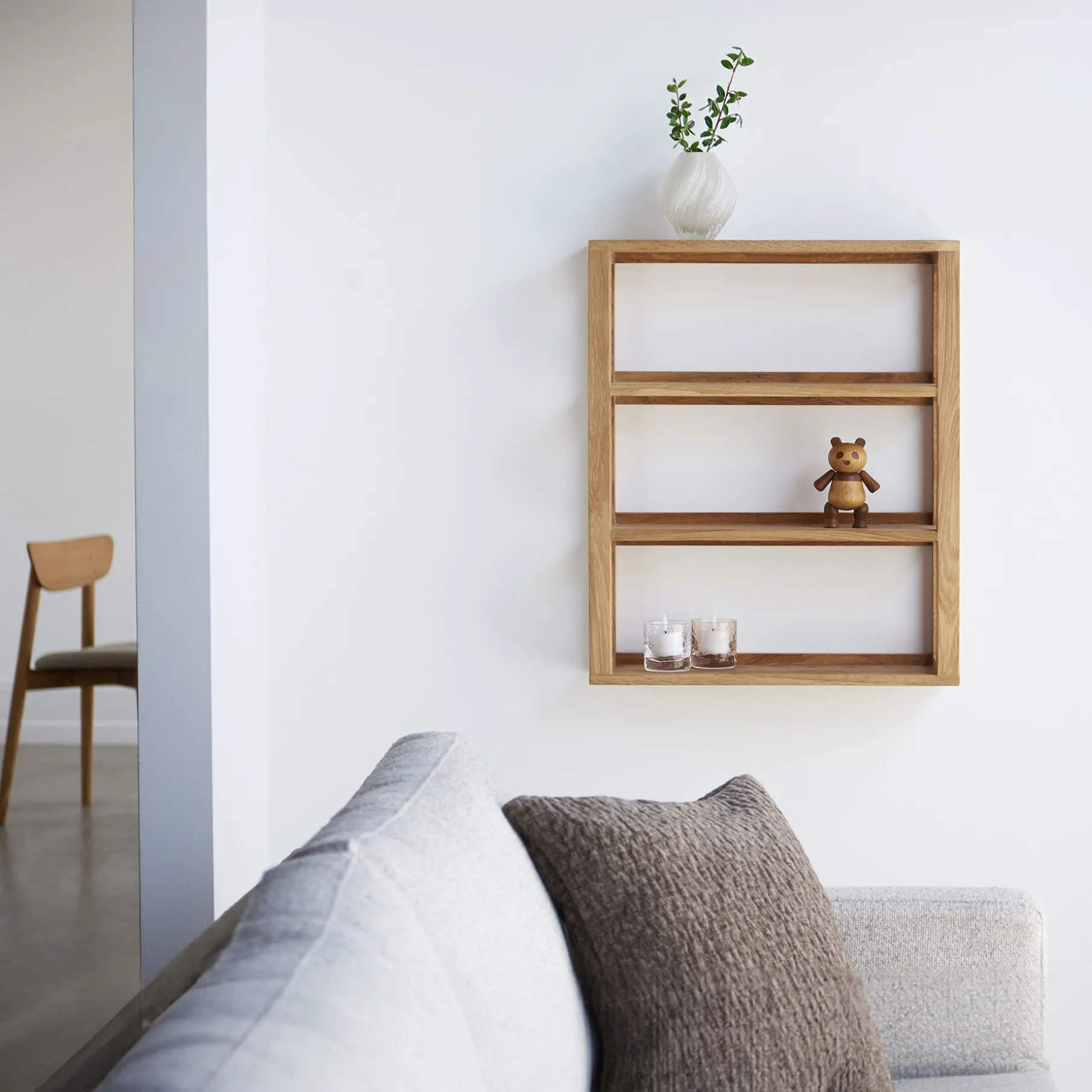Opgrader din indretning med Akeru II væghylde, hvor funktionalitet møder tidløst design. Denne stilrene væghylde har tre rummelige hylder, perfekt til at fremvise dine yndlingsting – fra dekorative elementer til bøger og planter.