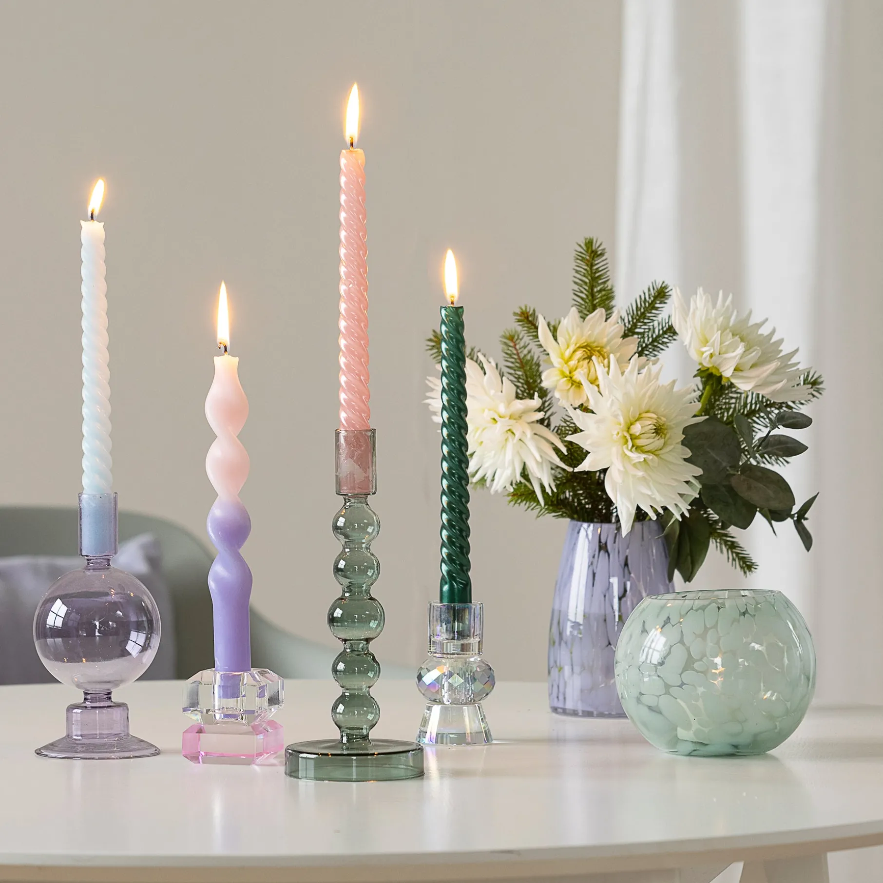 Da vaserne er mundblæste, varierer de i udtrykket, og er derfor helt unikke med hver deres særpræg – der findes altså ikke to, der er ens. De fine pastelfarvede mønstre spreder glæde på borddækningen og lyser indretningen op med glade nuancer, som man ikke kan få nok af.