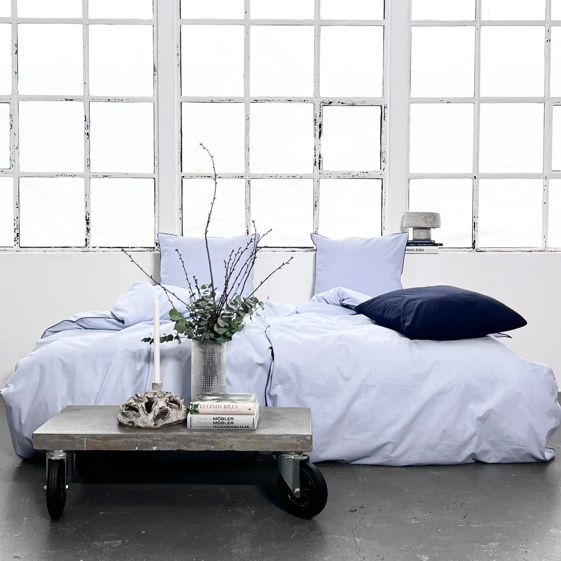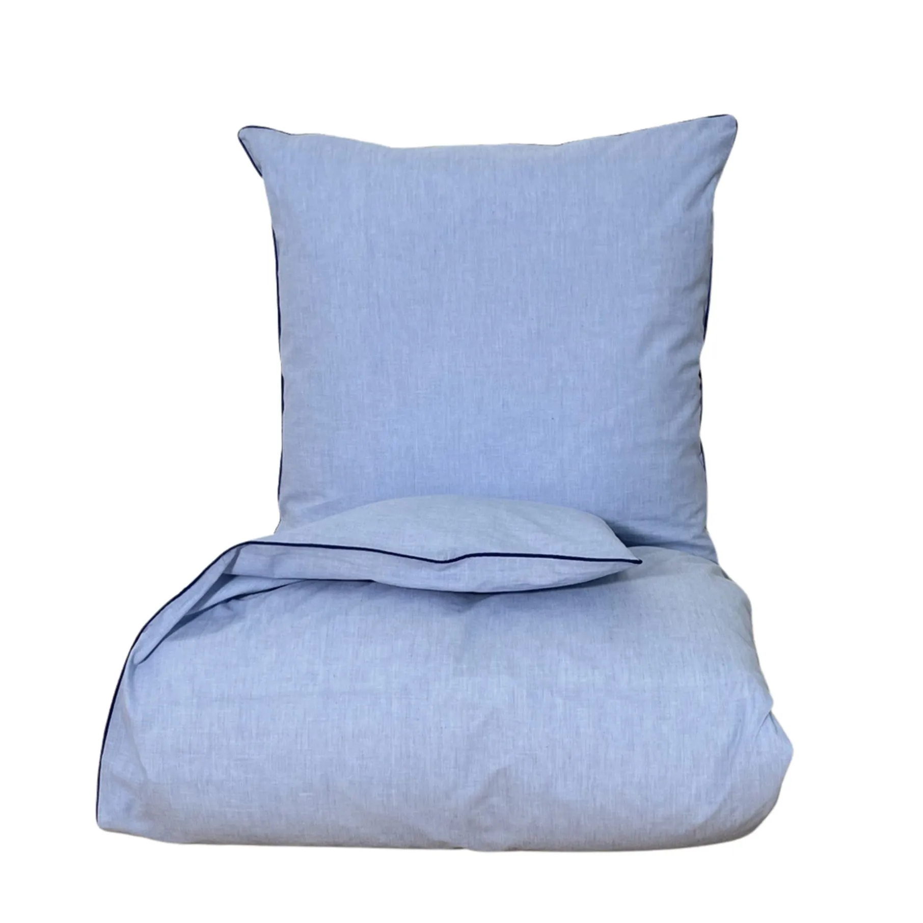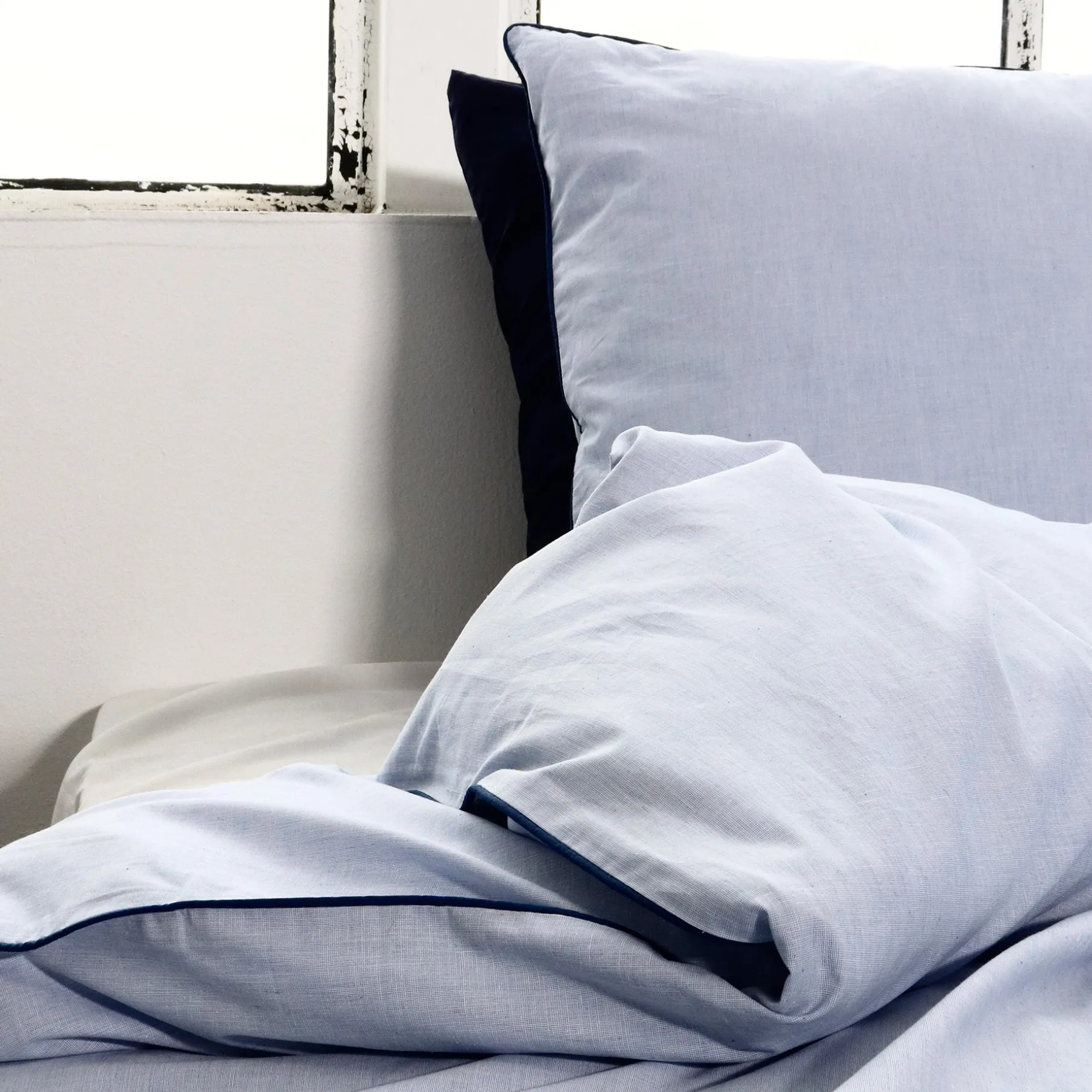 Dette sengesæt kombinerer et enkelt, ensfarvet udtryk med en kontrastfarvet piping for et subtilt designløft. Chambré-vævningen giver stoffet en naturlig melering, som understøtter et roligt og neutralt udseende. Sengetøjet er ansvarligt produceret og designet med fokus på både holdbarhed og funktionalitet, hvilket gør det velegnet til langvarig og alsidig anvendelse.