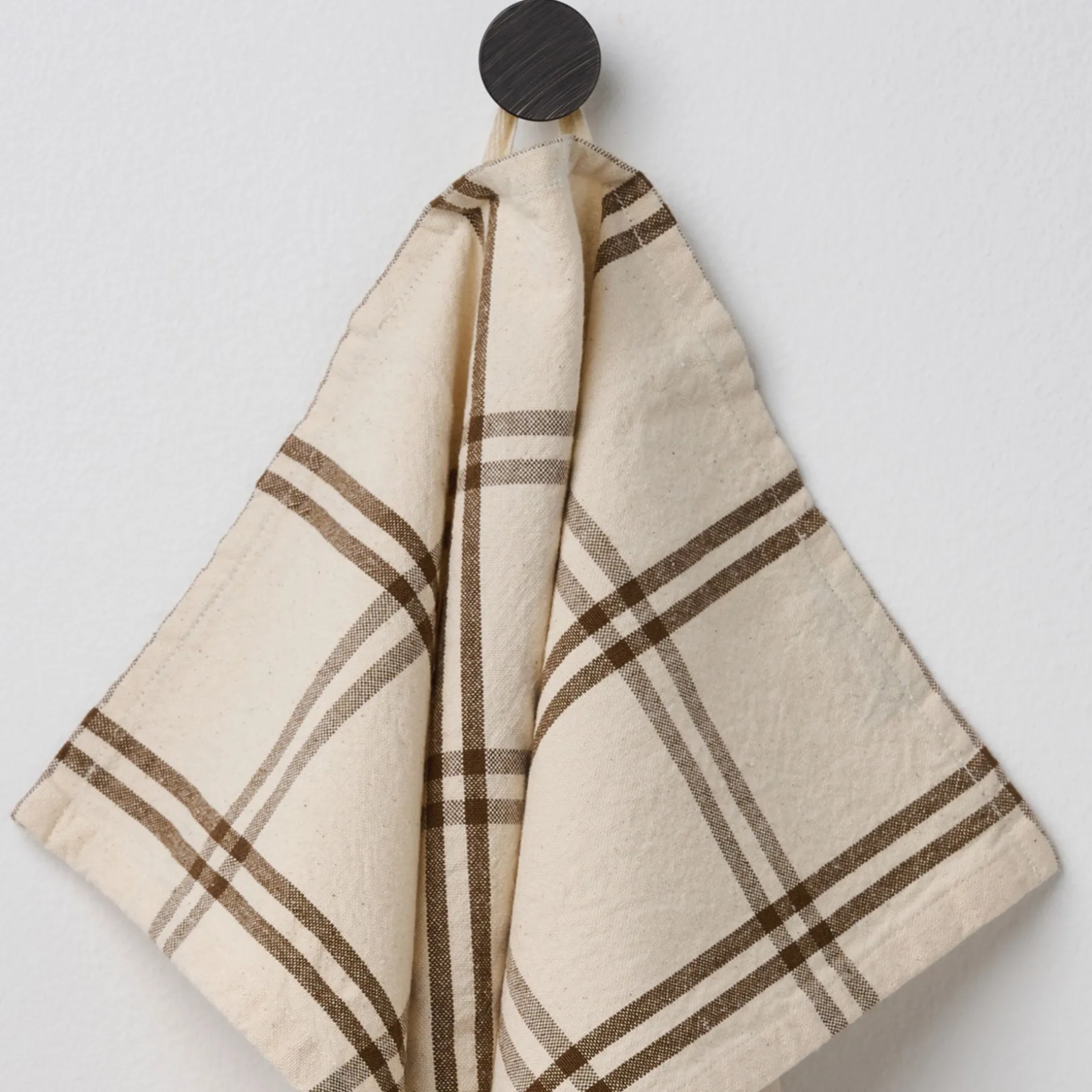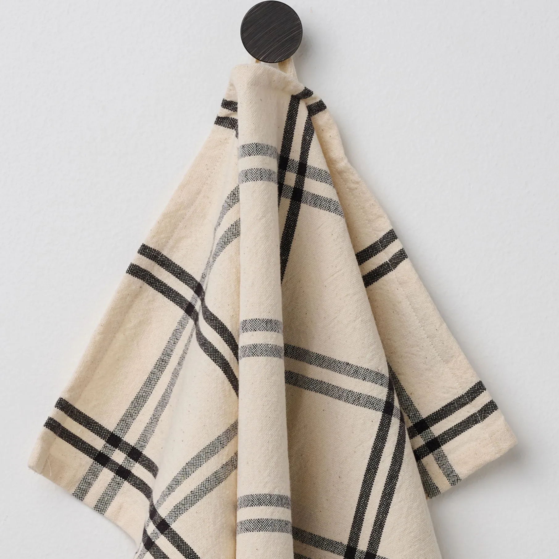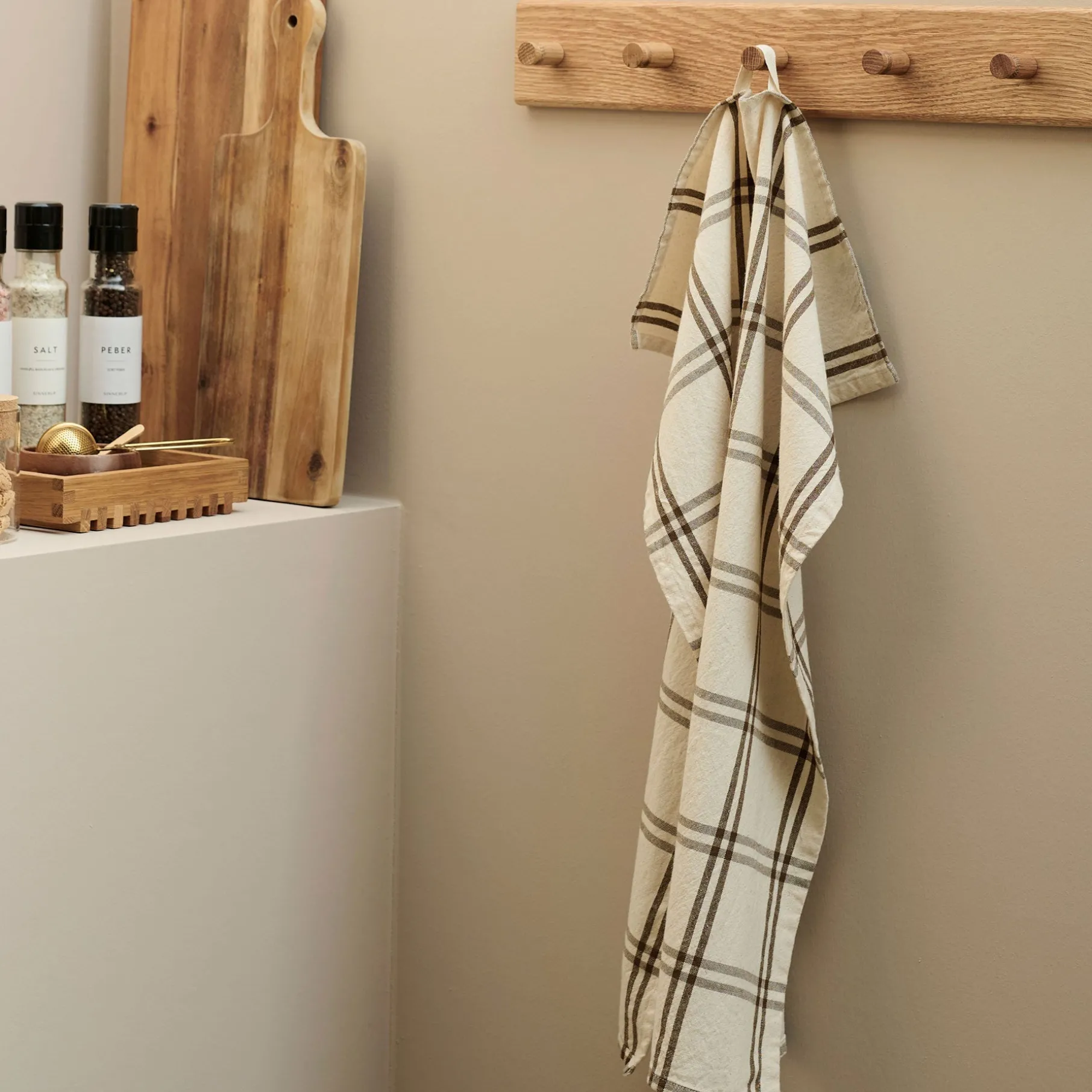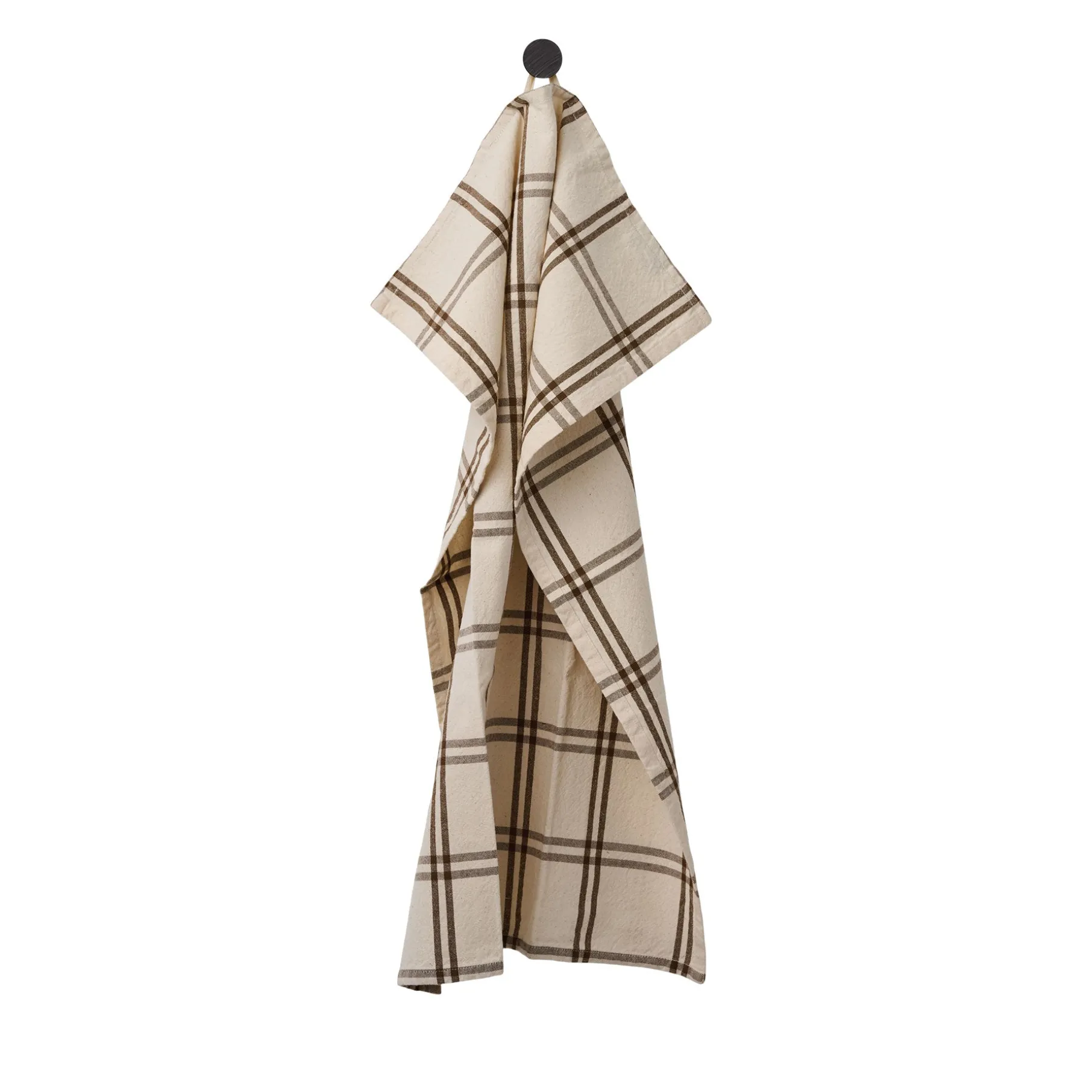 Med sit tidløse ternede design passer det perfekt til ethvert hjem. Viskestykket fås i to elegante varianter: en med brune linjer, der tilføjer varme og hygge, og en med sorte linjer, som giver et moderne og minimalistisk udtryk.