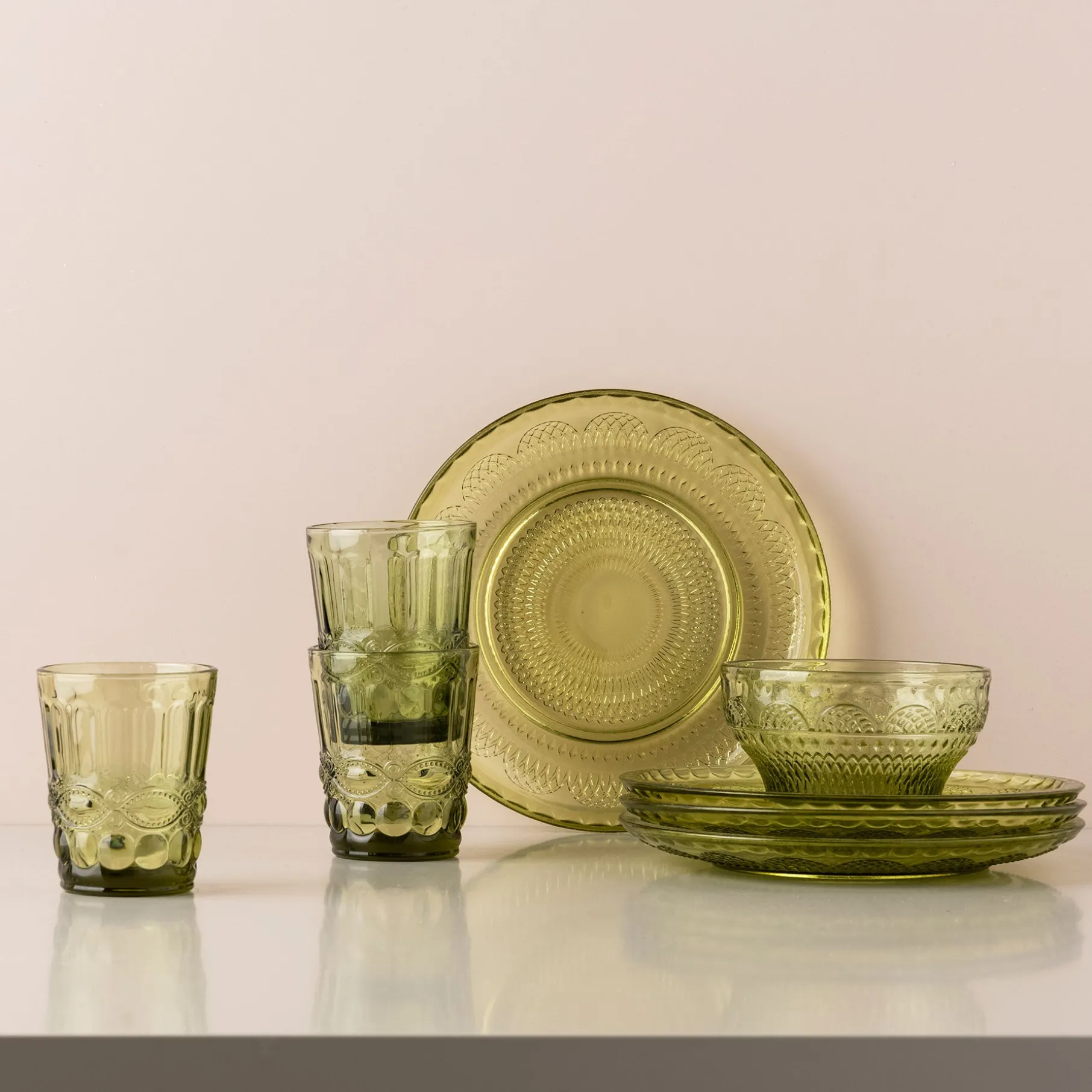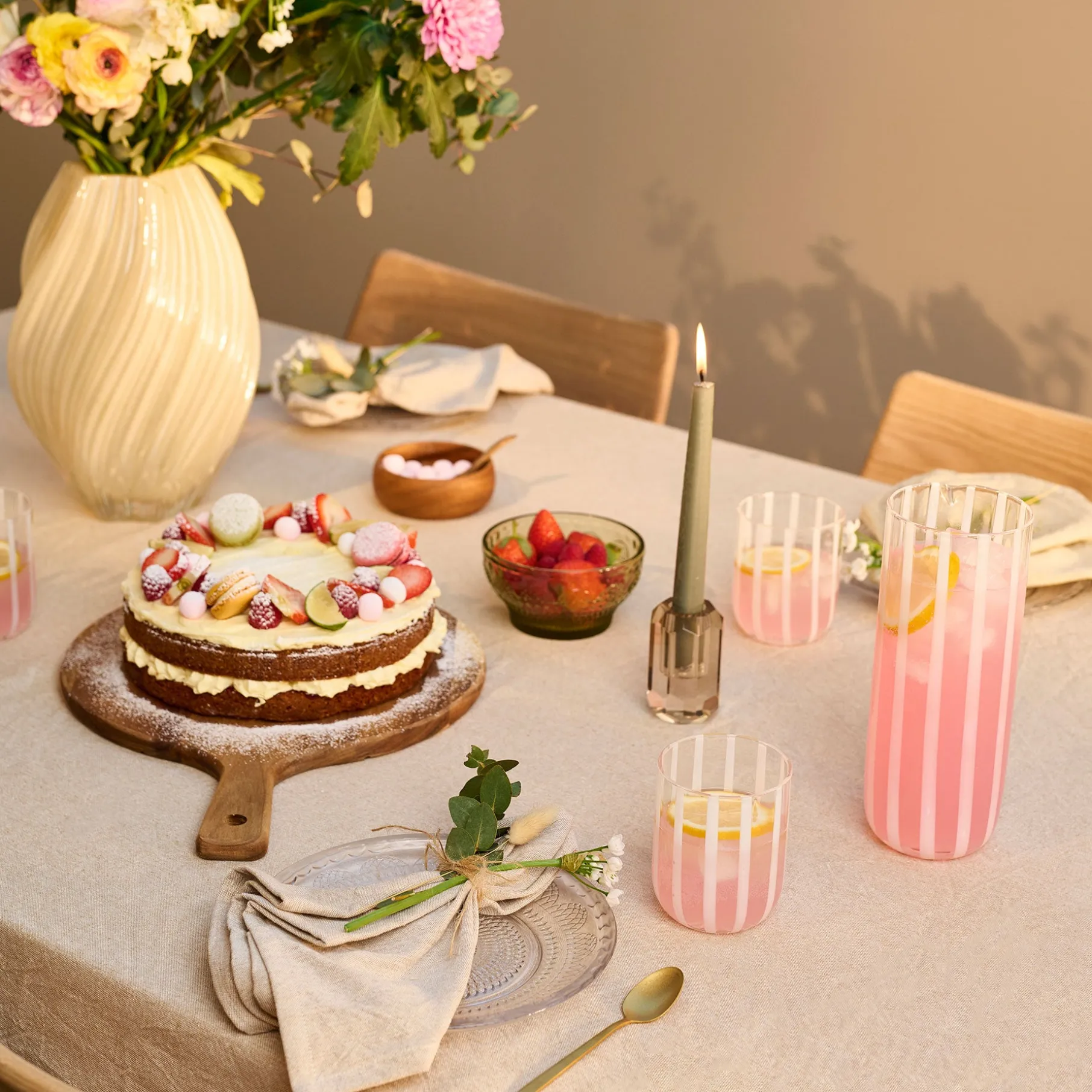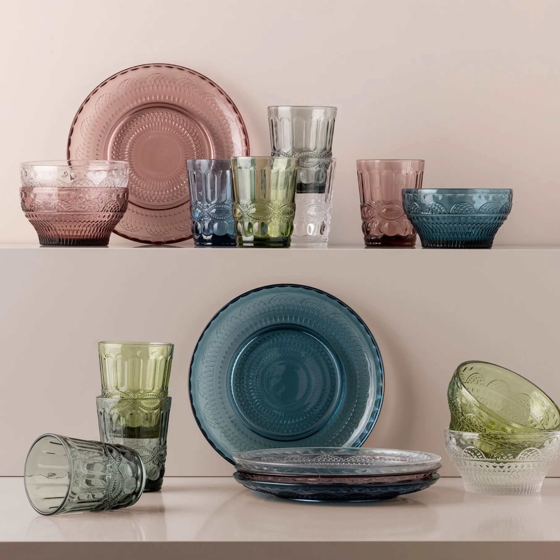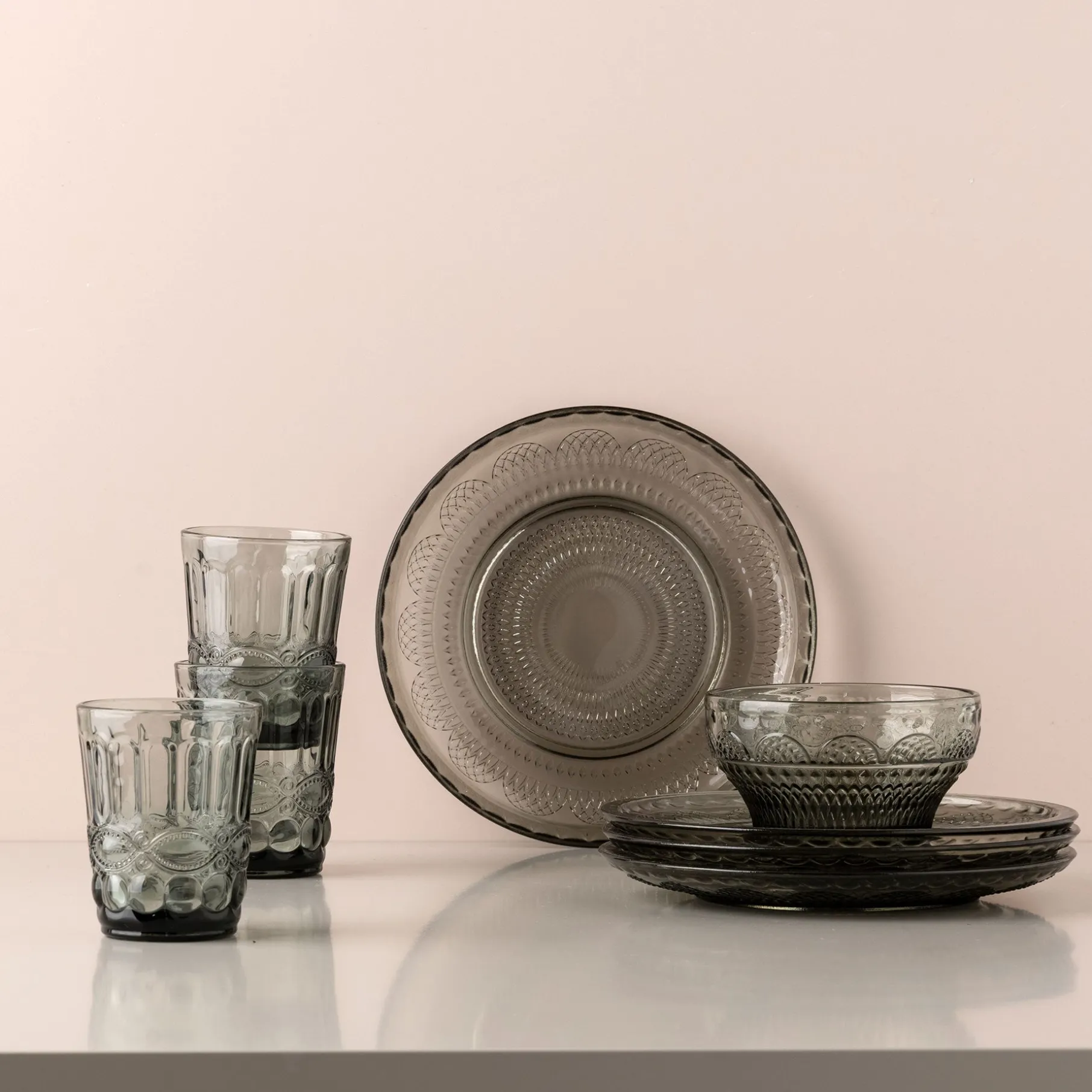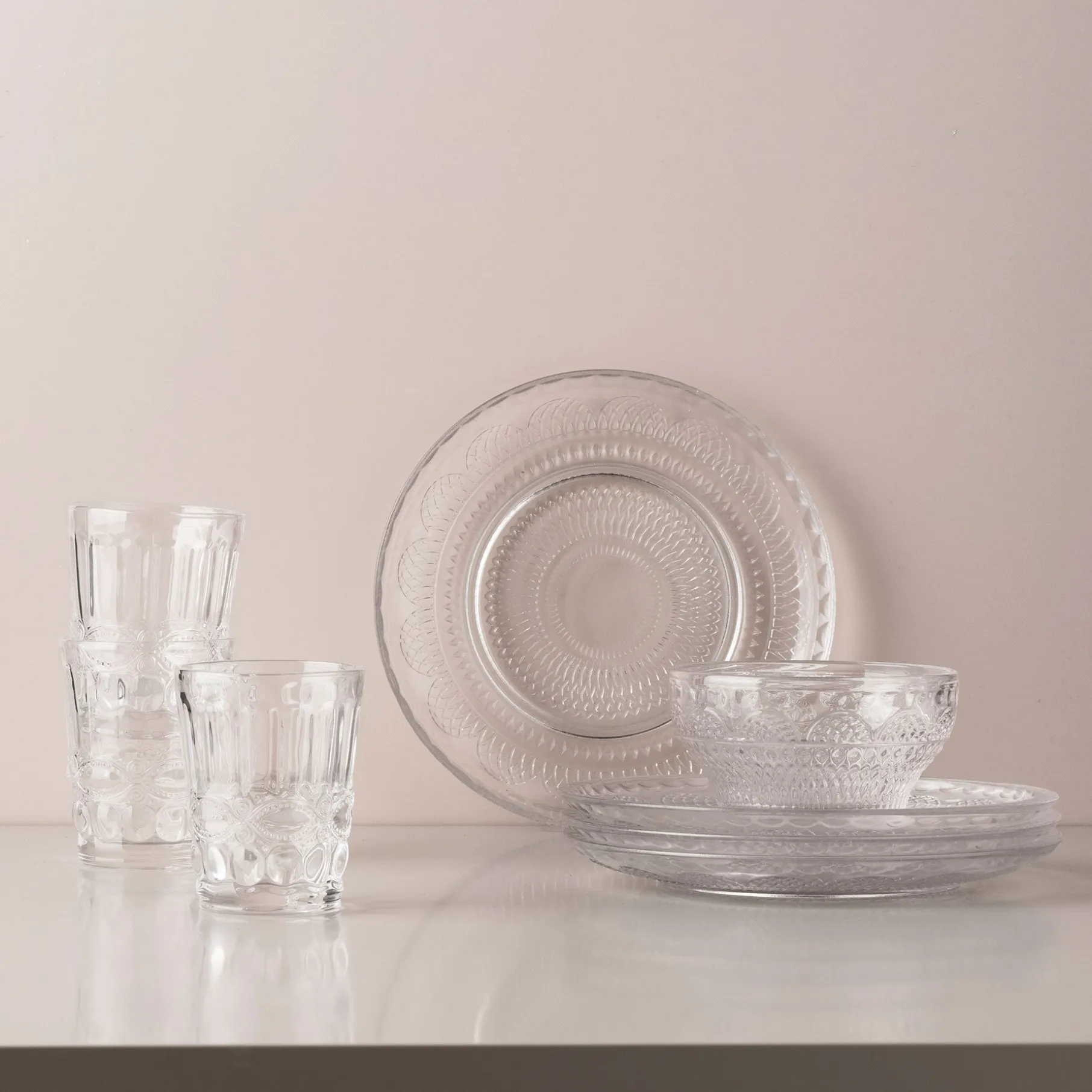Chik stellet er lavet i glas og har et elegant mønster med reference til klassiske blonder og isasietter. Stellet emmer af feminin ynde og elegance, og kan bidrage til en gennemført borddækning til enhver begivenhed, uanset om det er en middag for to eller en storslået fest.