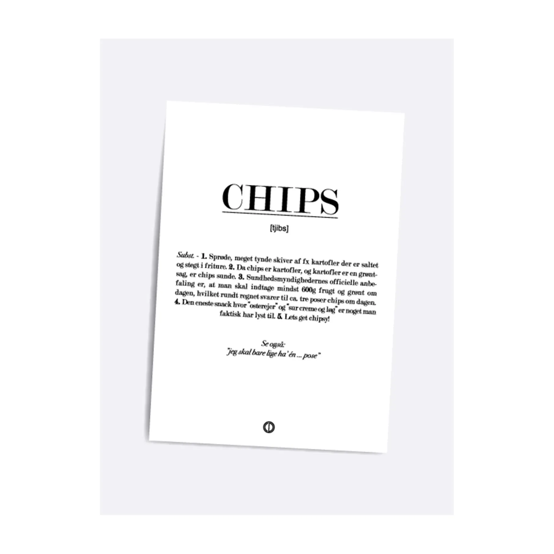 Sjovt kort der beskriver chips på en sød og drillende måde. Perfekt kort sammen med en gave til chips-elskeren, da det helt sikkert får et smil frem på læberne.