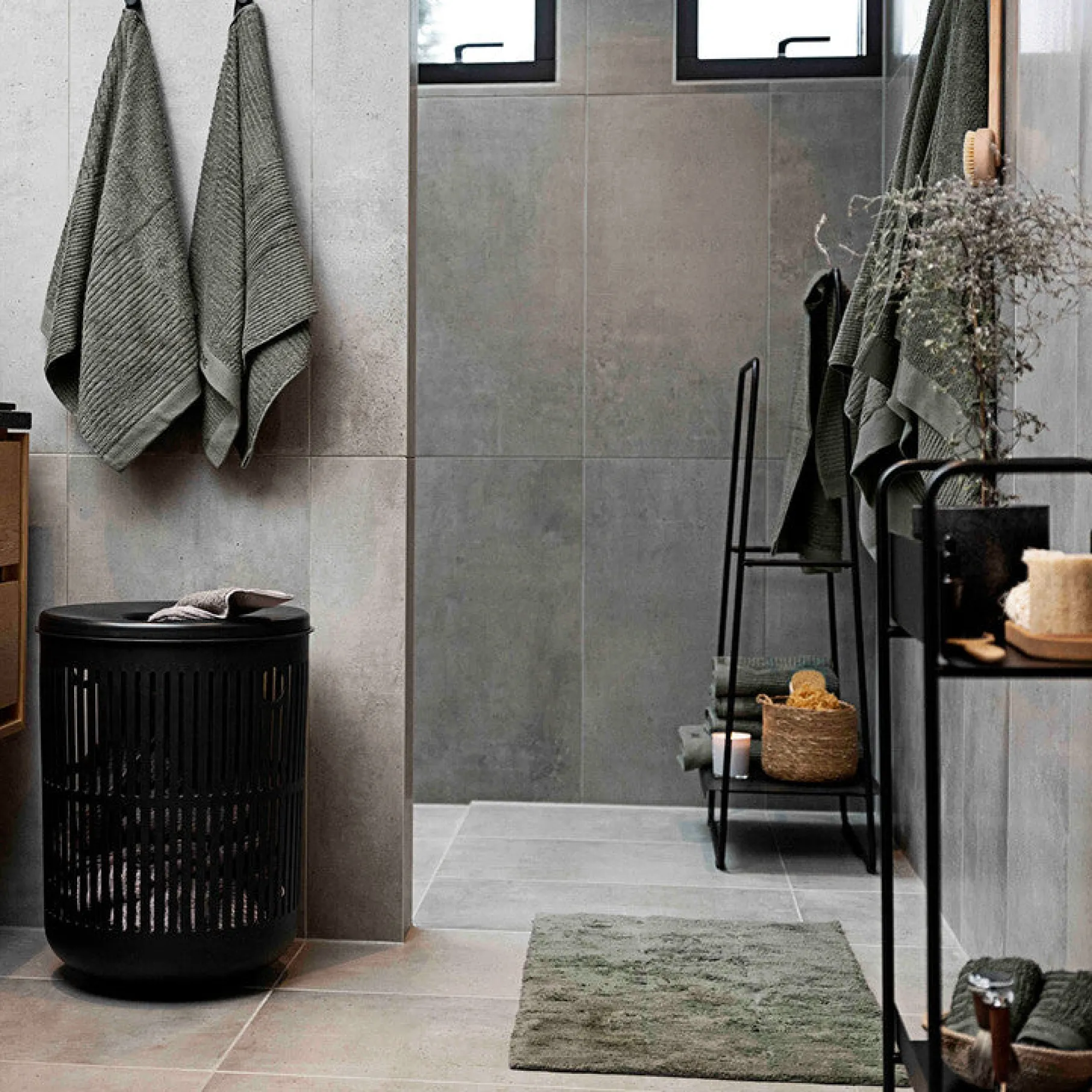Håndklædet er lavet af bomuld af høj kvalitet, der er både absorberende og holdbart. Farven olive green giver en elegant og tidløs følelse, til enhver badeværelsesindretning.