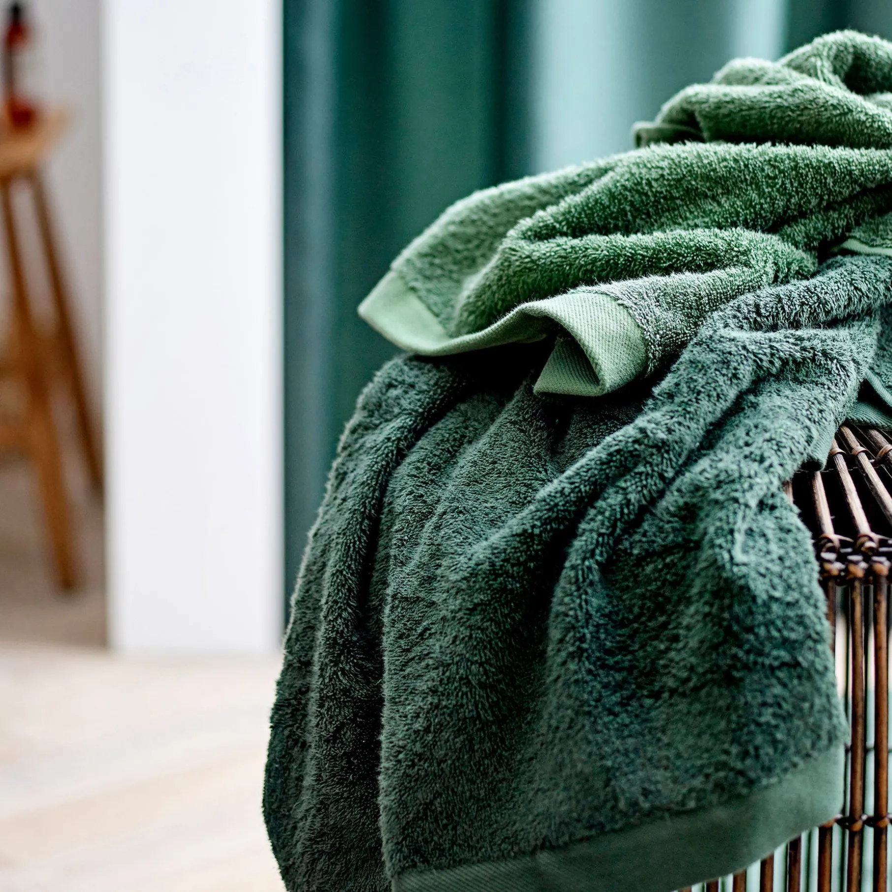 Nyd luksus med håndklæder fra Södahl. Lavet af 100% økologisk bomuldsfrotté i en stilfuld pine green farve.