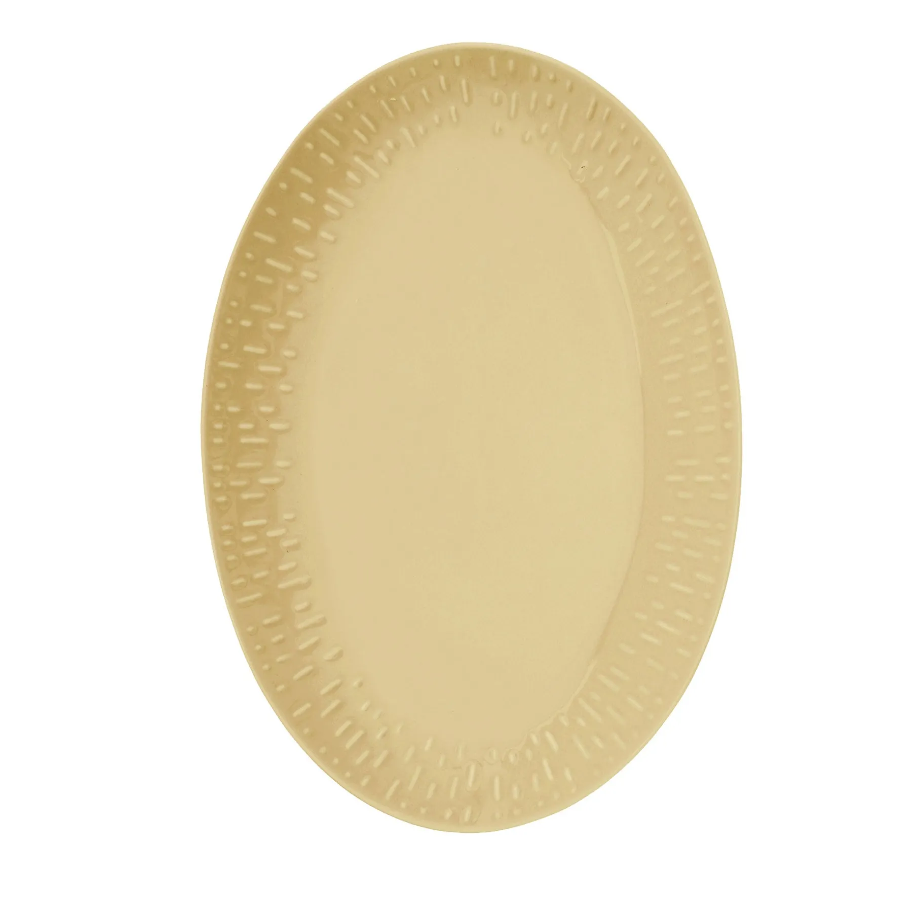 Denne smukke oval fad er en super løsning til serveringen, og gør borddækningen stilfuld. Fadet fås i flere farver, som du kan blande og matche efter din egen smag. Fadet har en dekorativ kant med et reliefmønster som giver et spil i det farverige glas.
