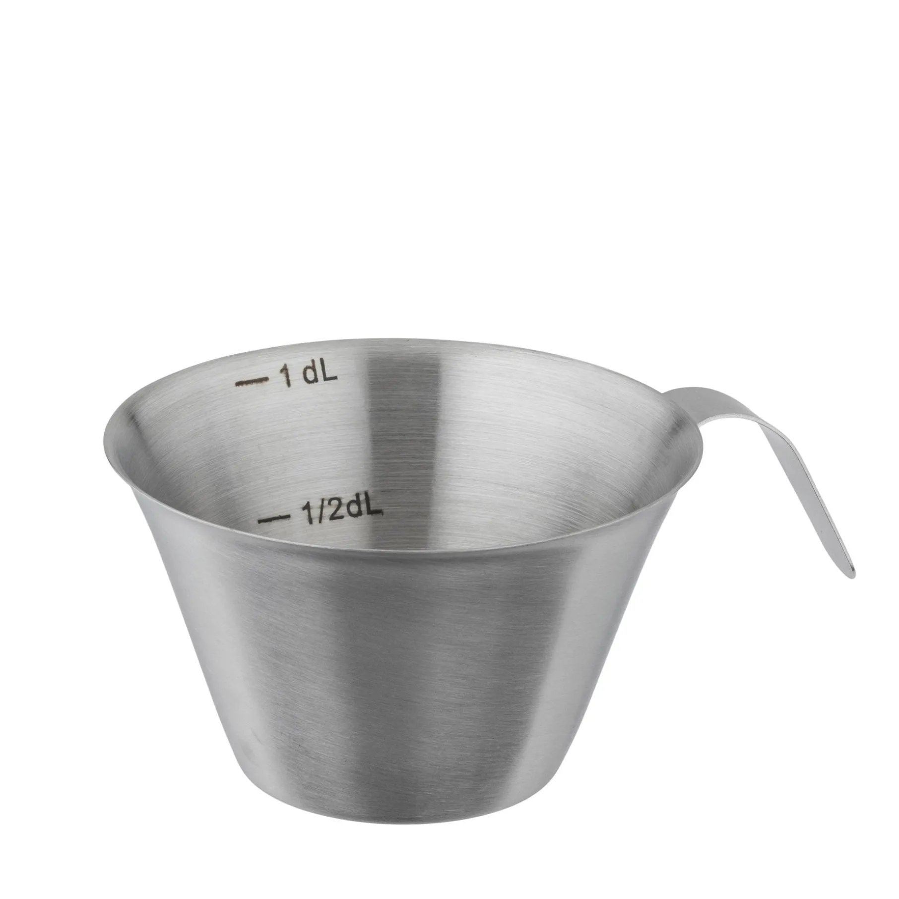 Et klassisk decilitermål med en lille hank, som har et indhold på op til 1 dl.