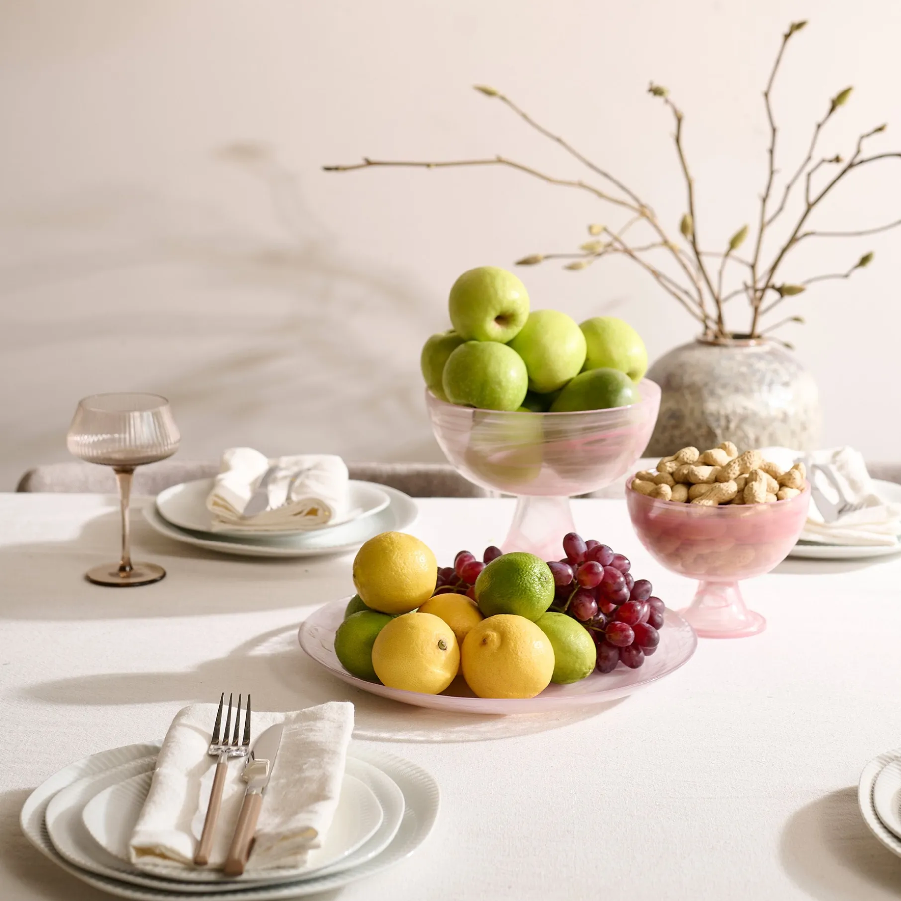 Perfekt til dig, der elsker et smukt dækket bord med et strejf af romantik og lethed. Skab din egen unikke bordopdækning ved at kombinere de forskellige dele af stellet – eller lad skålen stå alene som et dekorativt element.