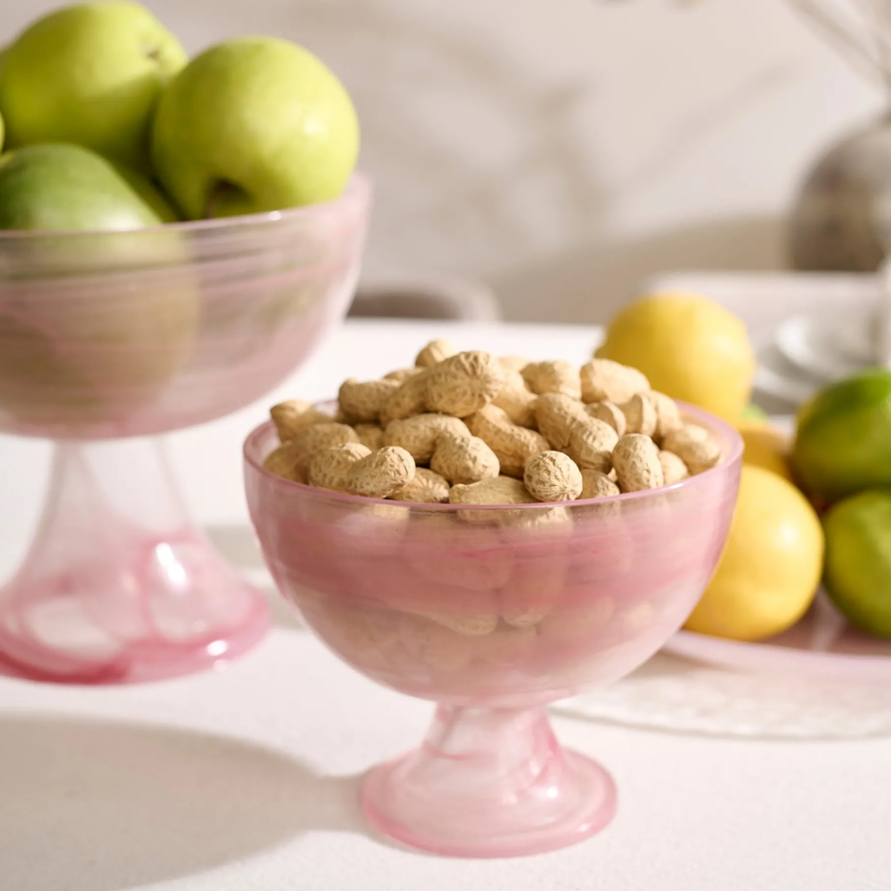Giv din borddækning et strejf af elegance og sødme med Cotton Candy skålen på fod. Med sin fine glasstruktur og bløde farver i enten hvid eller pink, er denne skål den perfekte kombination af stil og funktionalitet.