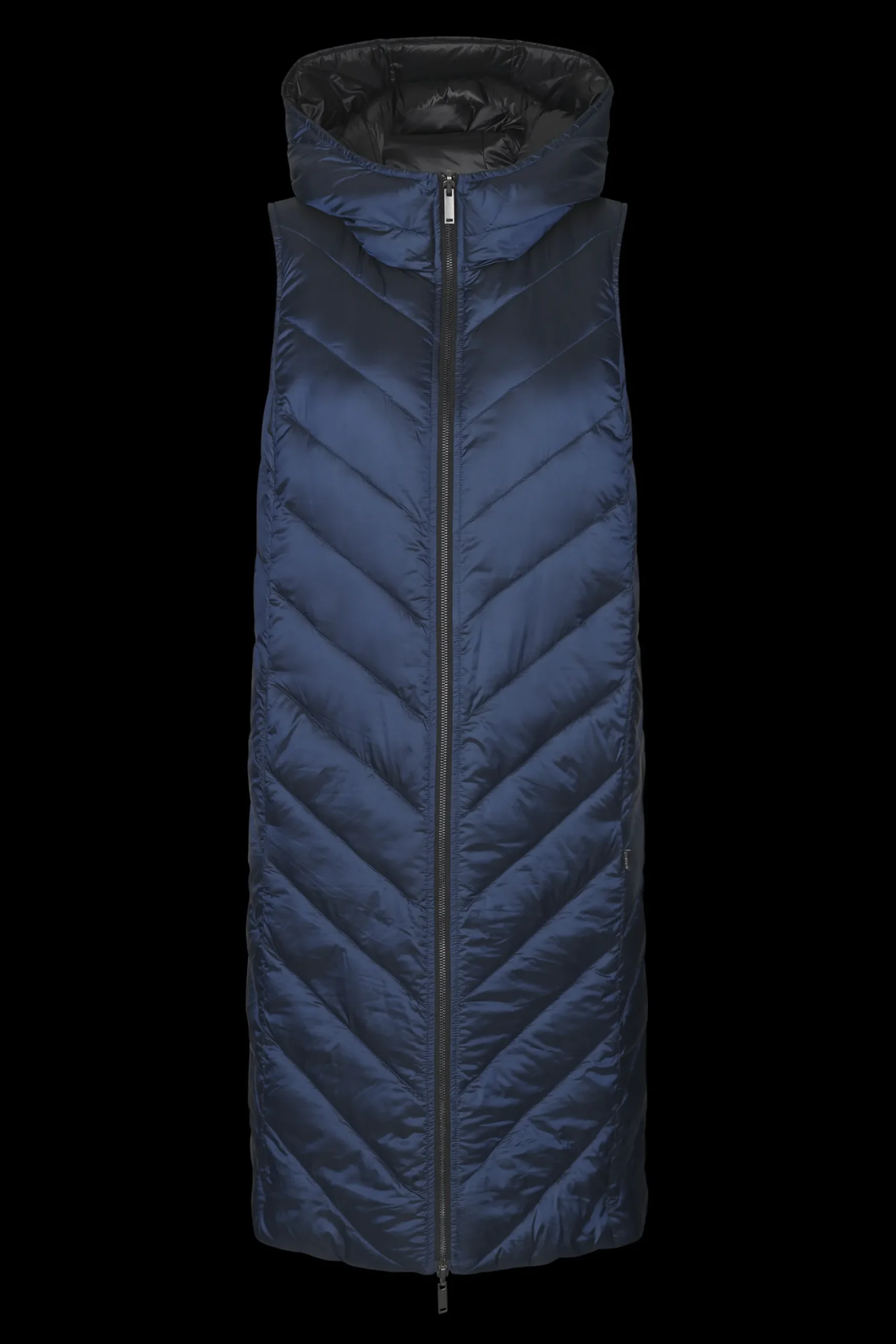 Lækker, blød puffer vest med termo- og dyne effekt. Vesten er vendbar, så den kan bæres med begge sider fremme, og du faktisk har to veste i én. Vesten har grov, sort lynlåslukning foran samt en cool hætte. Desuden har den sidelommer.