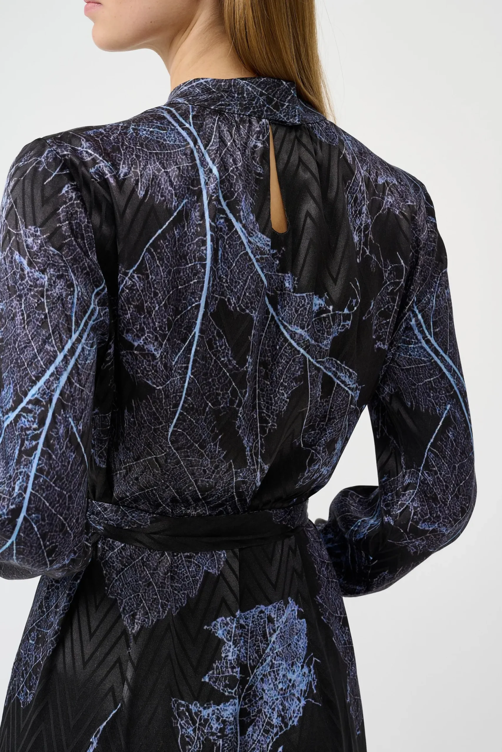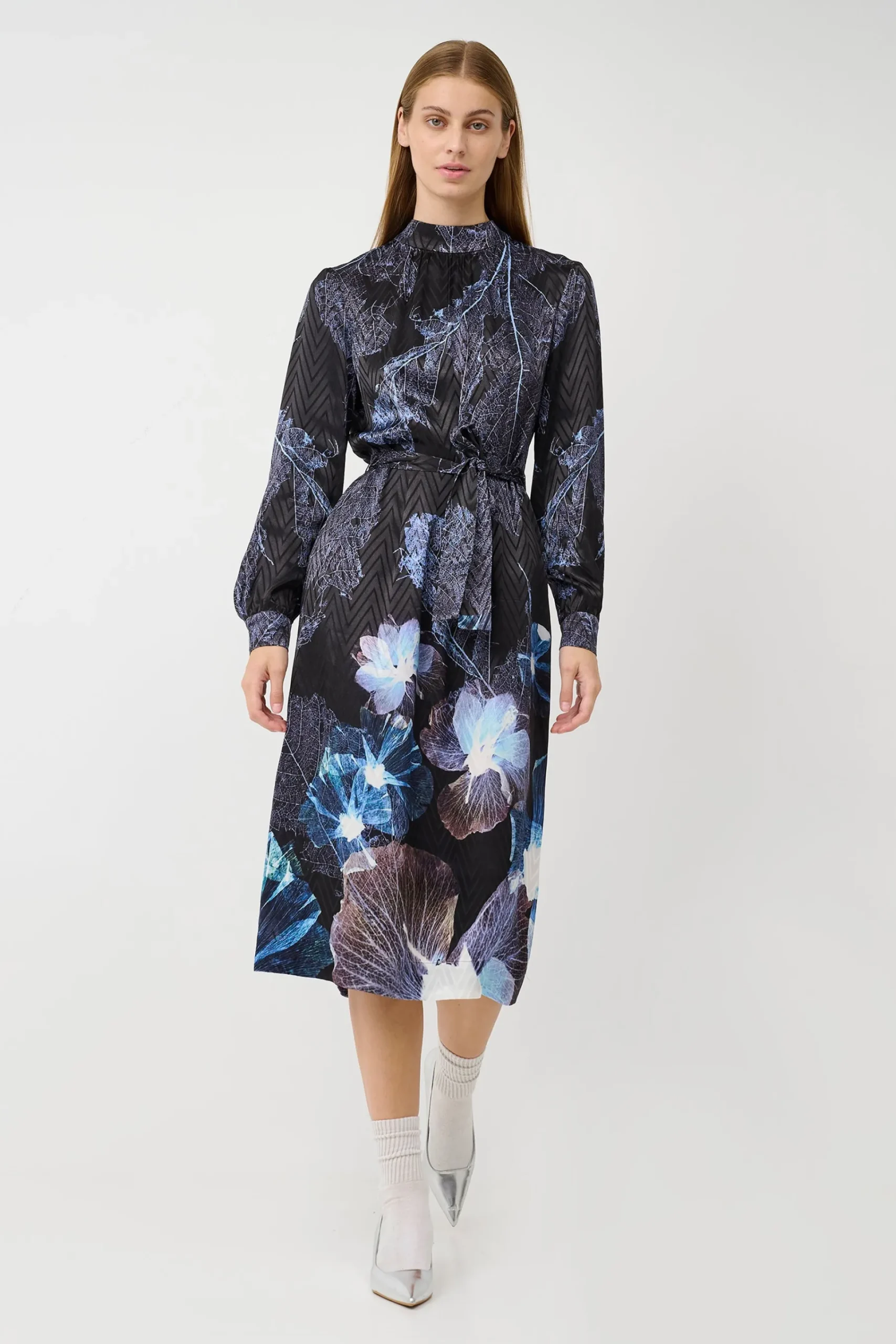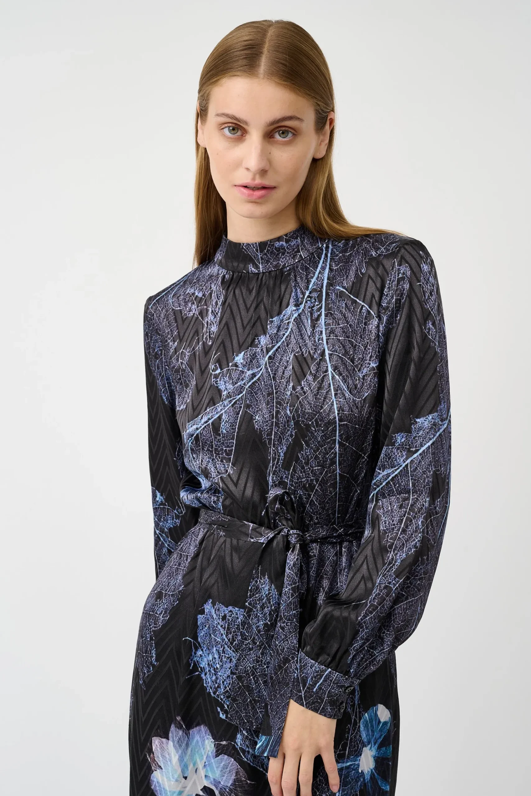 Materialet består af viskose og rayon, som er regenererede cellulosefibre. Kombinationen af de to materialer giver et eksklusivt glansfuldt look, med en fin tyngde der giver kjolen et flot fald. Viskose og rayon skaber en naturlig blødhed, er åndbart og behageligt at have på.