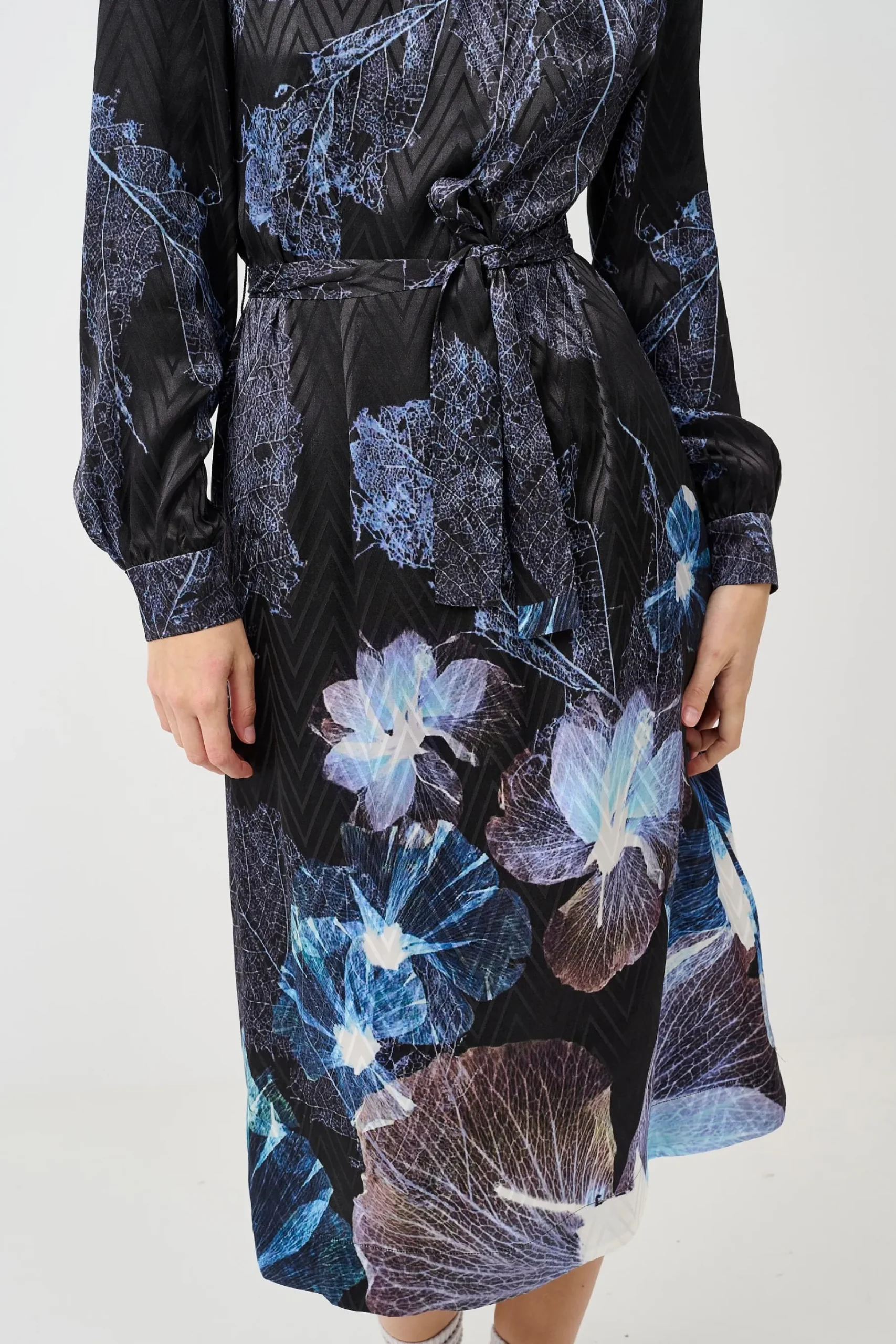 Lang kjole med et feminint snit og pasform. Style den med eller uden bælte.