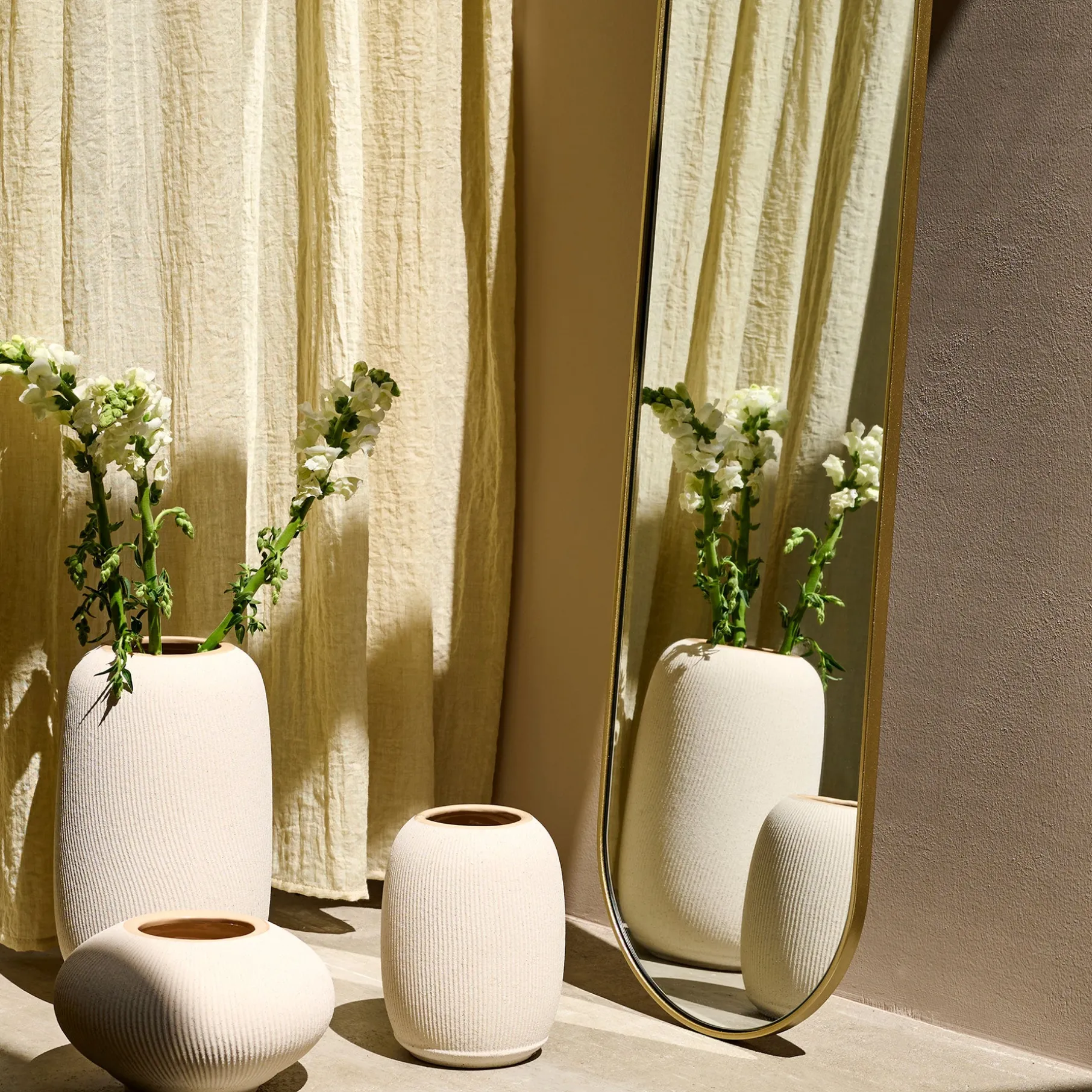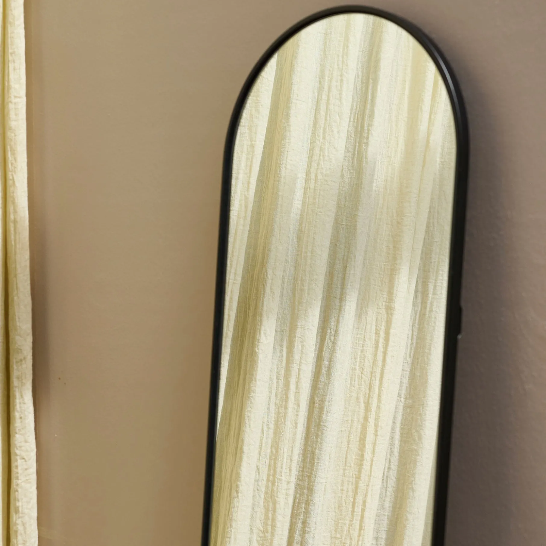 Garda II er et højt slankt spejl med en rund top og bund, der tilføjer en moderne elegance til ethvert rum. Dets minimalistiske design og slanke ramme gør det ideelt til at skabe vægkunst ved at placere flere Garda-spejle ved siden af hinanden eller i forskellige højder.