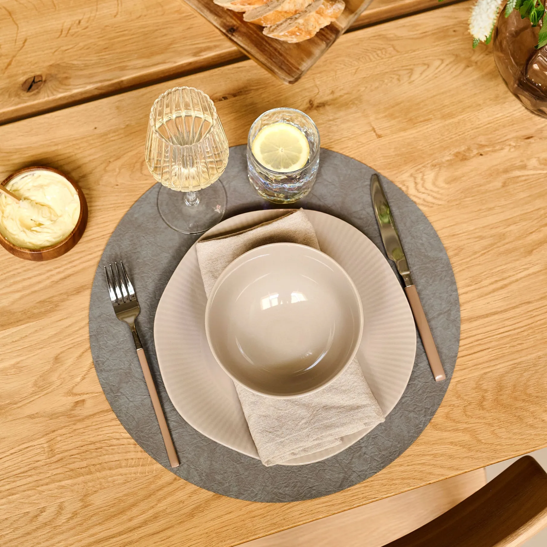 Opgrader din borddækning med den elegante og alsidige Glasgow Vendbar Dækkeserviet. Med en diameter på 38 cm passer denne dækkeserviet perfekt til både hverdags- og festlige måltider og beskytter samtidig dit bord. Den vendbare funktion giver dig to stilerene designs i én, så du nemt kan skifte behov.