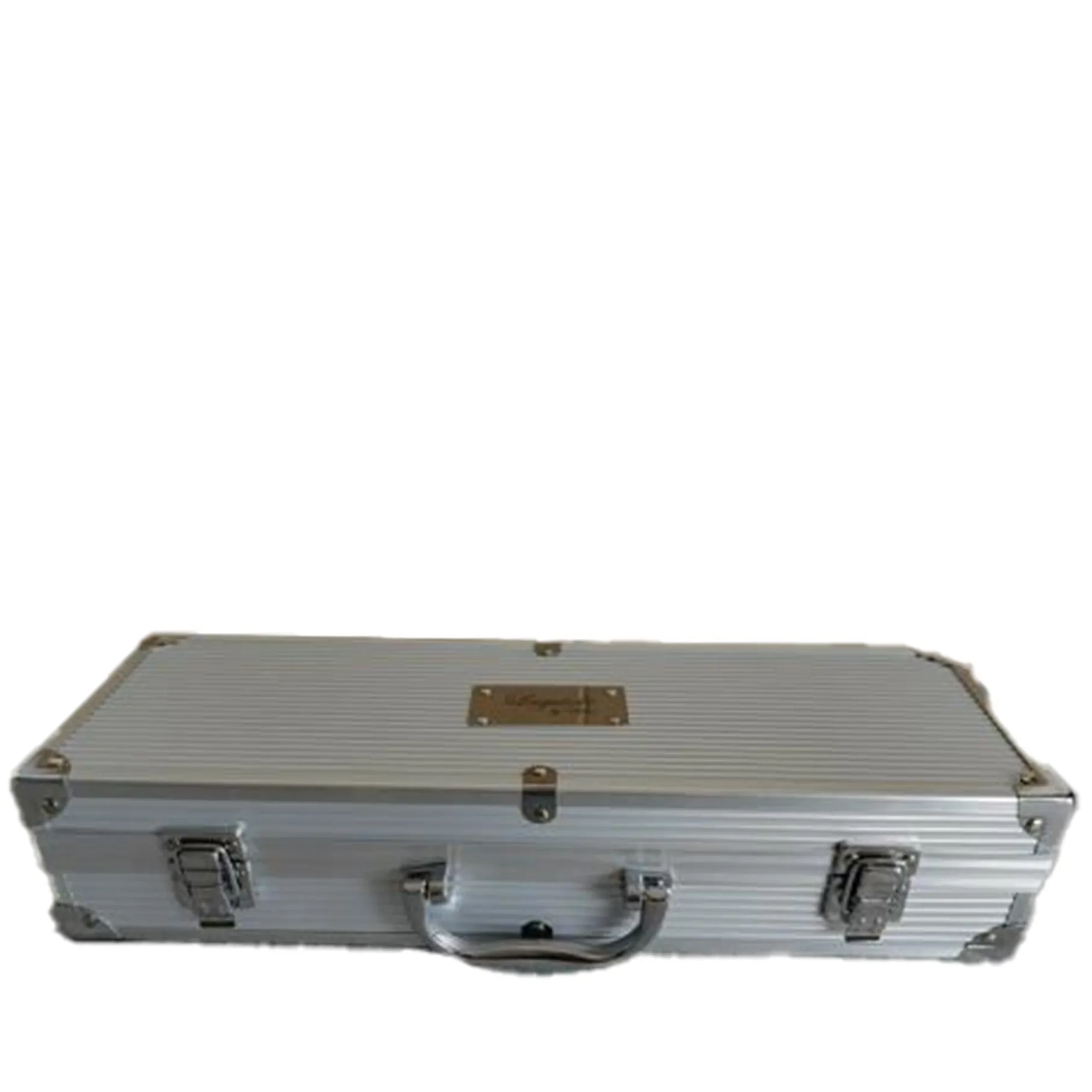 Leveres i en slidstærk aluminiumskuffert, som gør det nemt at opbevare og transportere sættet.