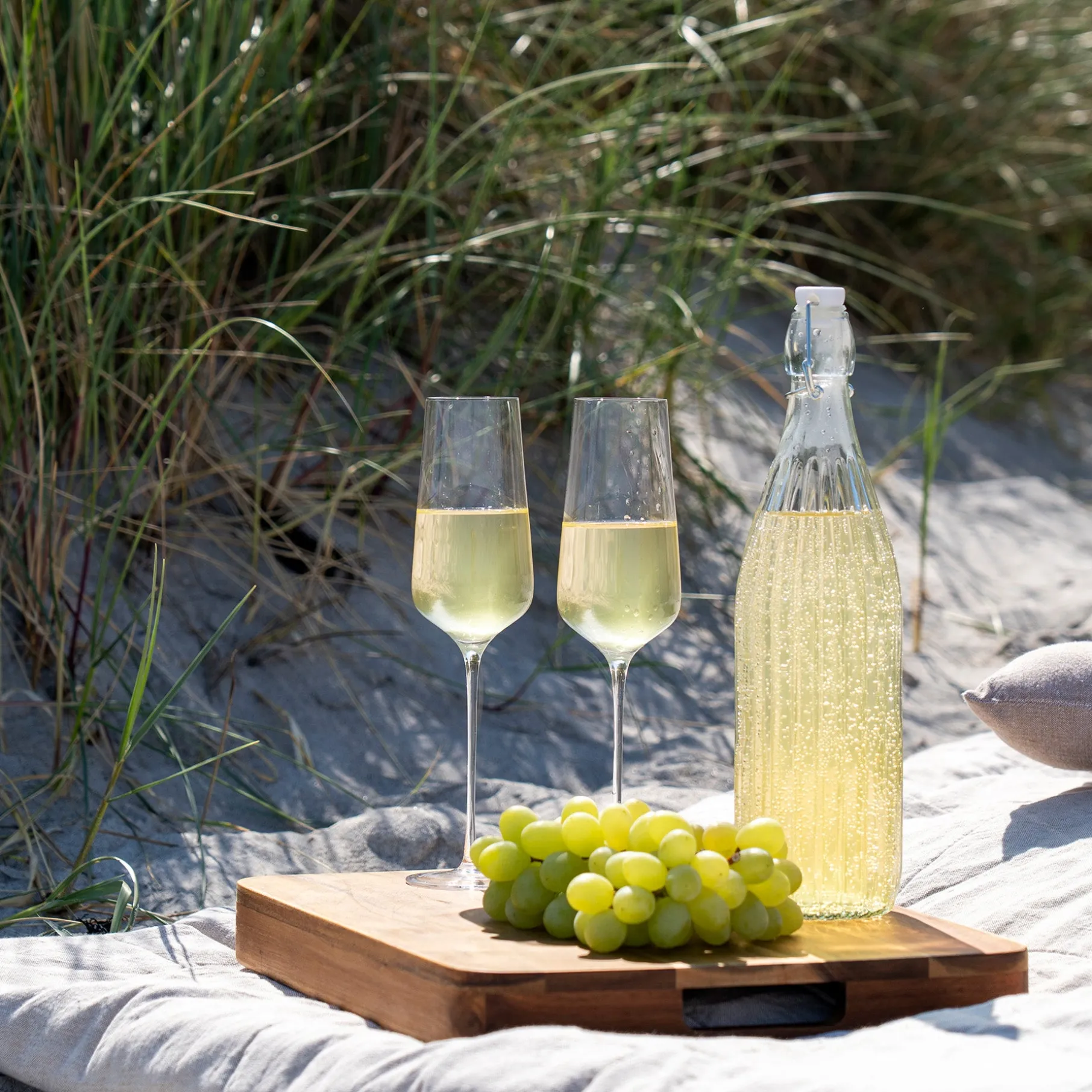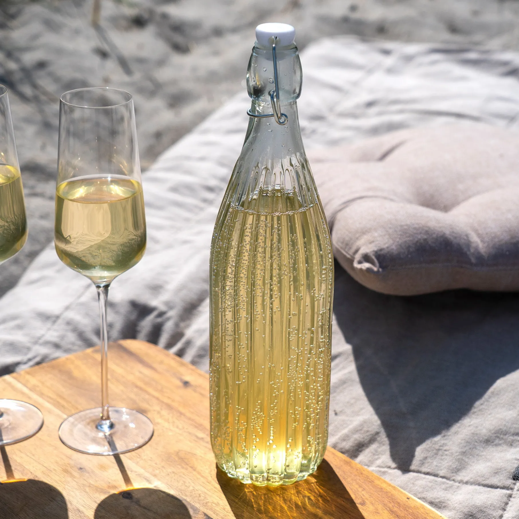 Jupiter flasken er til dig, der vil tilføje et personligt præg til bordet – uden at gå på kompromis med funktion. Den riflede glasflade giver dig et solidt greb, og den klassiske patentprop holder flasken tæt og drikken frisk. Brug den til vand med bobler, farverig saft eller din hjemmelavede lemonade – og lad flasken være en del af bordets æstetik.