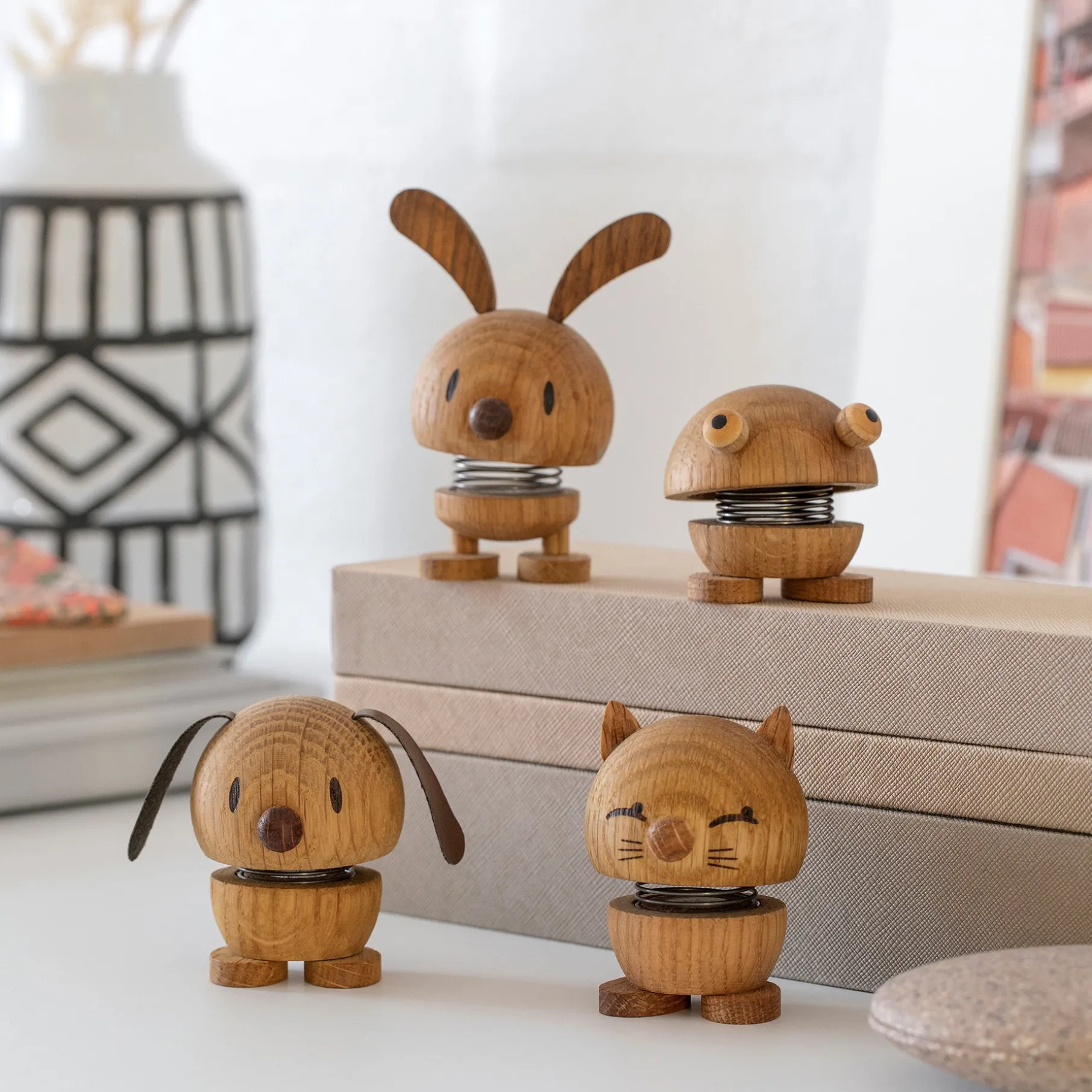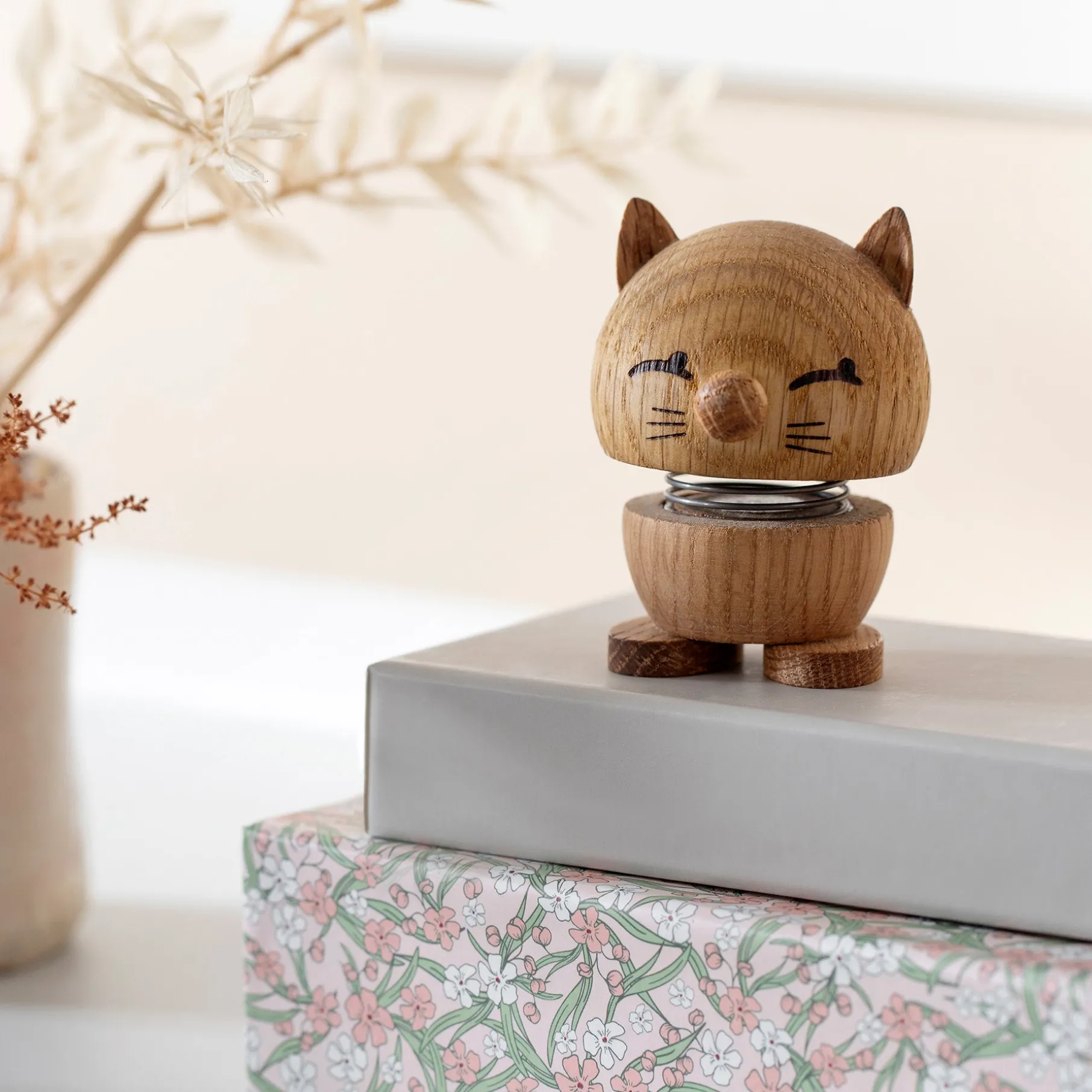 Hoptimist-katten er en charmerende lille figur, der bringer smil til enhver katteelsker. I modsætning til rigtige katte holder den sig, hvor du placerer den – og hopper bare lidt, når du giver den et lille klap. En sjov og dekorativ gaveidé, der også kan vække nysgerrigheden hos husets firbenede ven.
