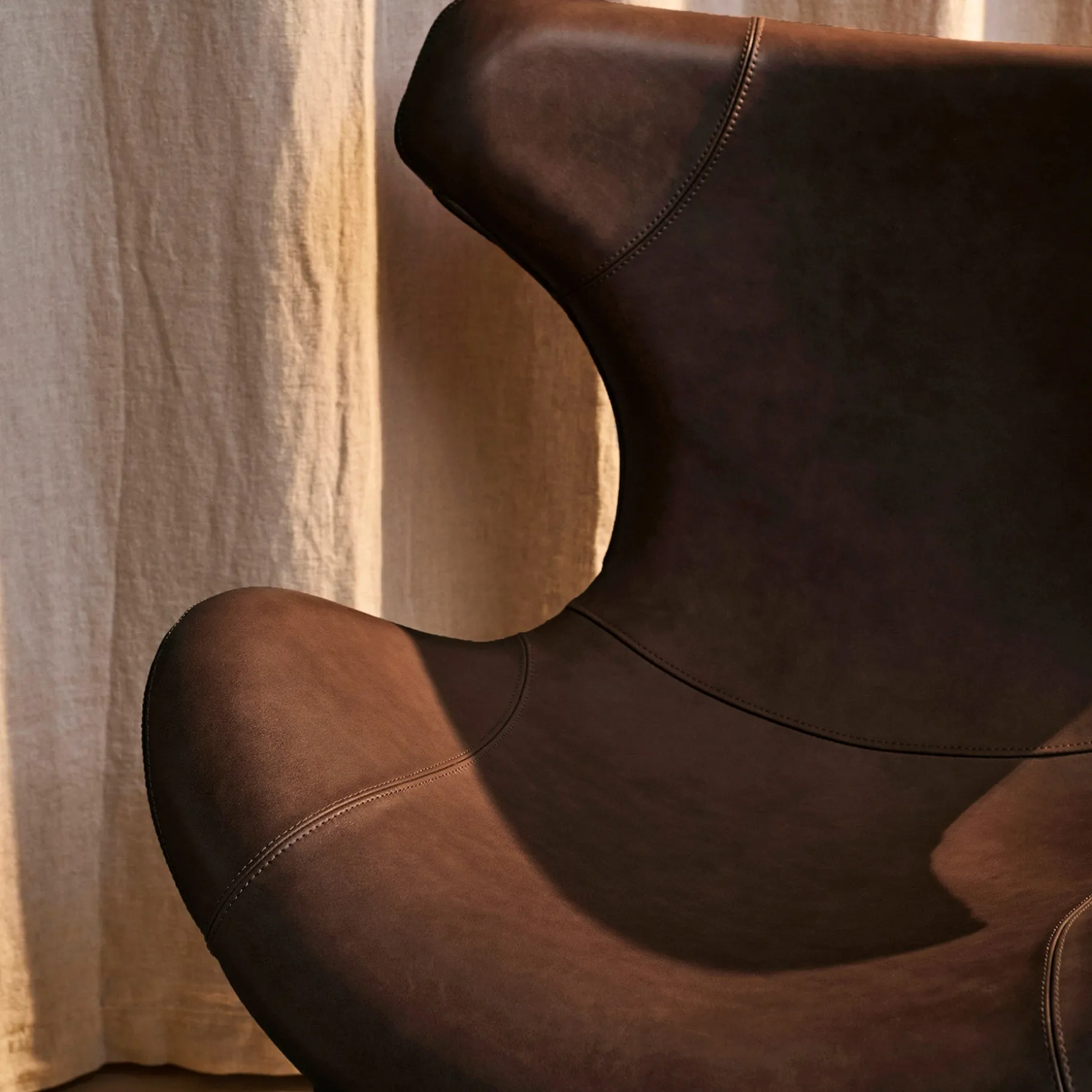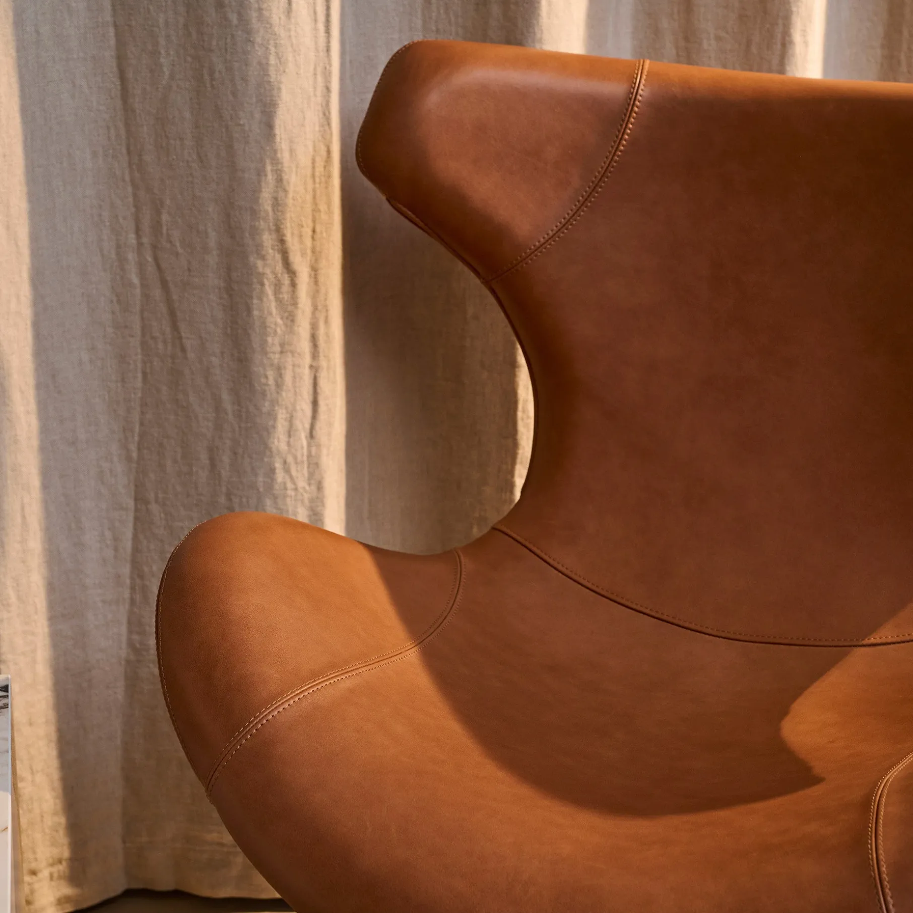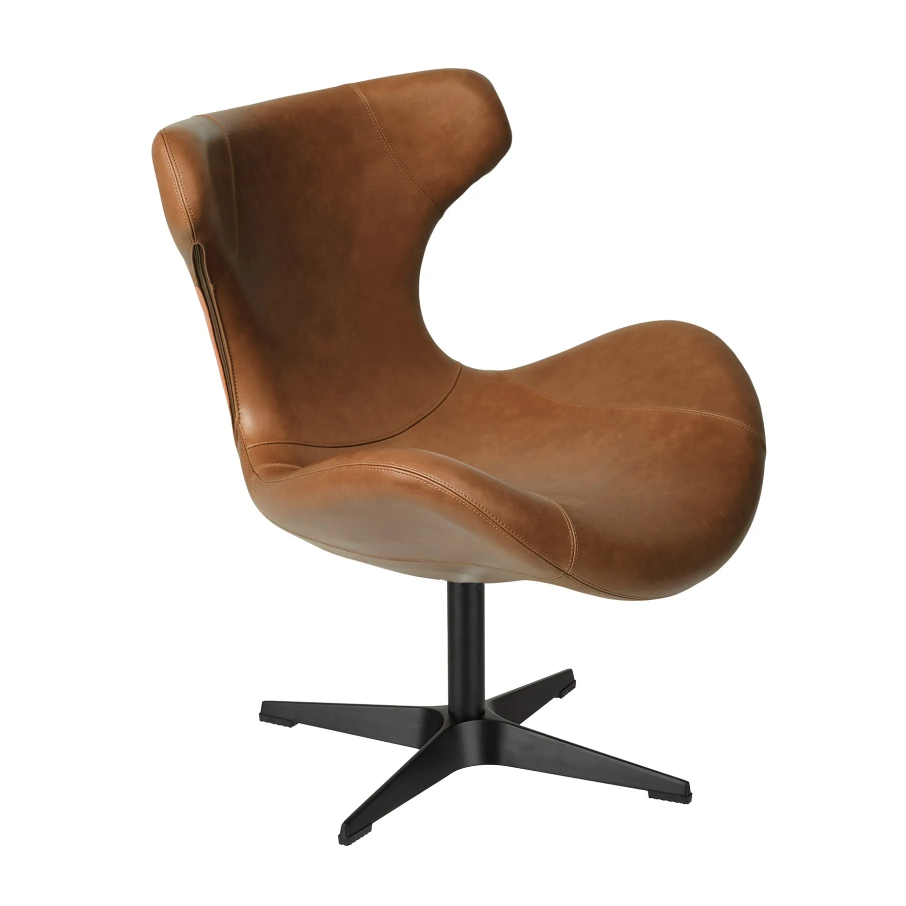 Gør din indretning komplet med Kato loungestol i læder med sort drejesokkel – en perfekt kombination af stil, komfort og funktionalitet. Med sit smukke, buede design og luksuriøse semianilinlæder tilbyder denne stol en udsøgt siddeoplevelse og et eksklusivt vintage-look, der kun bliver smukkere med tiden.