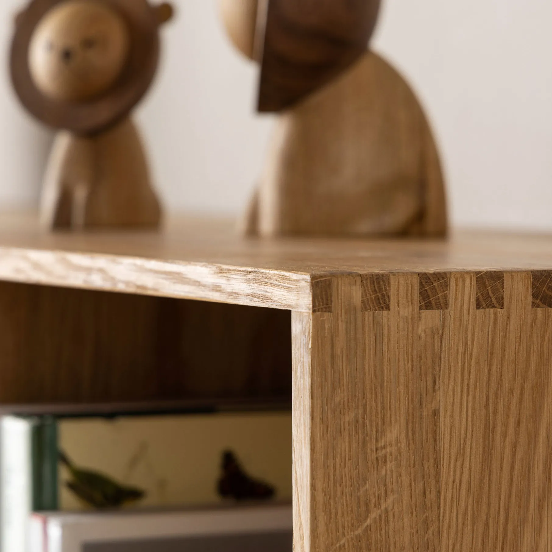 Reolerne er lavet i massivt FSC certificeret olieret egetræ. Samlingerne på reolerne er fingertappede, hvilket understreger de eksklusive snedker dyder.