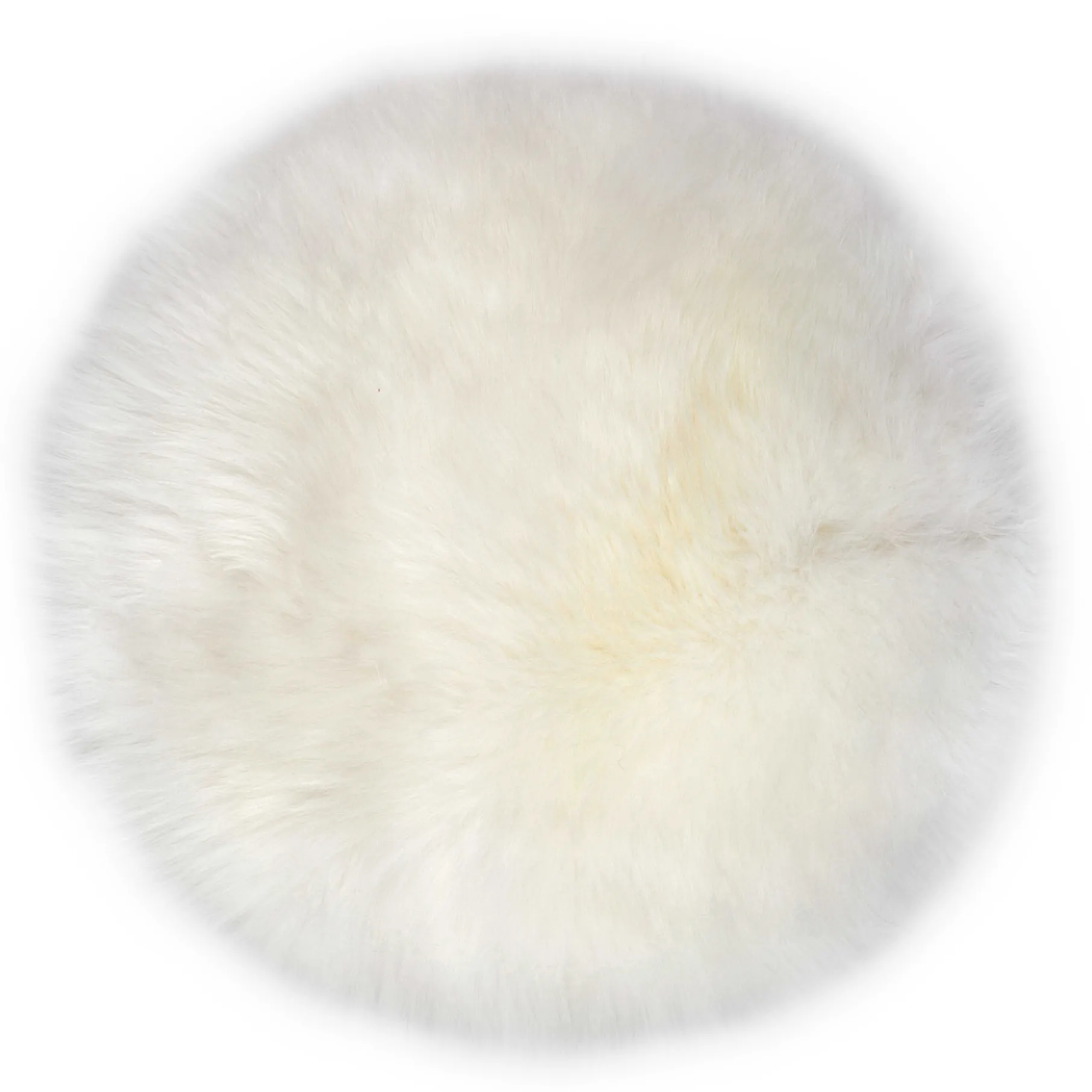 Rund hynde i ægte lammeskind i en lækker blød kvalitet. Hynden kan fx bruges til at lægge på en stol eller en bænk.