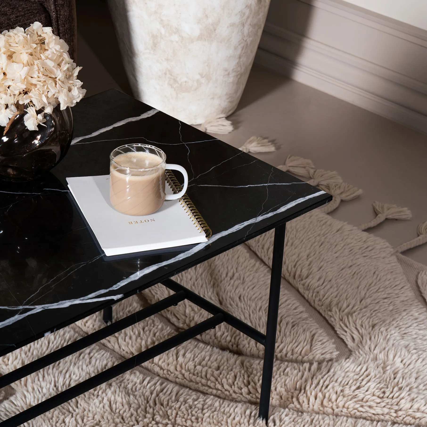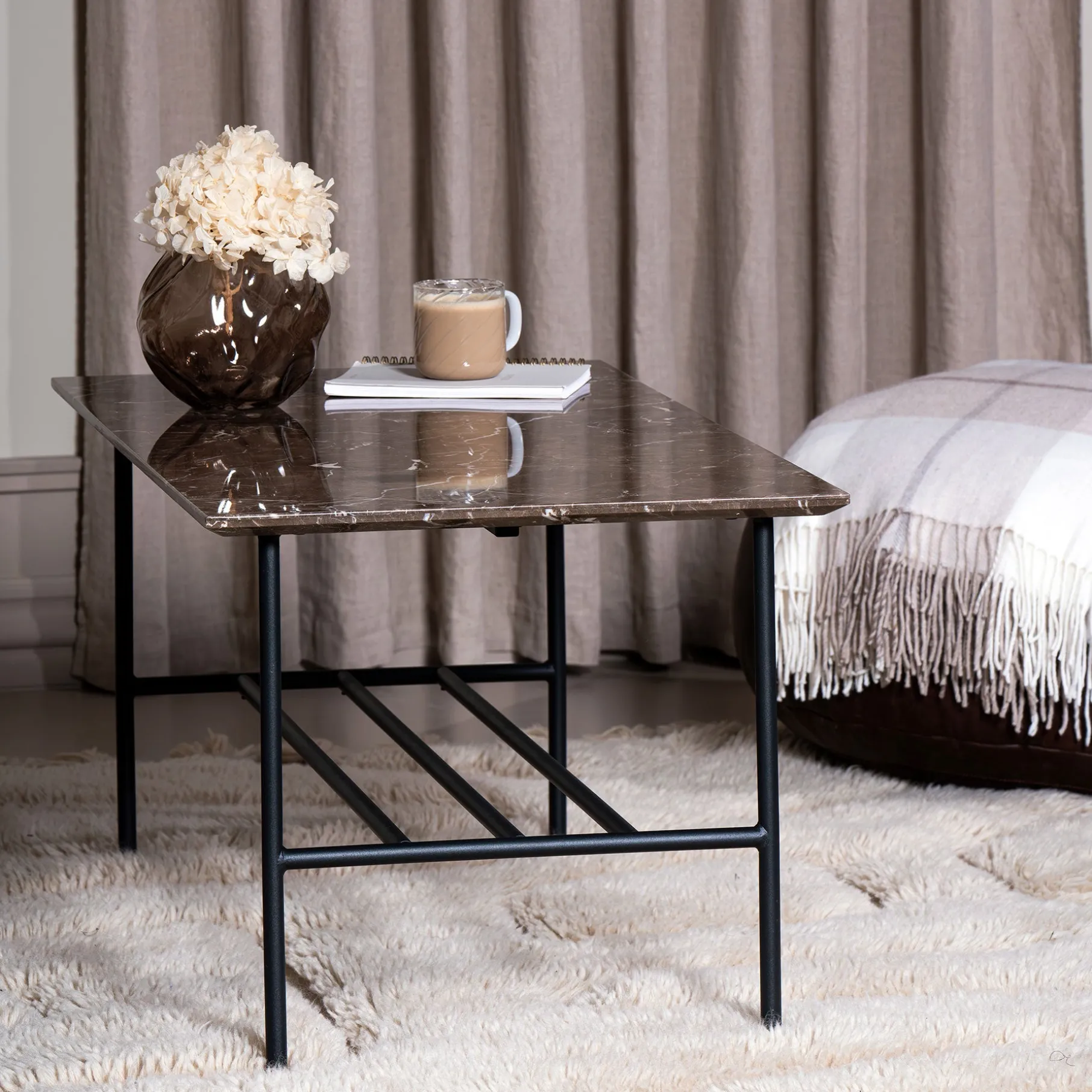 Stilrent sofabord tegnet i minimalistiske rene linjer. Bordpladen er i marmor og har en skrå afskæring på kanten, som giver sofabordet en lethed.