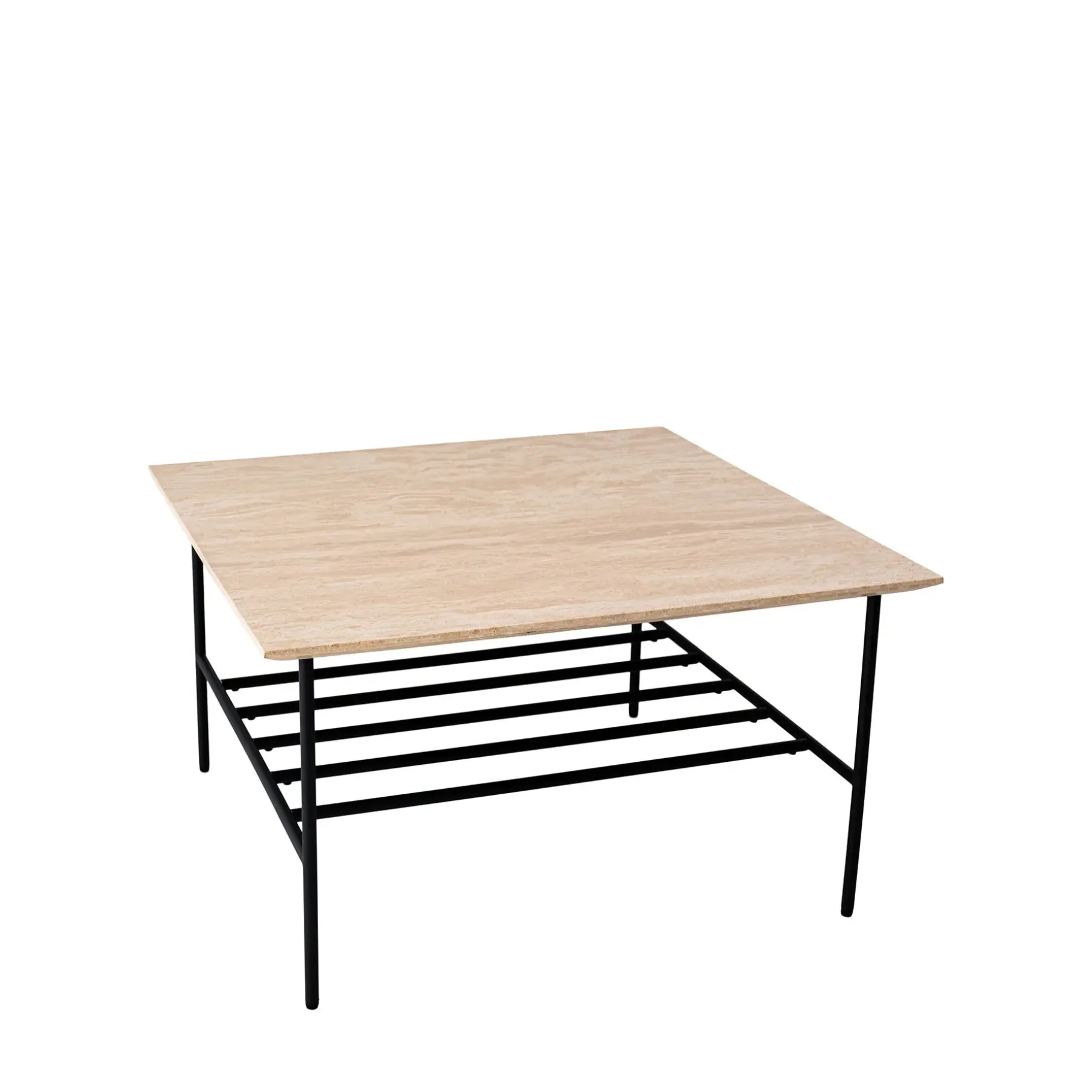 Stilrent sofabord tegnet i minimalistiske rene linjer i travertin. Bordpladen har en skrå afskæring på kanten, som giver sofabordet en lethed.