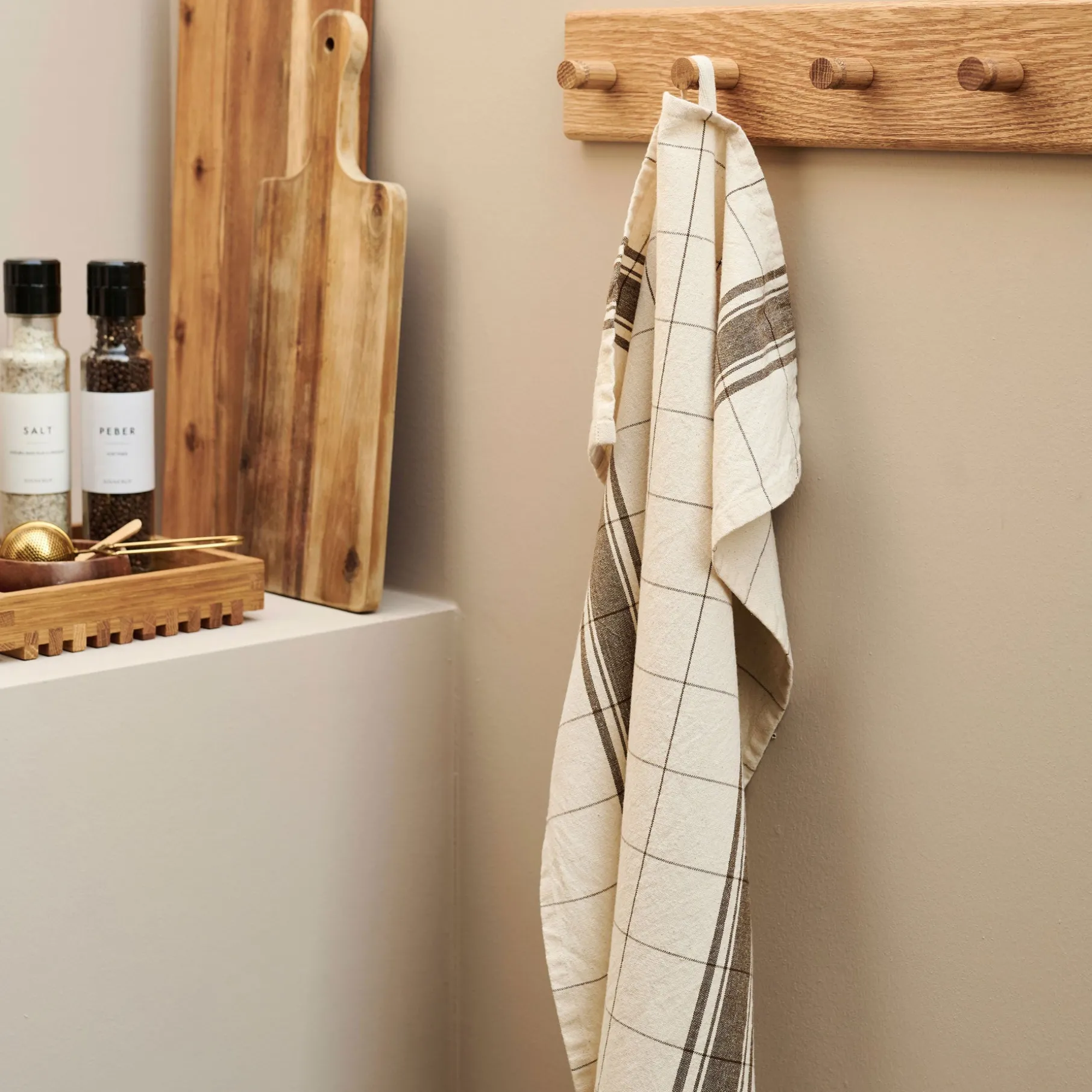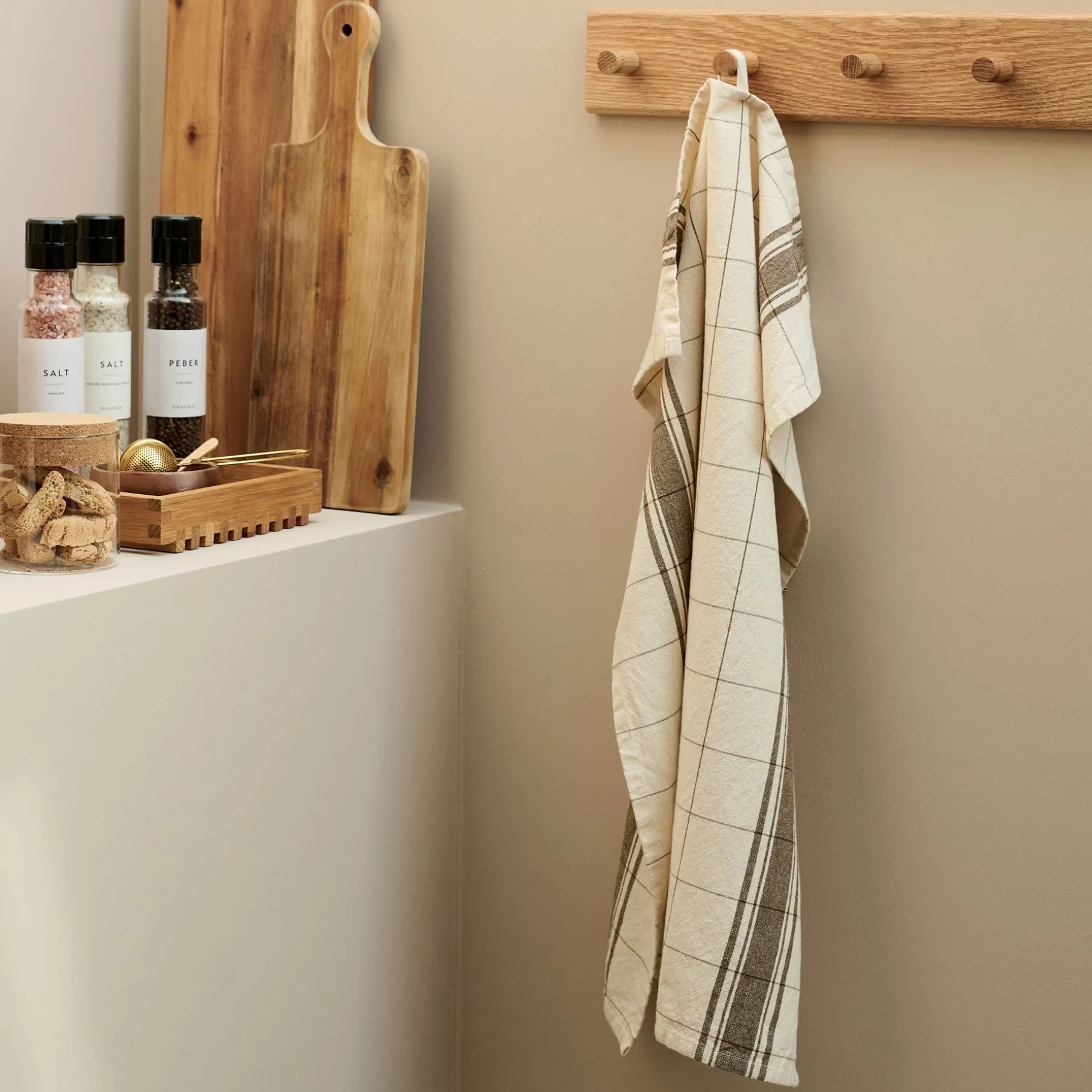 Dette tidløse viskestykke har et klassisk linjeret design, der både er stilfuldt og funktionelt. Vælg mellem to varianter, der passer perfekt til dit køkken: én med brune linjer og én med sorte linjer.