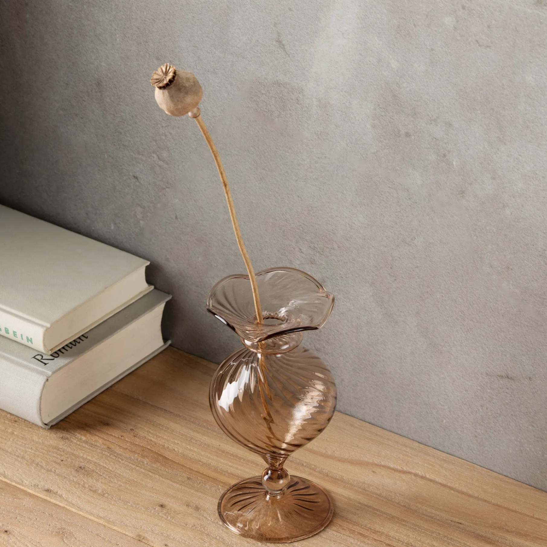 Med sit dekorative design, er vasen både flot med og uden indhold. Den kan fx styles på en hylde, i en vindueskarm eller på en bakke med duftpinde og en lysestage.