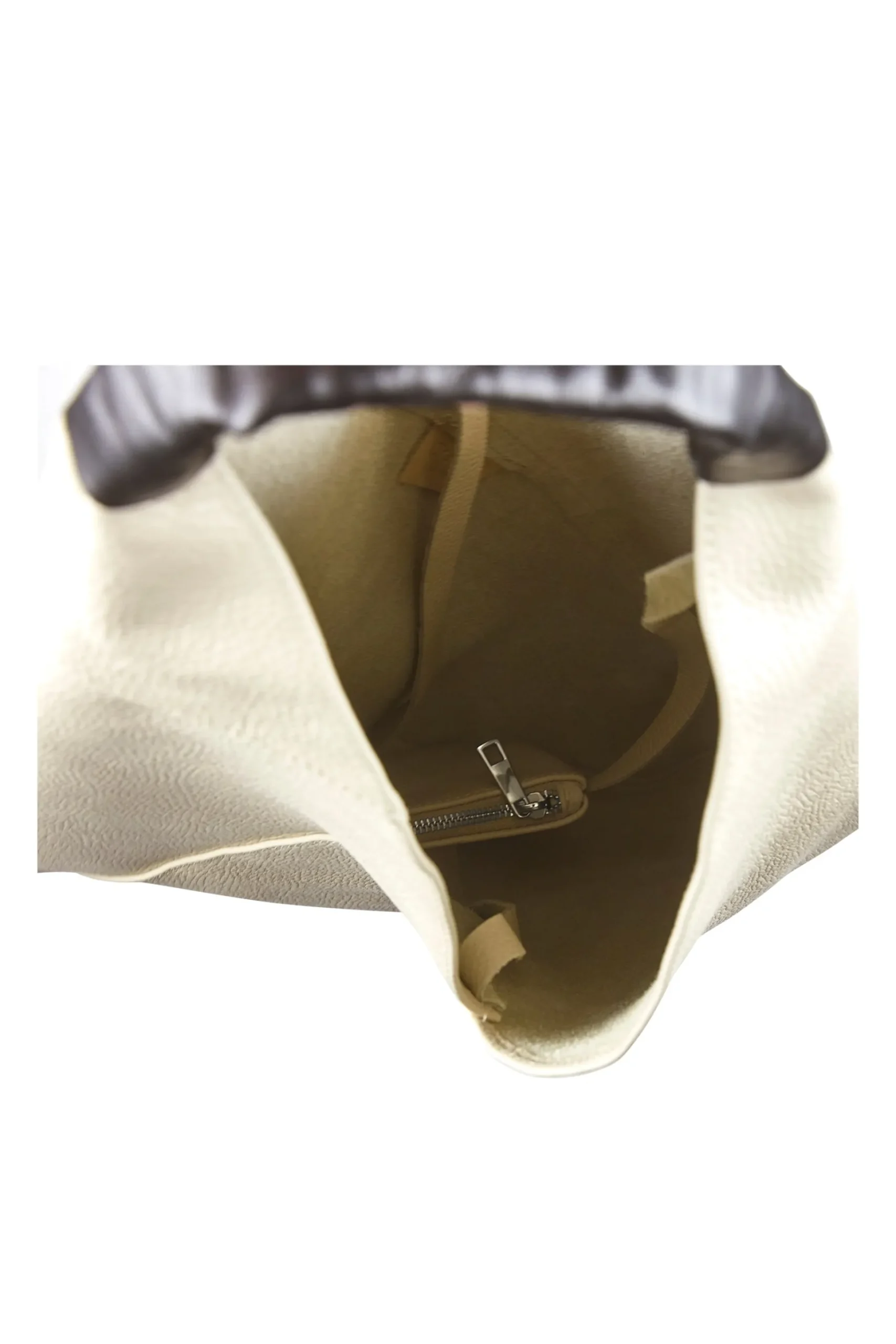 Cool taske i 100% koskind og i en smuk off-white farve. Tasken har en påsyet pung indeni, der sidder fast med en læderstrop, så du har taske og pung i én samtidig med, at du ikke går på kompromis med sikkerheden ved at vælge den åbne taske.