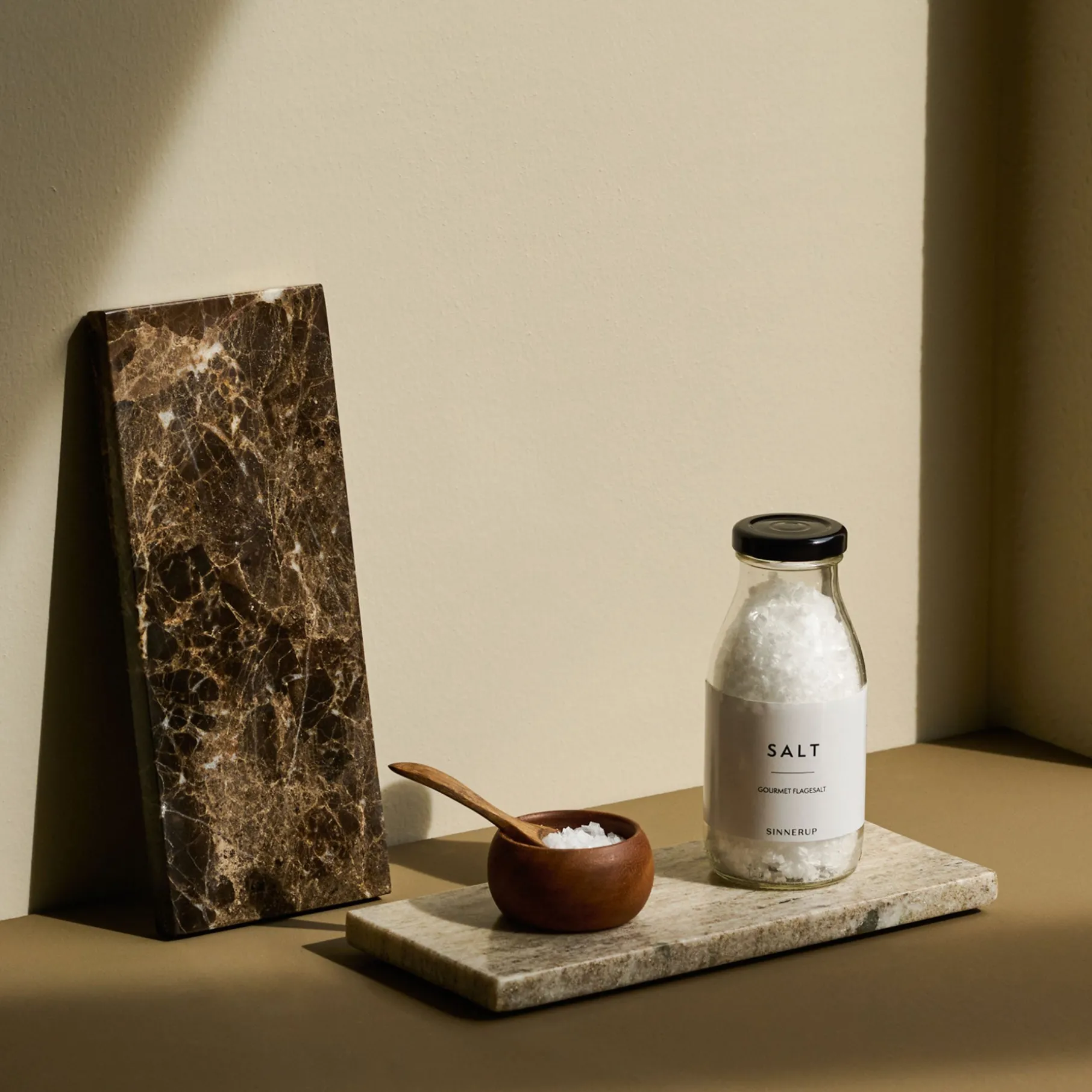 Marmorpladen er et stilfuldt dekorationselement til indretningen, og er her alle muligheder åbne. Den kan bruges til at samle dekorationsgenstande, som f.eks. en lille vase og en lysestage. Den kan også bruges på badeværelset til en urtepotte, sæbe og duftlys, eller i køkkenet til at samle et udvalg af fine krydderier.