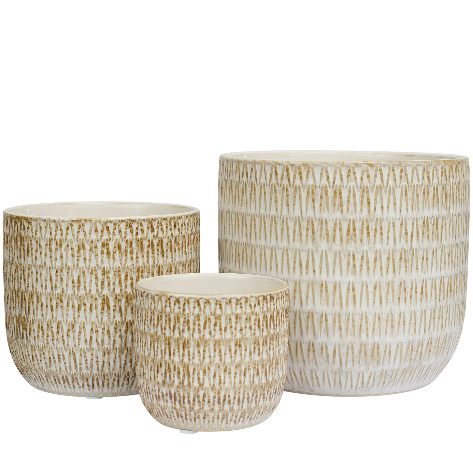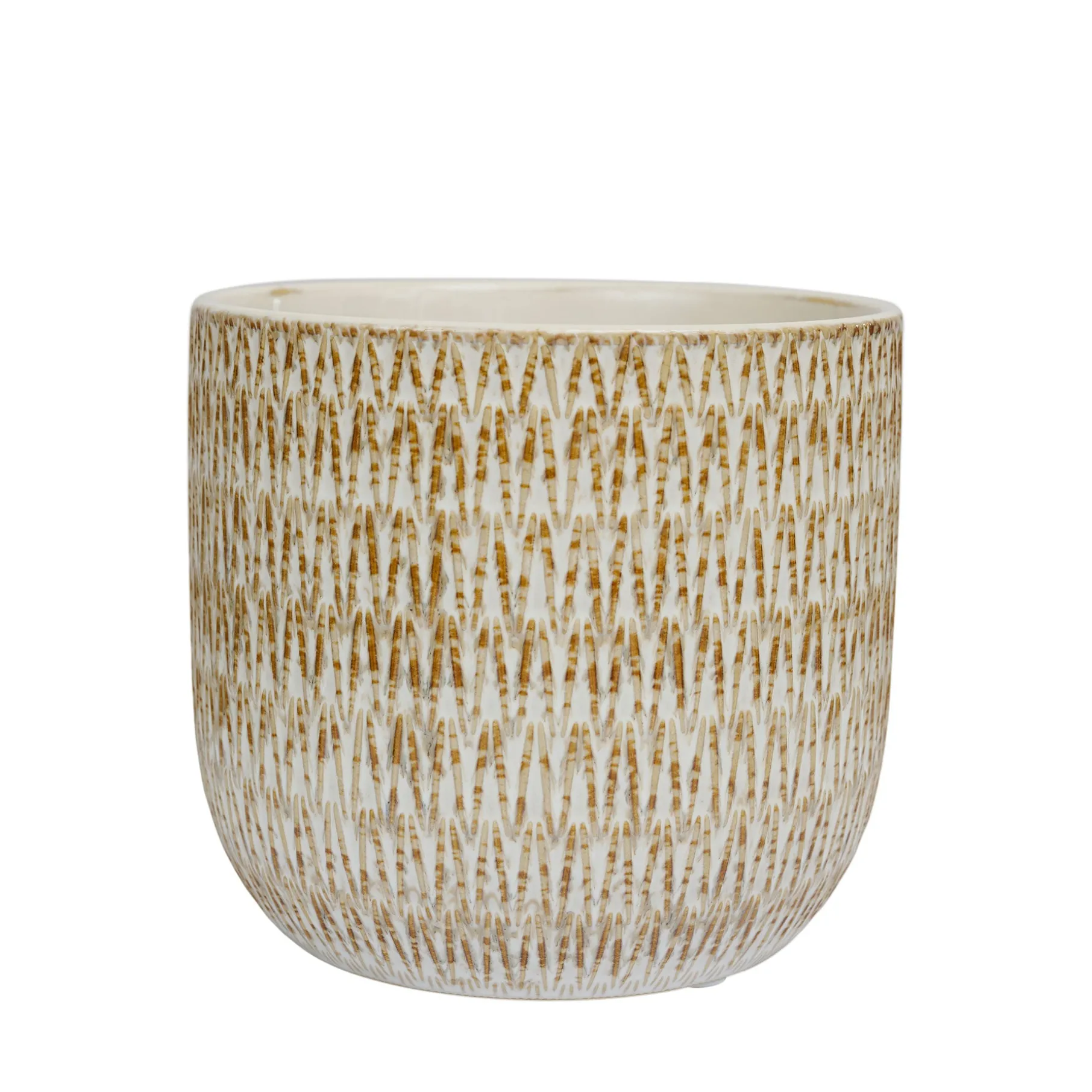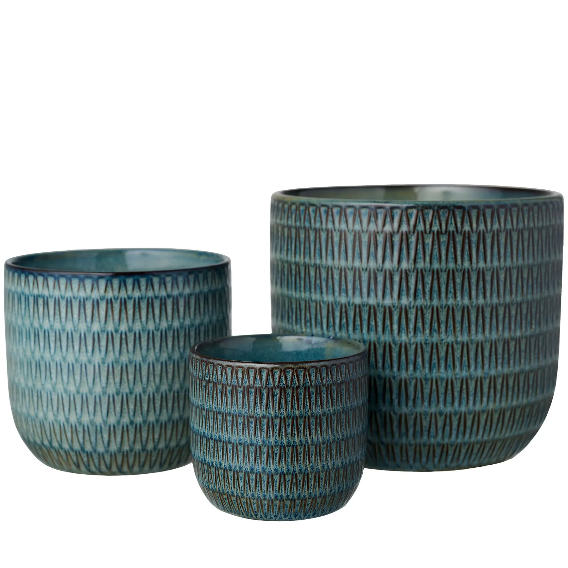 Urtepotte i glaseret stentøj, med en fin grafisk struktur