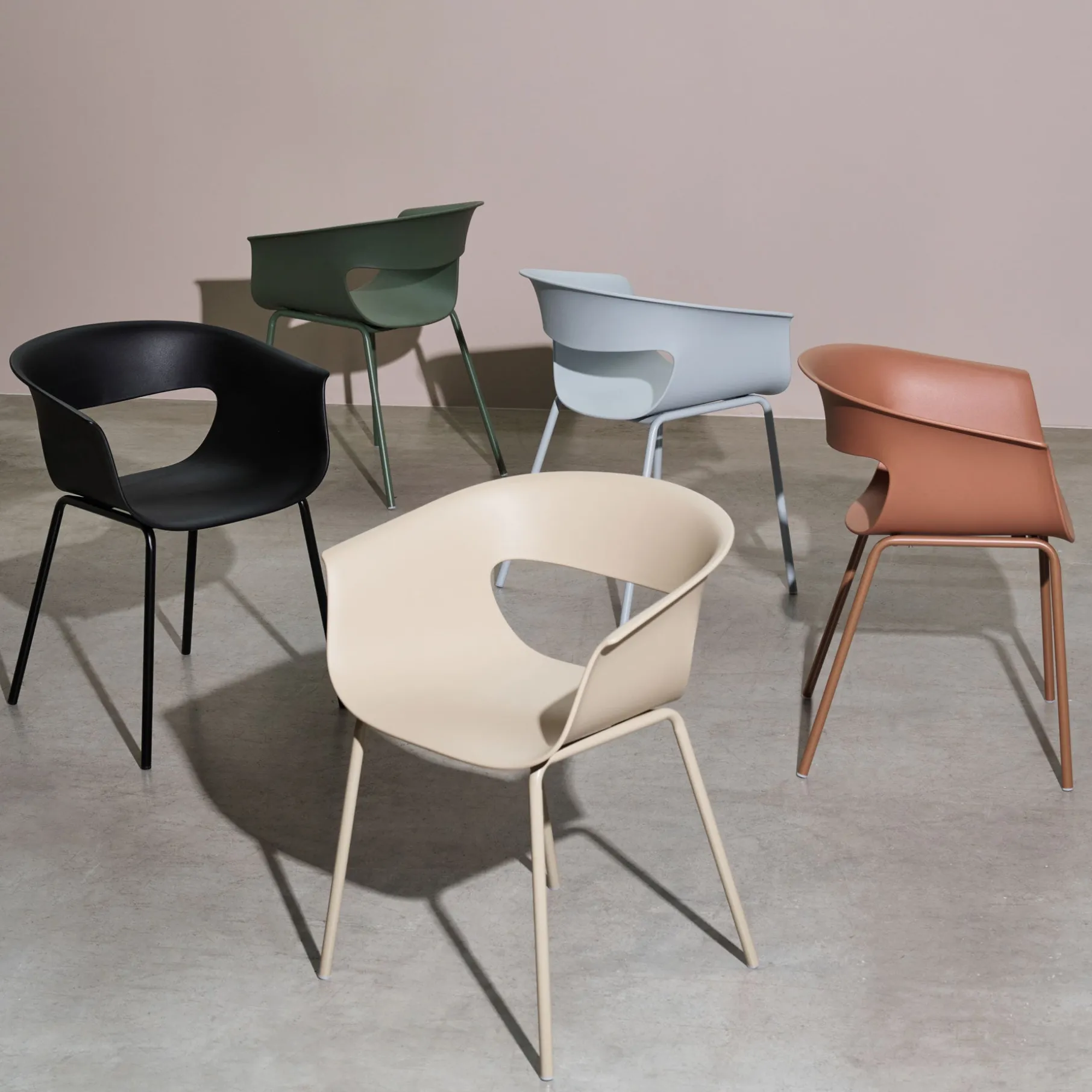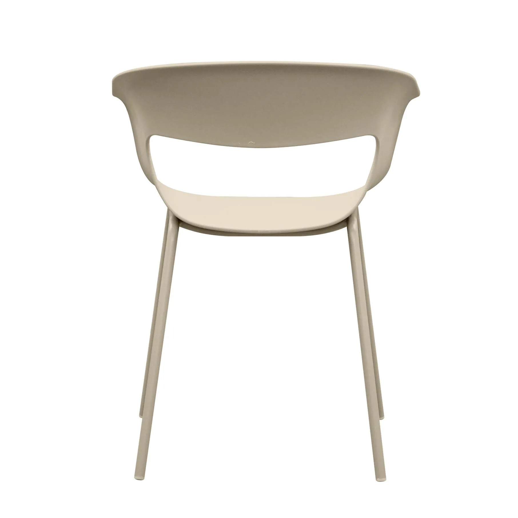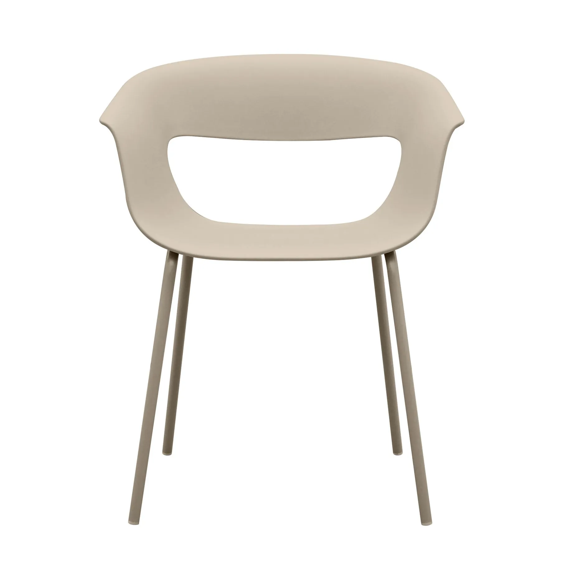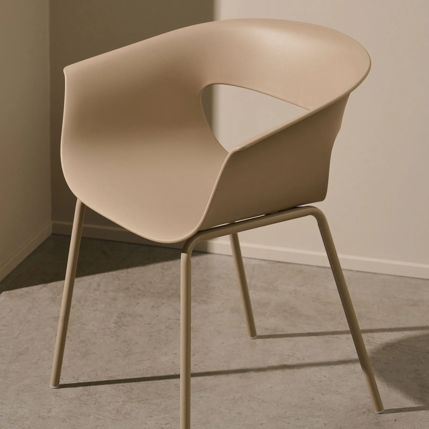 Spisebordsstol med et stilrent og enkelt design. Sædet er lavet i mat plast og benene er lavet i metal. Sæde og ben er lavet i samme tone i tone farve, hvilket giver stol og indretning et roligt udtryk. Messina stolen har en god siddekomfort og armlæn, så man kan hvile armene. Rengøringen kræver ikke andet end en opvredet fnugfri klud