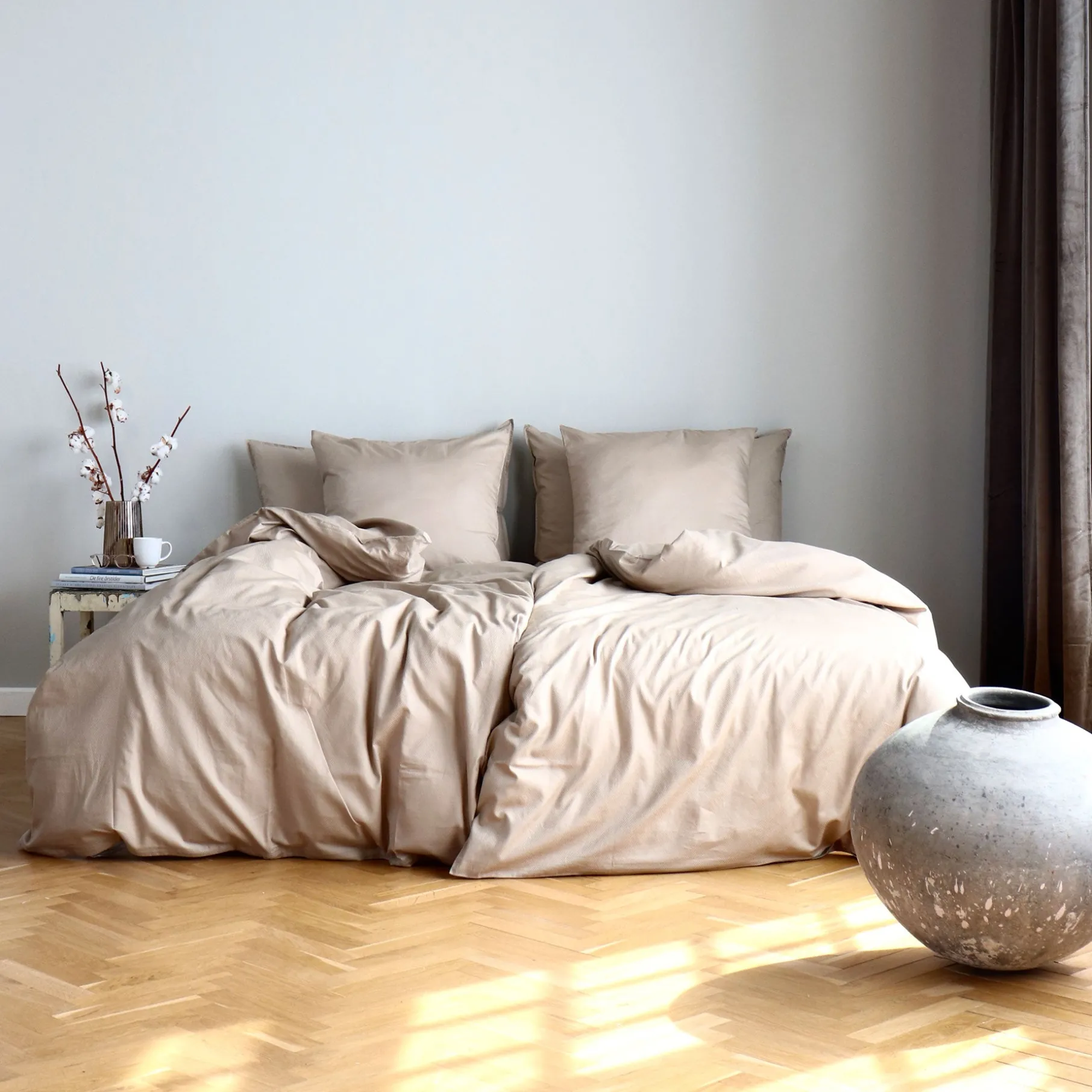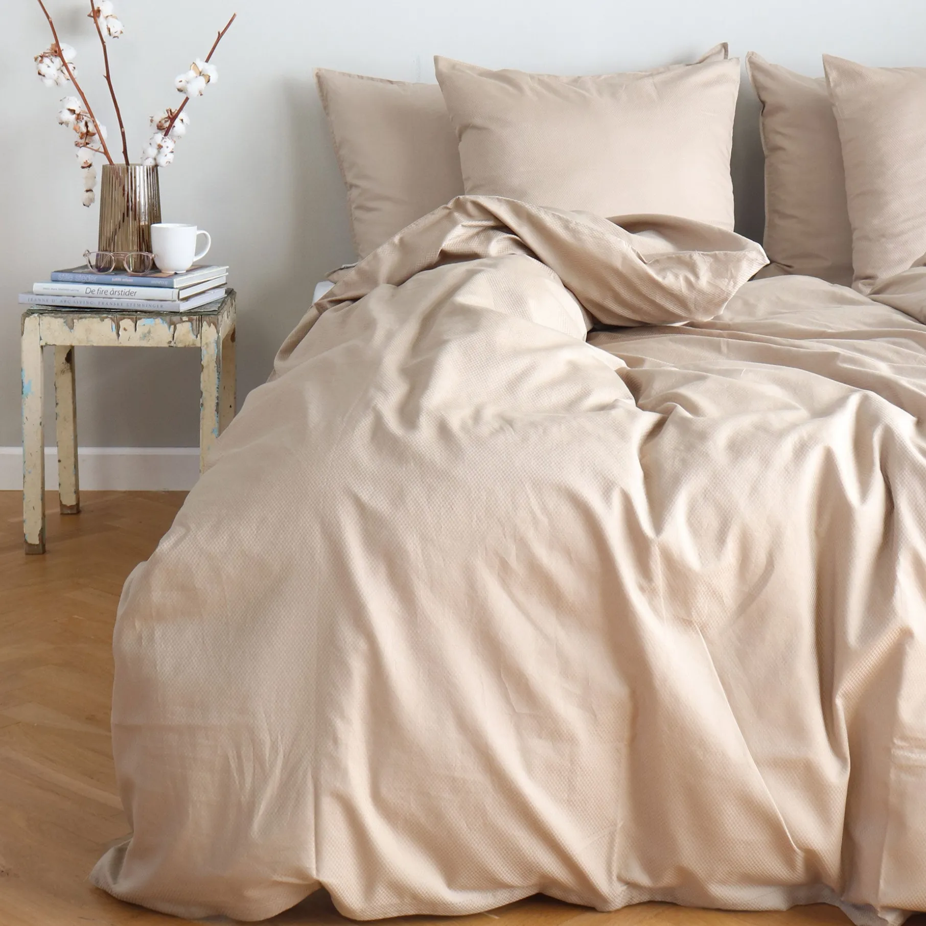 Forny dit soveværelse med Omhu sengetøj i farven “mud” – en smuk brunlig nuance. Dette sengesæt er lavet af 100% økologisk satinvævet bomuld (lynlåse undtaget) med elegante microtern, der tilføjer en subtil og sofistikeret tekstur til din seng.