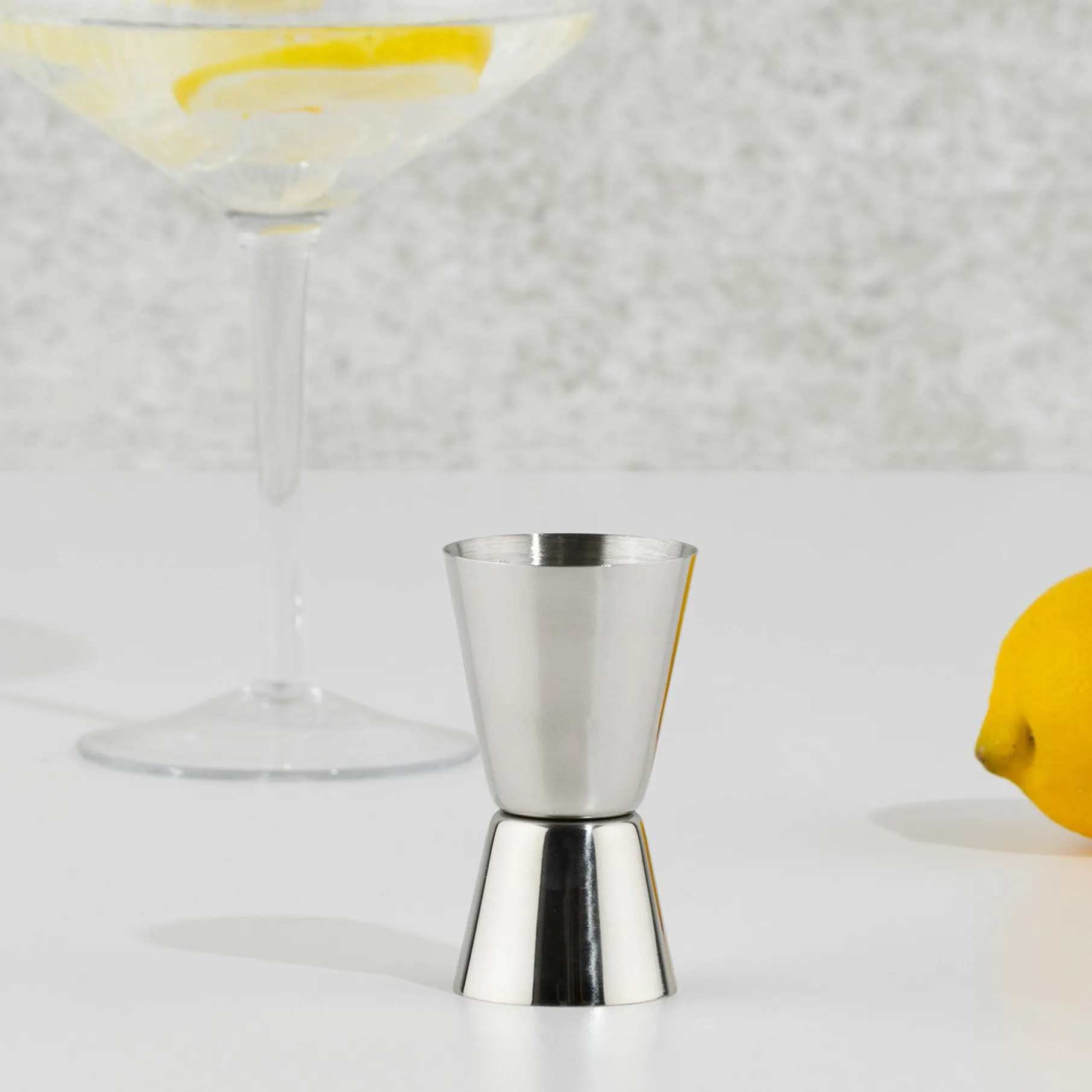 Jigger i rustfrit stål til opmåling af væsker fx til drinks.