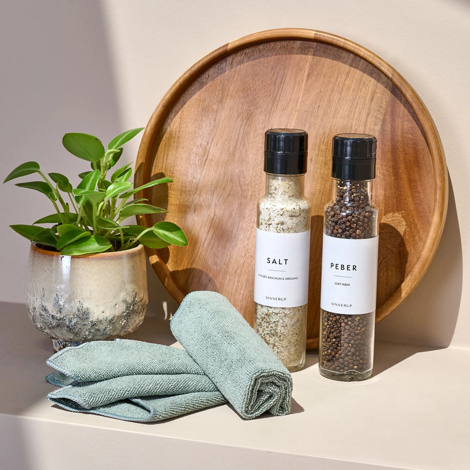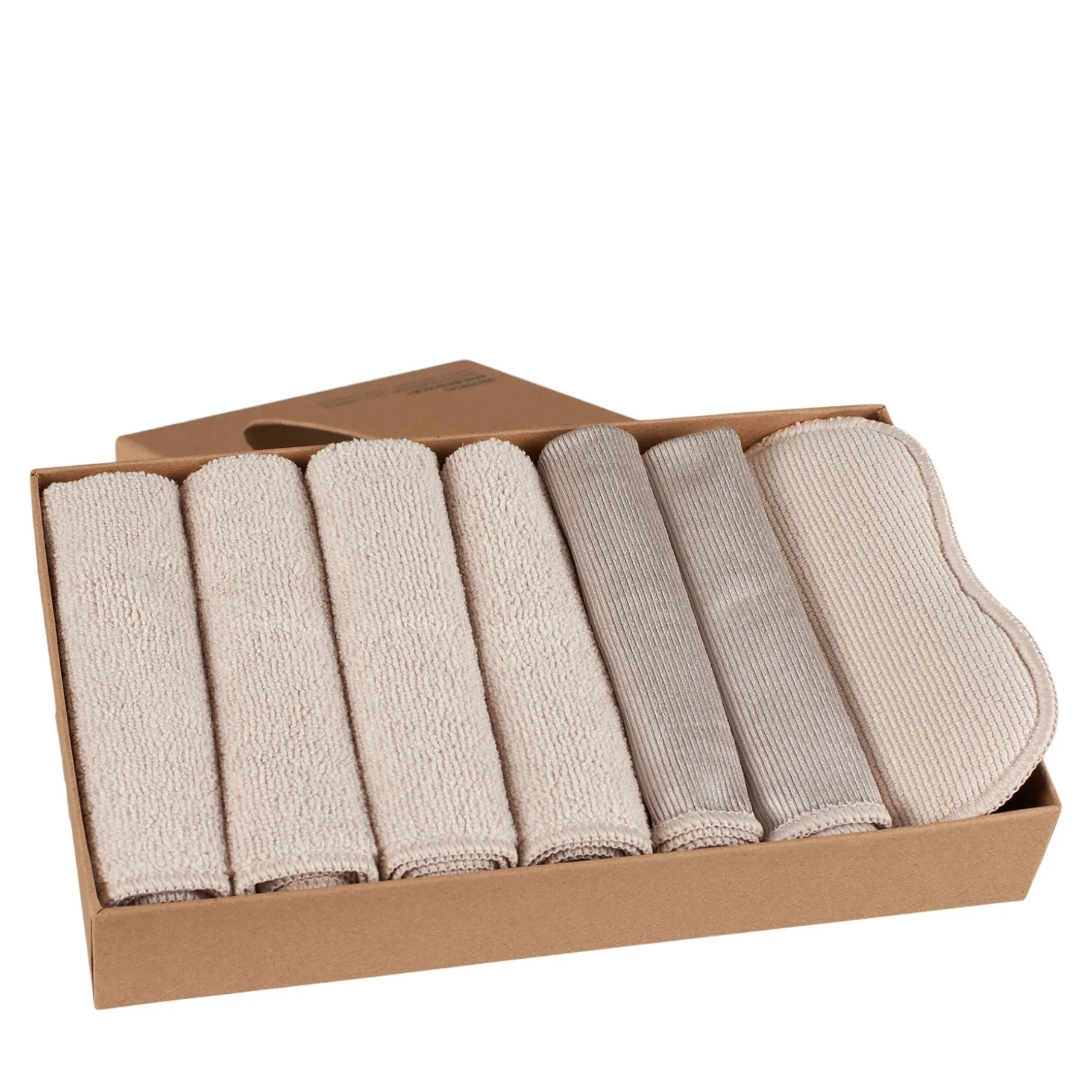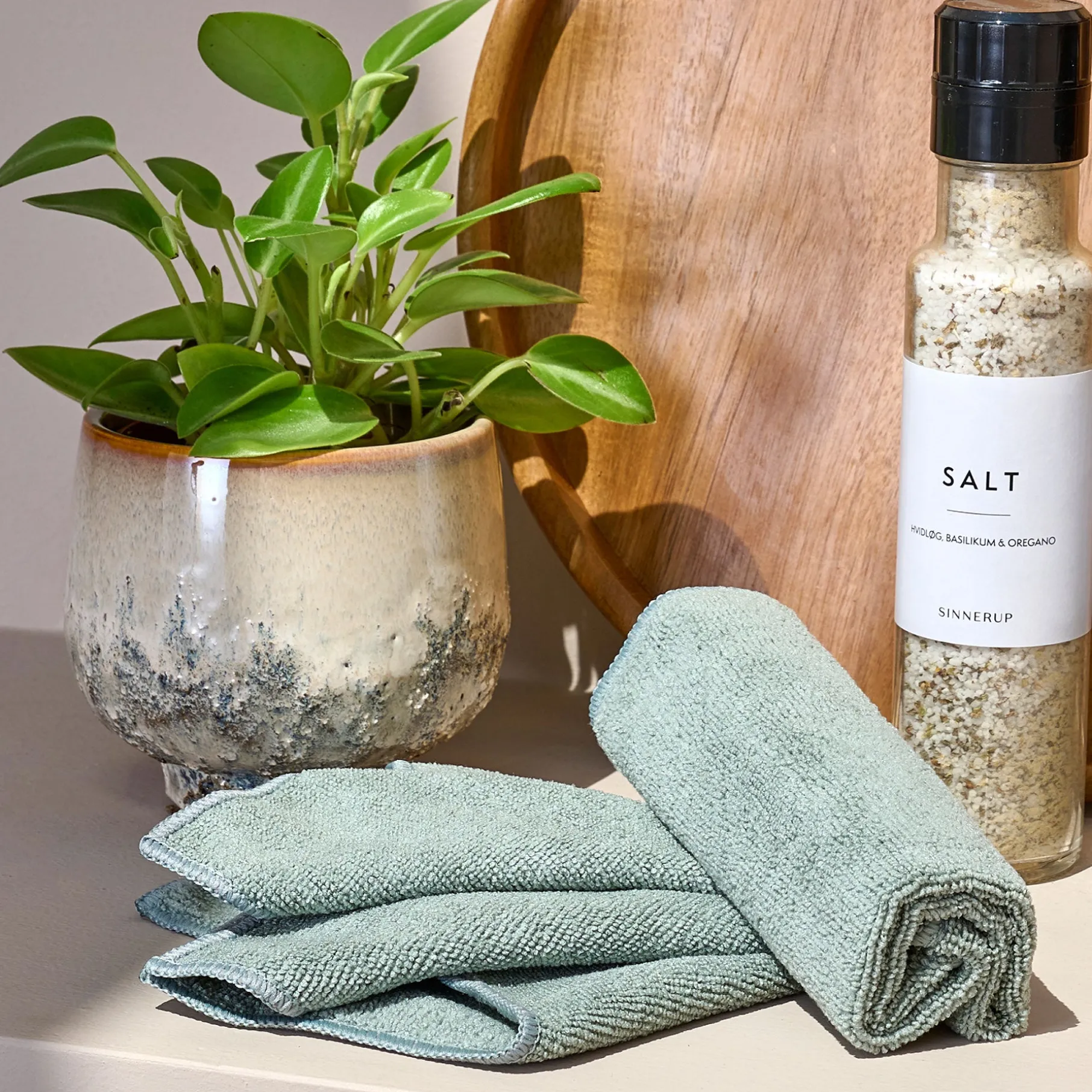 Dette Rengøringssæt indeholder 6 mikrofiberklude og 1 svamp, kludene er i forskellige farver, på den måde kan man let dedikere mikrofiberkludene til henholdsvis køkken og badeværelse for at opretholde en god hygiejne.