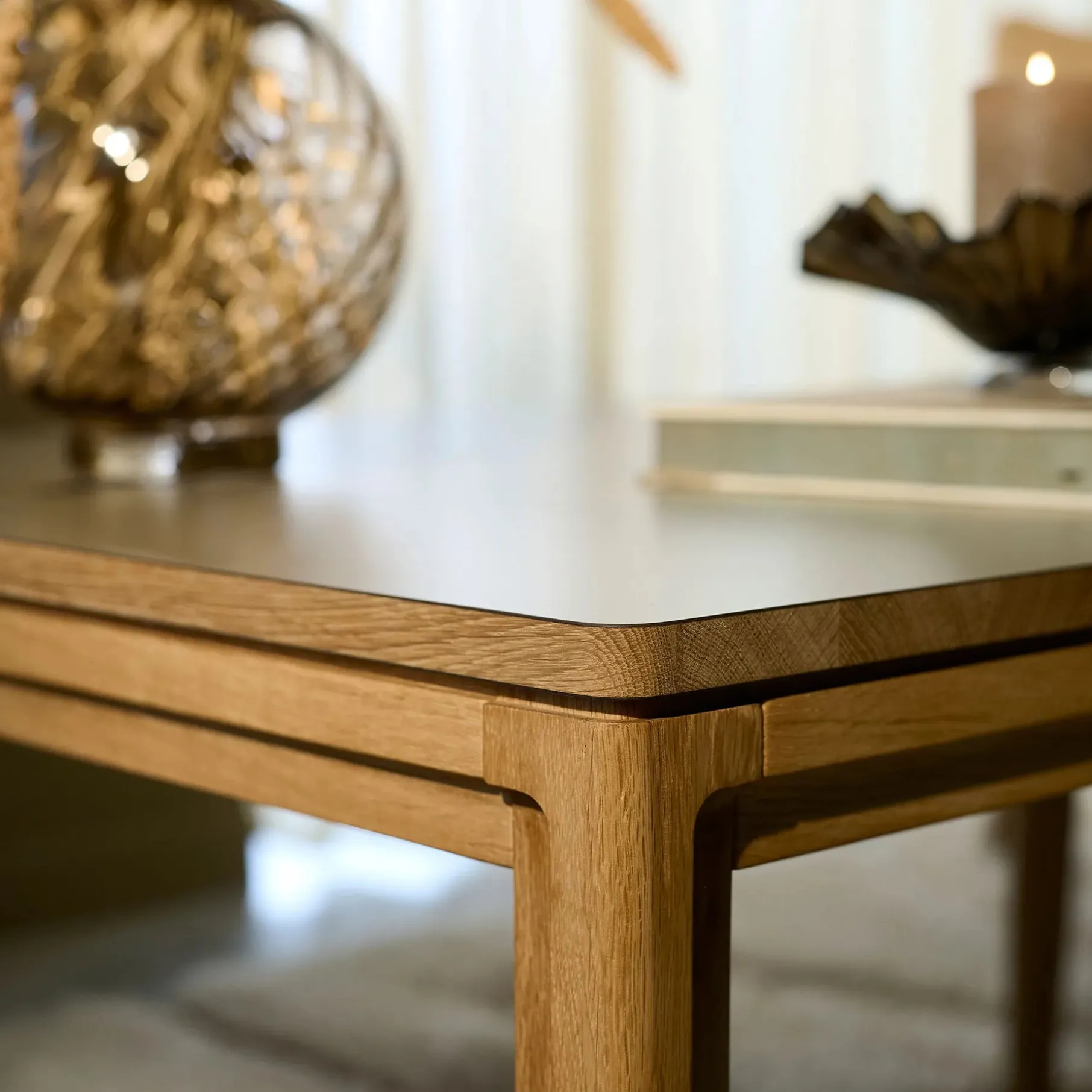 Ben og sarg: Vi anbefaler at ben og sarg vedligeholdes med Guardian ædeltræsolie, som beskytter træet mod udtørring og gør det mere modstandsdygtigt. Bordplade: HPL/højtrykslaminat: Vi anbefaler at overfladen i laminat vedligeholdes med Guardian laminatrens.