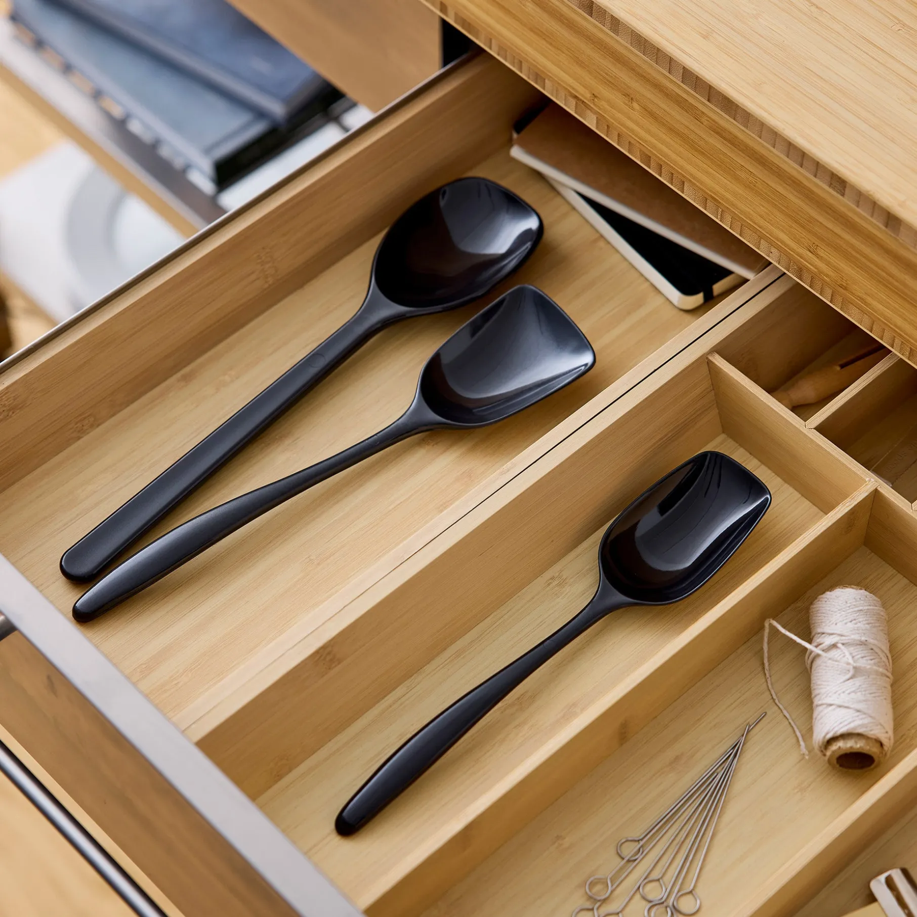 Dette sæt med tre grydeskeer dækker alle dine behov i køkkenet. Sættet indeholder en klassisk grydeske, en bred grydeske og en bageske, som hver især er designet til at gøre madlavning, bagning og servering nemmere. De forskellige størrelser sikrer, at du altid har det rette værktøj, uanset om du skal røre i gryder, servere eller bage.