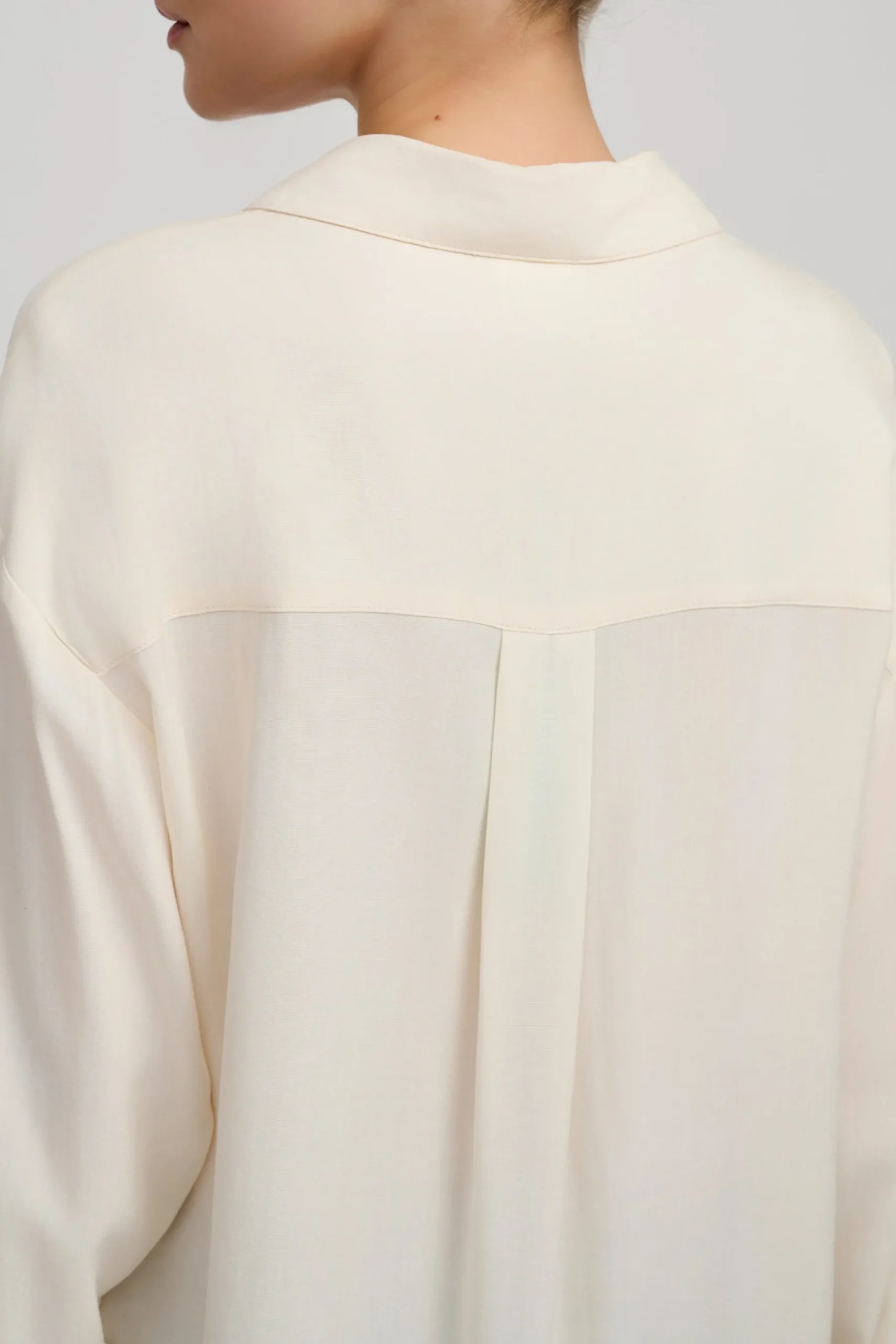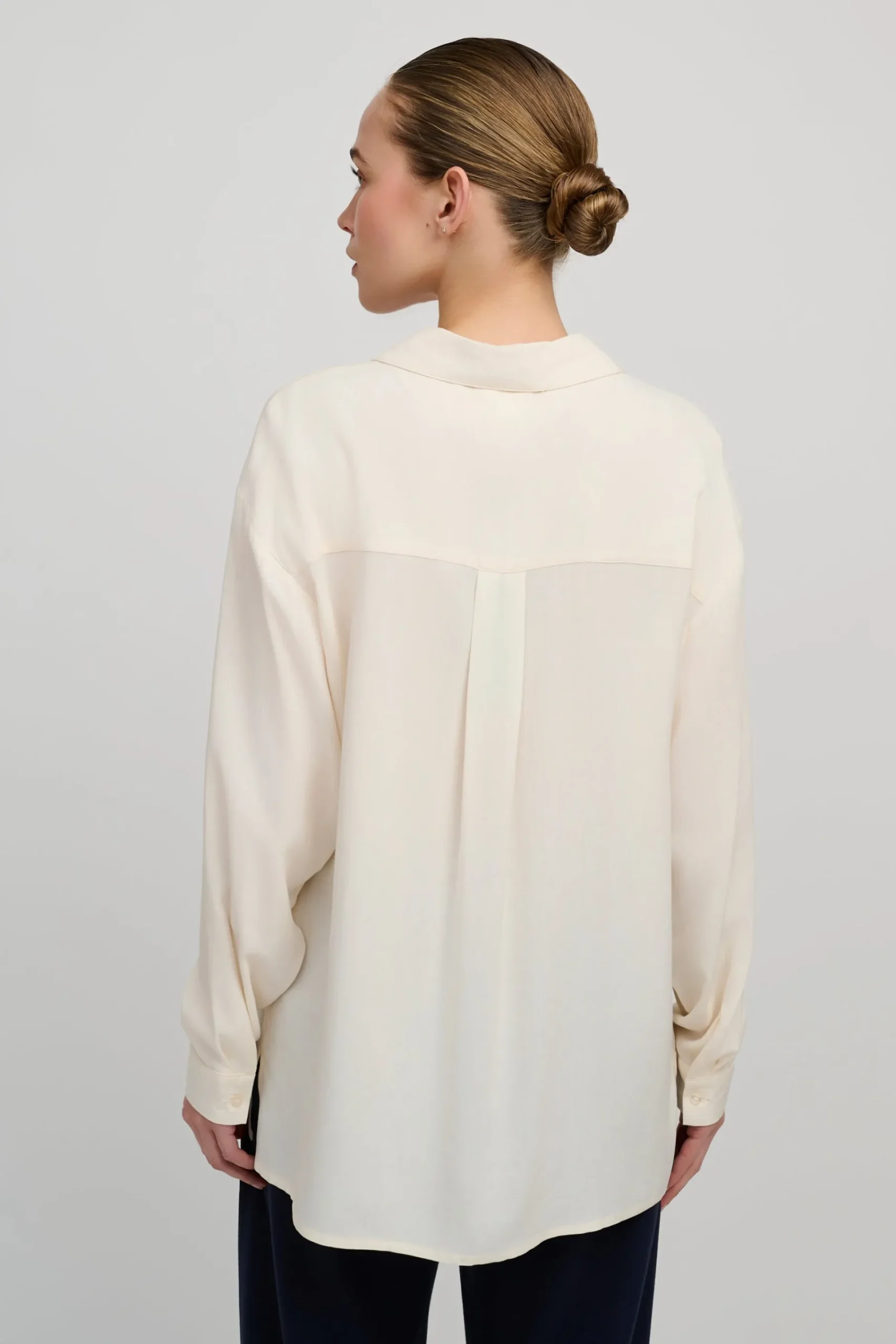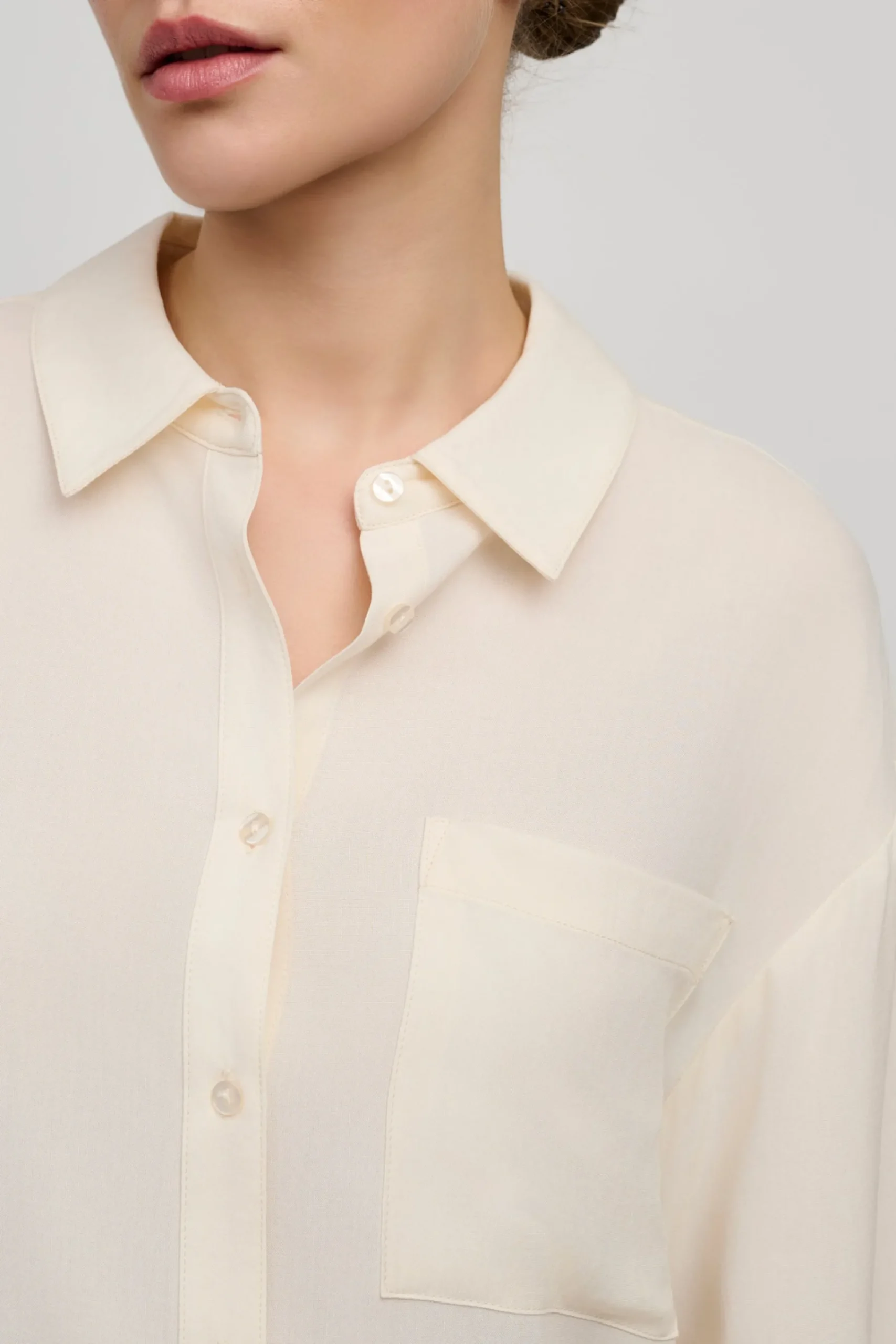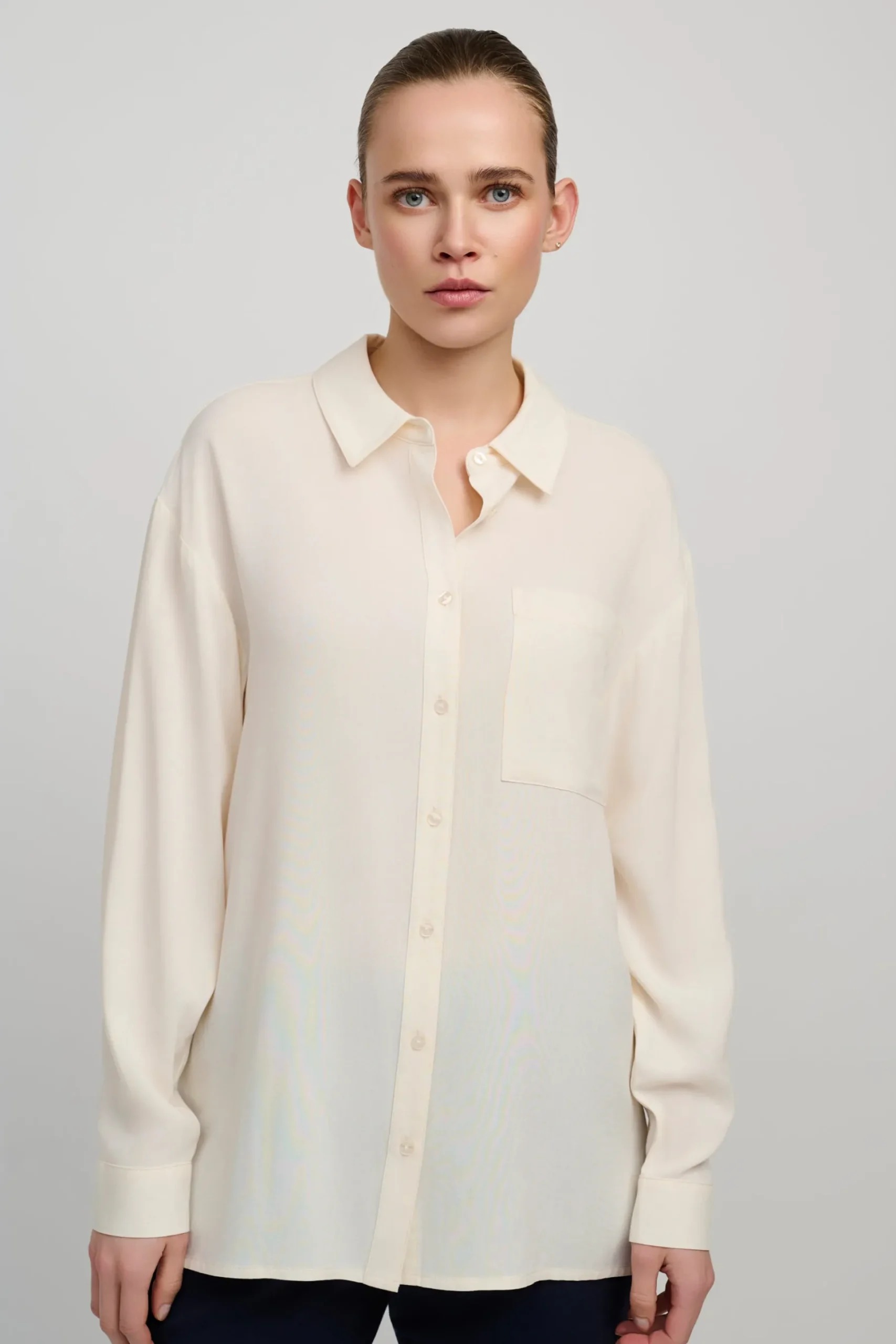 En langærmet skjorte i 100% Lenzing Ecovero viskose. Den har en klassisk krave, knapstolpe, en brystlomme og bærestykke og læg bagpå.