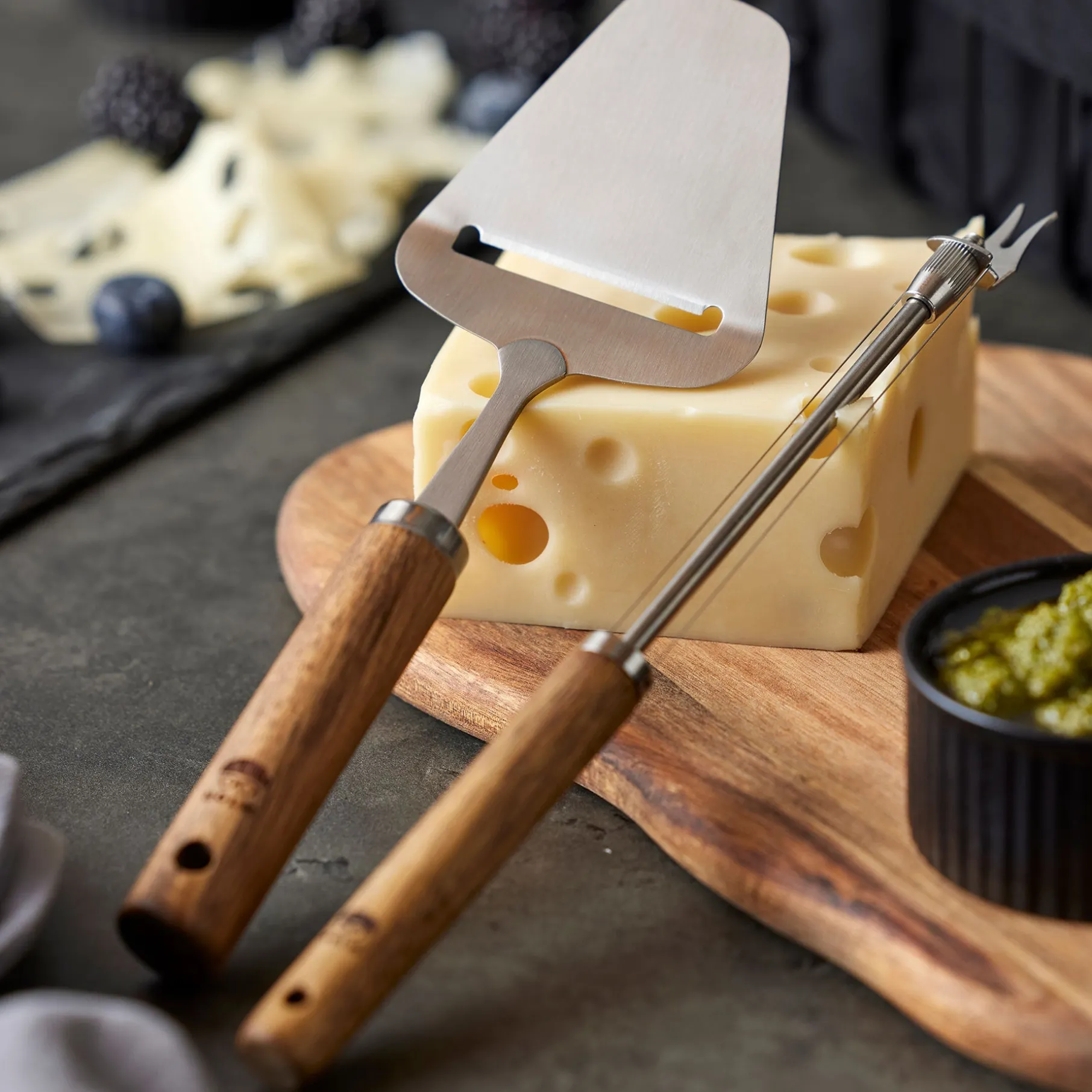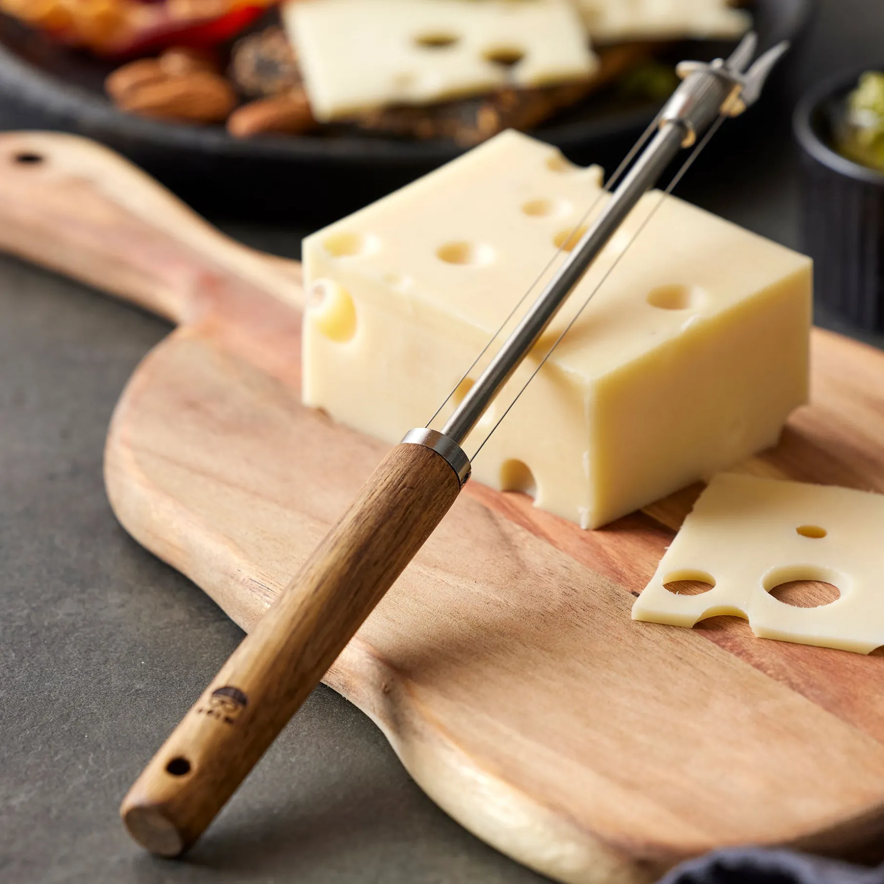 Elegant og praktisk osteskærer, der gør det nemt at skære ost i to forskellige tykkelser. Med dens håndtag af akacietræ er den også en stilfuld tilføjelse til ethvert ostebord. Den dobbeltspidsede spids gør det let at flytte skiven, så du undgår at røre ved selve osten.