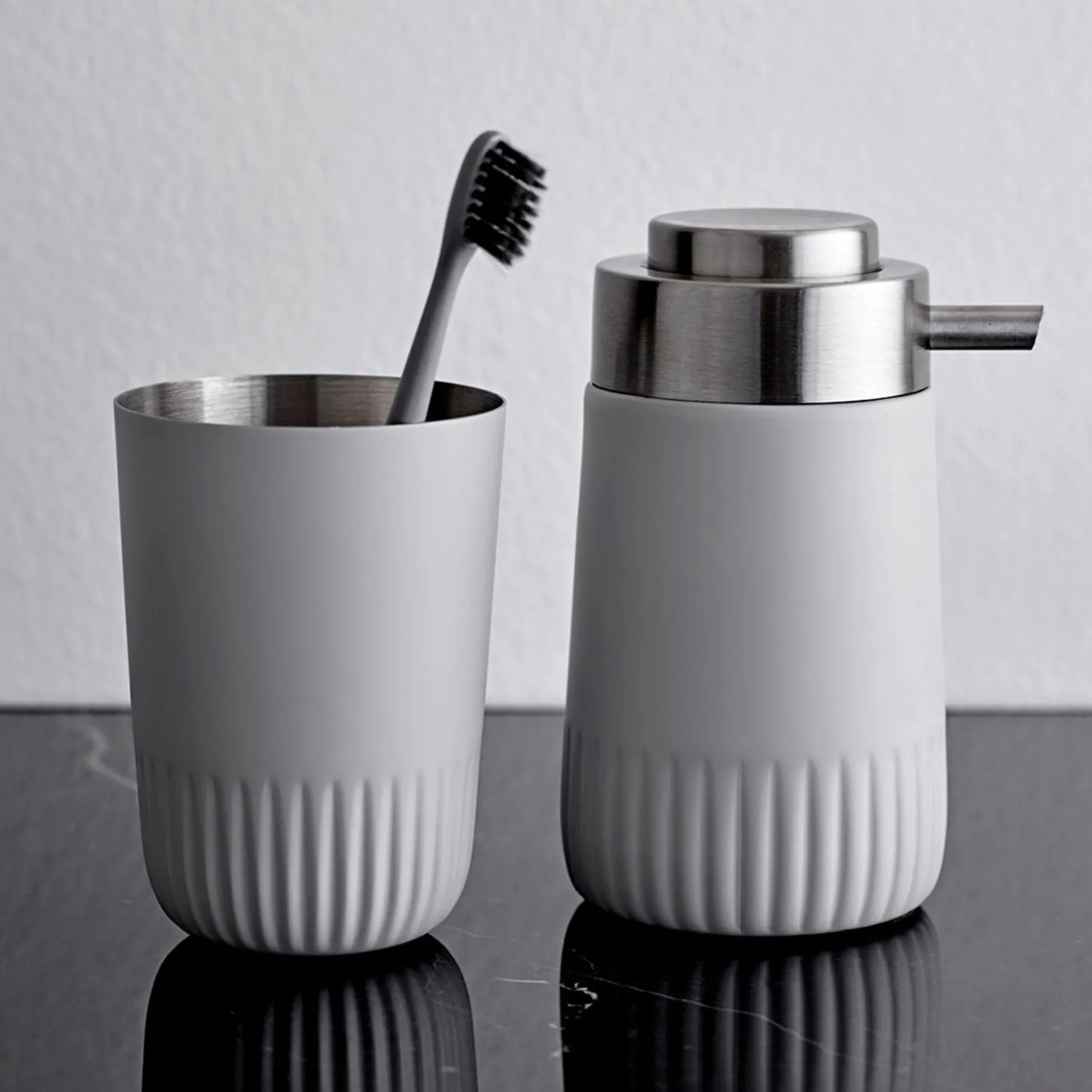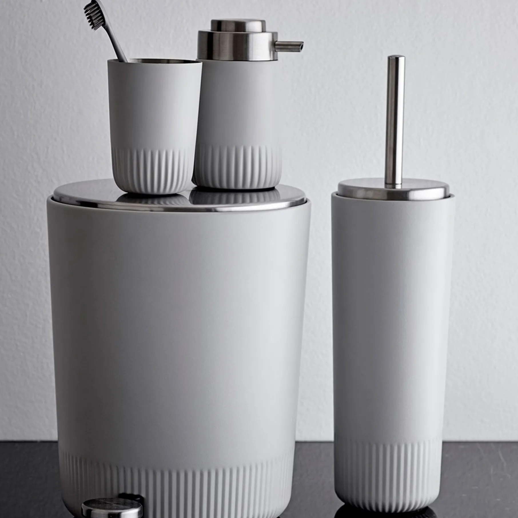 Enkel tandbørsteholder der passer sammen med toiletspand, sæbedispenser og toiletbørste fra Plissé serien. Serien gør det muligt at holde badeværelset i et minimalistisk og ensartet udtryk.