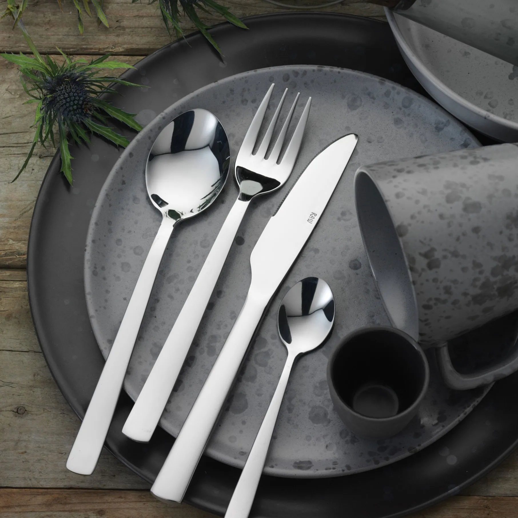 Det stilrene bestik fra RAW er fremstillet af rustfrit stål. Bestikket har et råt og enkelt udtryk, der er som skabt til den nordiske borddækning, i samarbejde med Christiane Schaumburg-Müller.