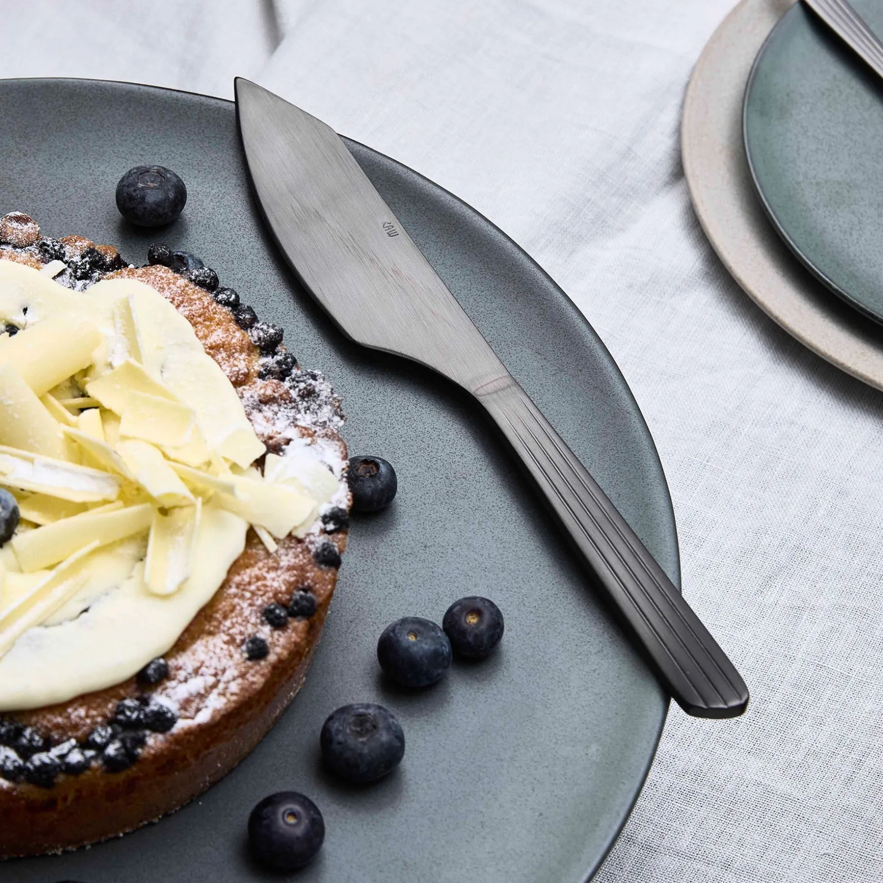 RAW lagkagekniven er designet til at passe smukt ind i RAW universet og komplementerer de øvrige bestikdele som RAW kagespade og kagegafler. Dens enkle og nordiske æstetik gør den ideel til en stilfuld borddækning, især sammen med det karakteristiske RAW stentøj.